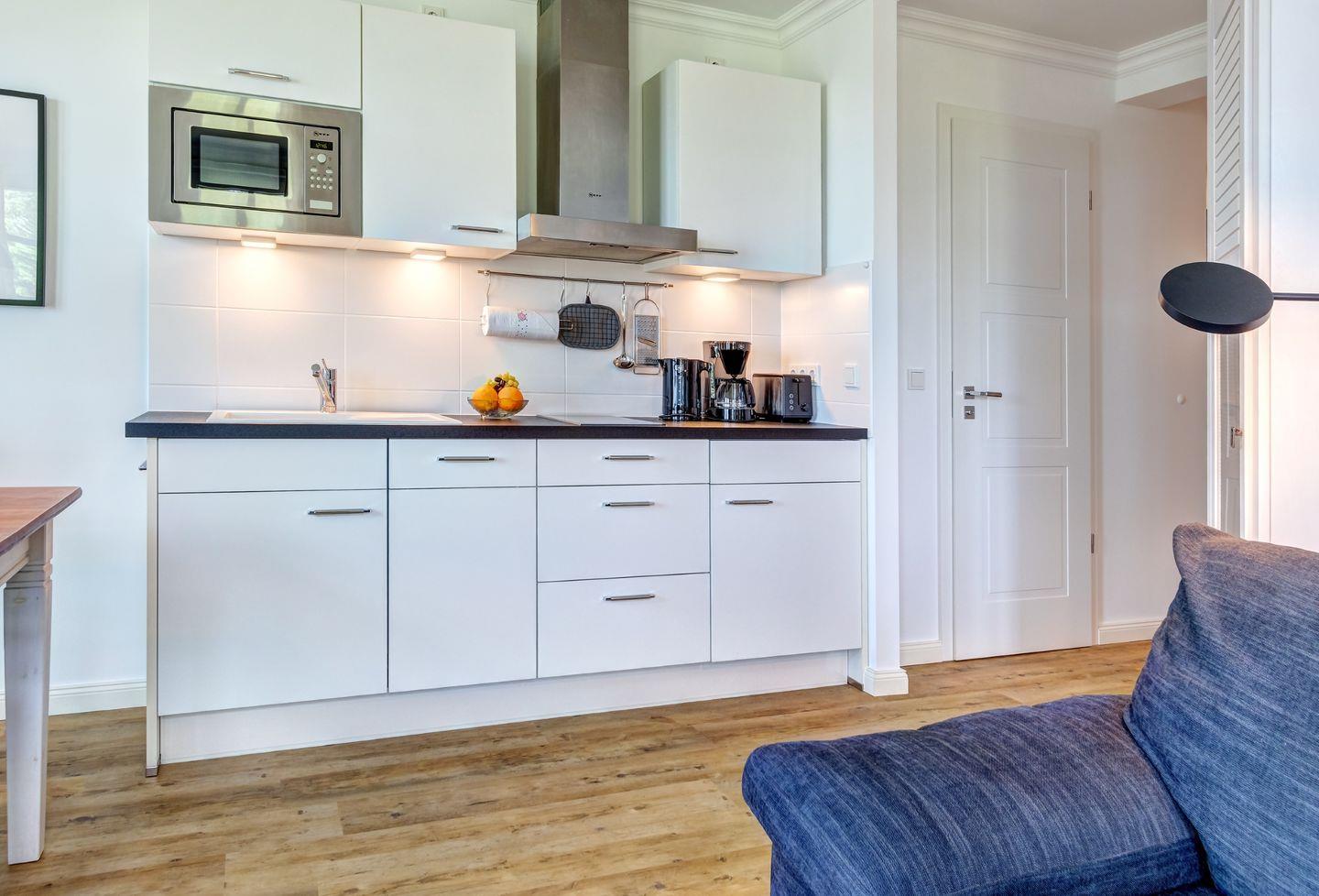 Zurück in Ihrer Residenz erwartet Sie ein Wohnzimmer, dessen malerische Kulisse durch große Fenster eine Verbindung zur umgebenden Natur schafft. Die integrierte Küche ist voll ausgestattet und lädt dazu ein, gemeinsam kulinarische Meisterwerke zu kreieren. Nach einem erlebnisreichen Tag bietet das gemütliche Schlafzimmer den Komfort für eine erholsame Nacht.