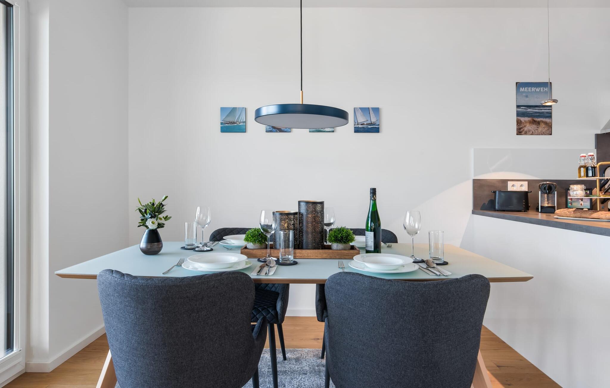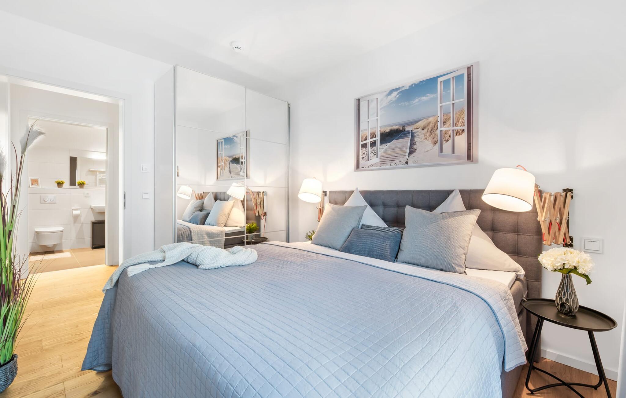 Beliggende direkte ved Østersøen og den populære og naturlige sandstrand Weidefelder, er BALTIC SUNRISE en højkvalitets, moderne ferielejlighed på Kaptajnens halvø til 4 personer.