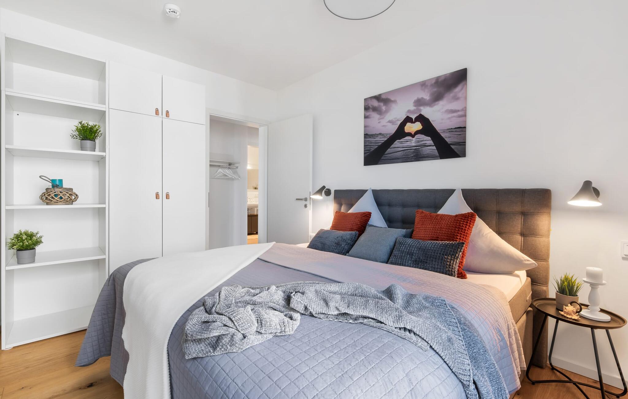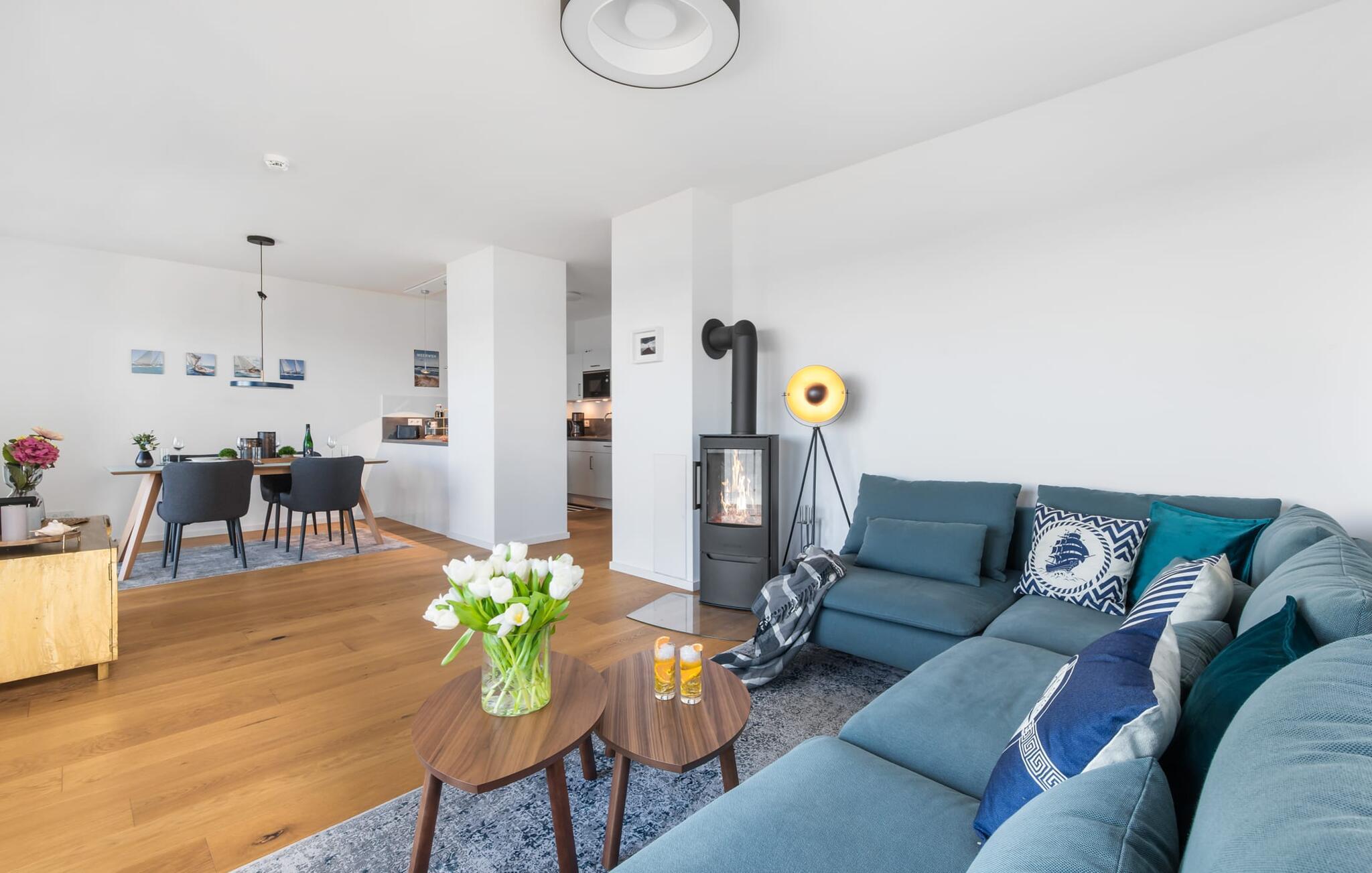 Som navnet antyder, tilbyder BALTIC SUNRISE gæsterne de smukkeste solopgange, man kan forestille sig hver morgen. Alt efter vejret kan du beundre disse fra altanen eller gennem gulv-til-loft vinduerne i den åbne, kombinerede stue/alrum. Det lyse værelse er smagfuldt og af høj kvalitet indrettet, og den komfortable sofa inviterer dig til at slappe af og se tv. Pejsen skaber en hyggelig feel-good stemning på nordiske dårligt vejr dage.
