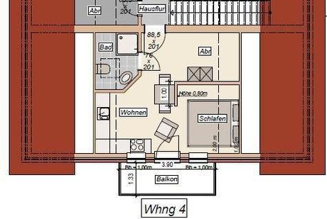 1-2 Pers. # 24 qm # Schlaf-/ Wohnraum # WLANüberall & Smart-Tech # Küche # Duschbad/WC # Balkon # Fußbodenheizung