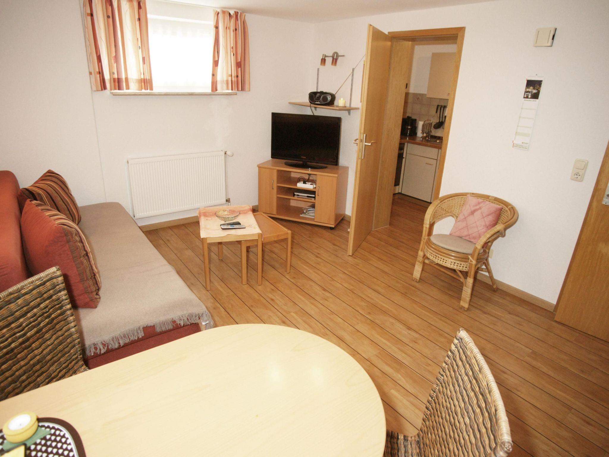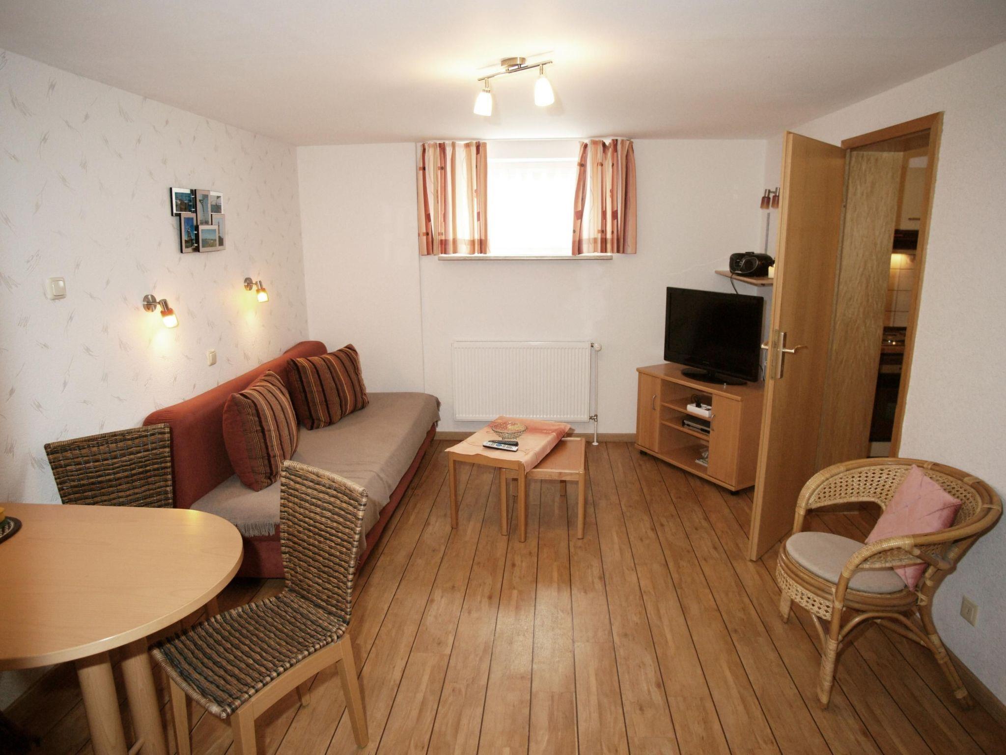 This apartment was renovated and modernised in winter 2015. The bedroom provides a double bed with a bedside table on either side. The living room provides ample space for cosy hours in front of the TV, with a sofa and an armchair. You can enjoy meals together in the dining space. The separate kitchen is right next to the living room. We attach great importance to cleanliness, so there are no carpets. The big bathroom has a shower. Free Wifi.