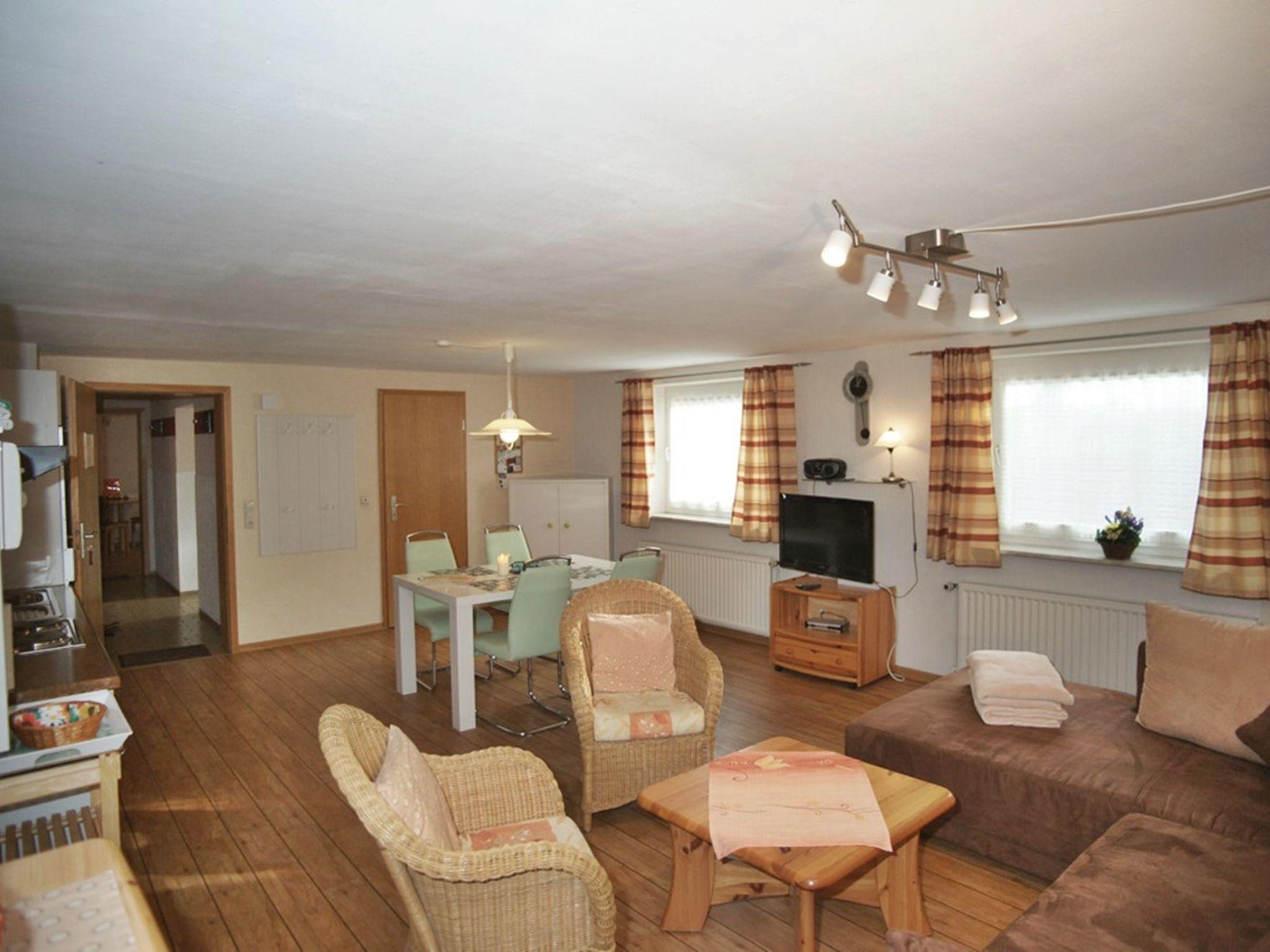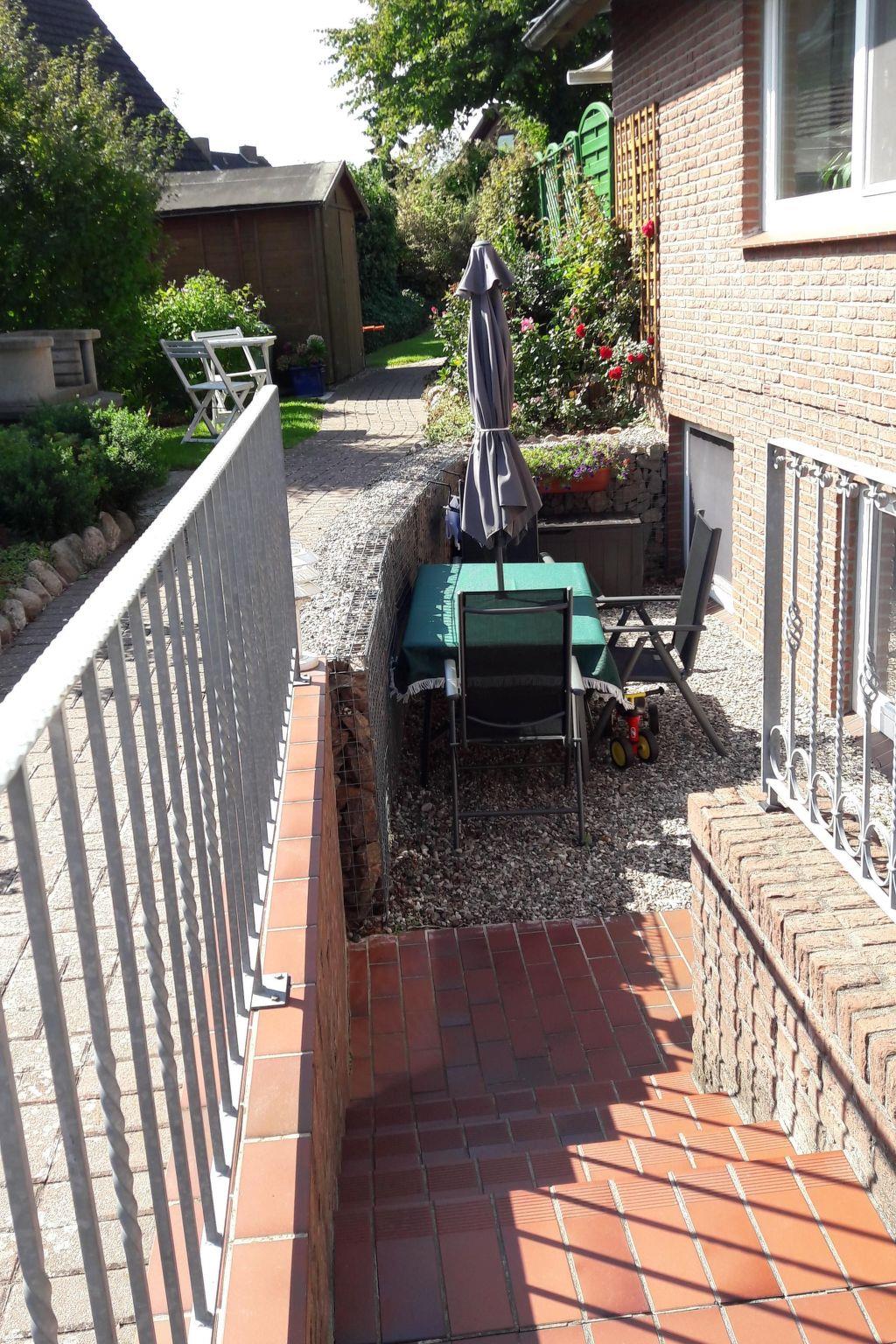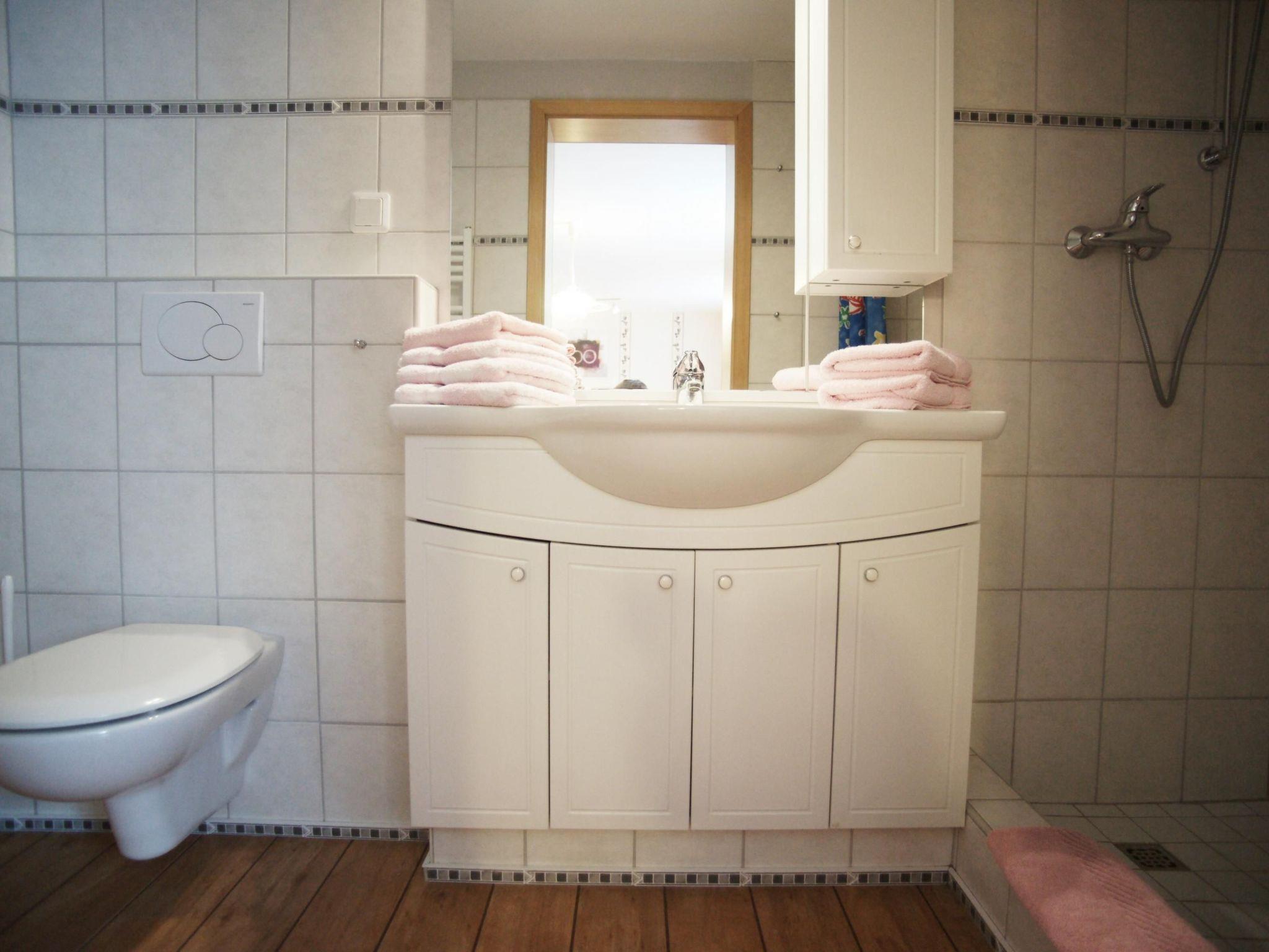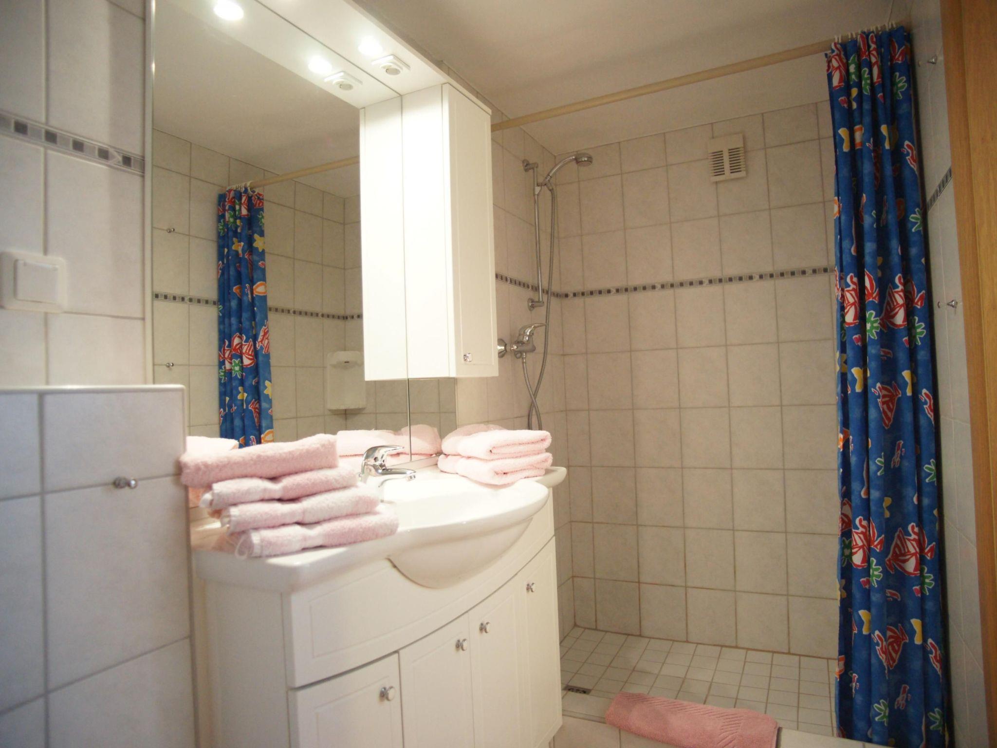 The apartment in the basement measures 60m² and has normal-sized windows. The apartment has a big bedroom with a double bed and adjustable slatted frame, a living room with a new suite and two beds, a shower room, and a kitchen unit. This apartment was renovated and modernised in winter 2013. The living room provides ample space for cosy hours in front of the TV, with a big suite and two armchairs. You can enjoy meals in the dining space. The big kitchen unit is also in the living room. The bathroom is fitted with a large shower. As we attach great importance to cleanliness, there are no carpeted floors and a pleasant stay is ensured.
