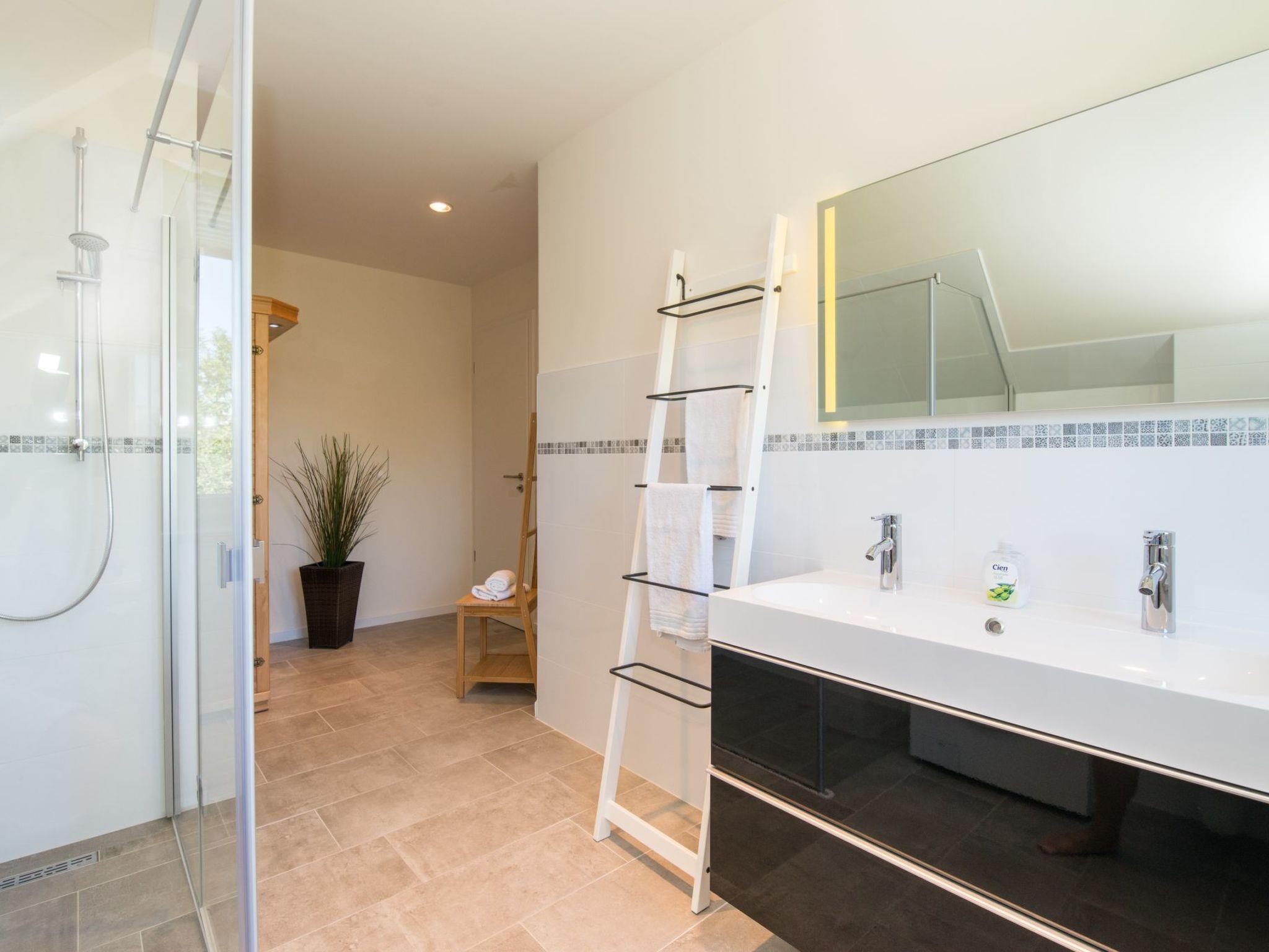 The outdoor area of the holiday home with its beautiful terrace invites you to linger and relax. You can spread out and unwind in the shared garden. A charging station is available for guests travelling with an electric car. Bicycles can be safely stored in a covered and lockable storage area. Enjoy the fresh air and idyllic tranquillity to the full here.