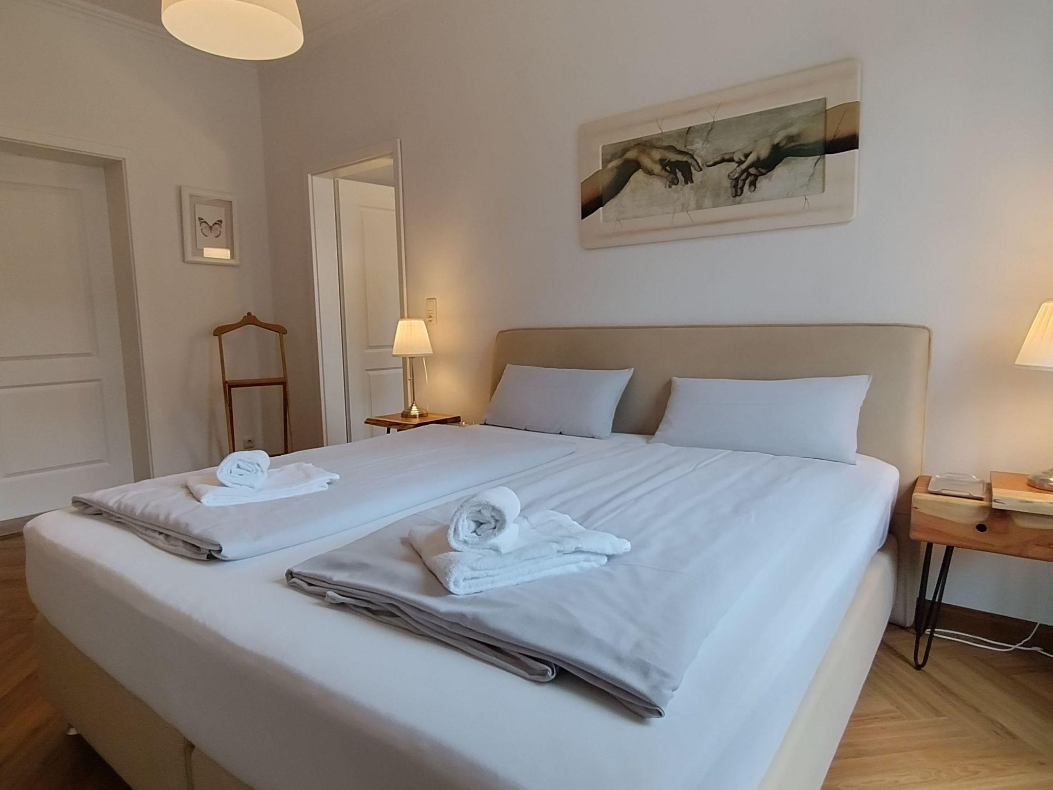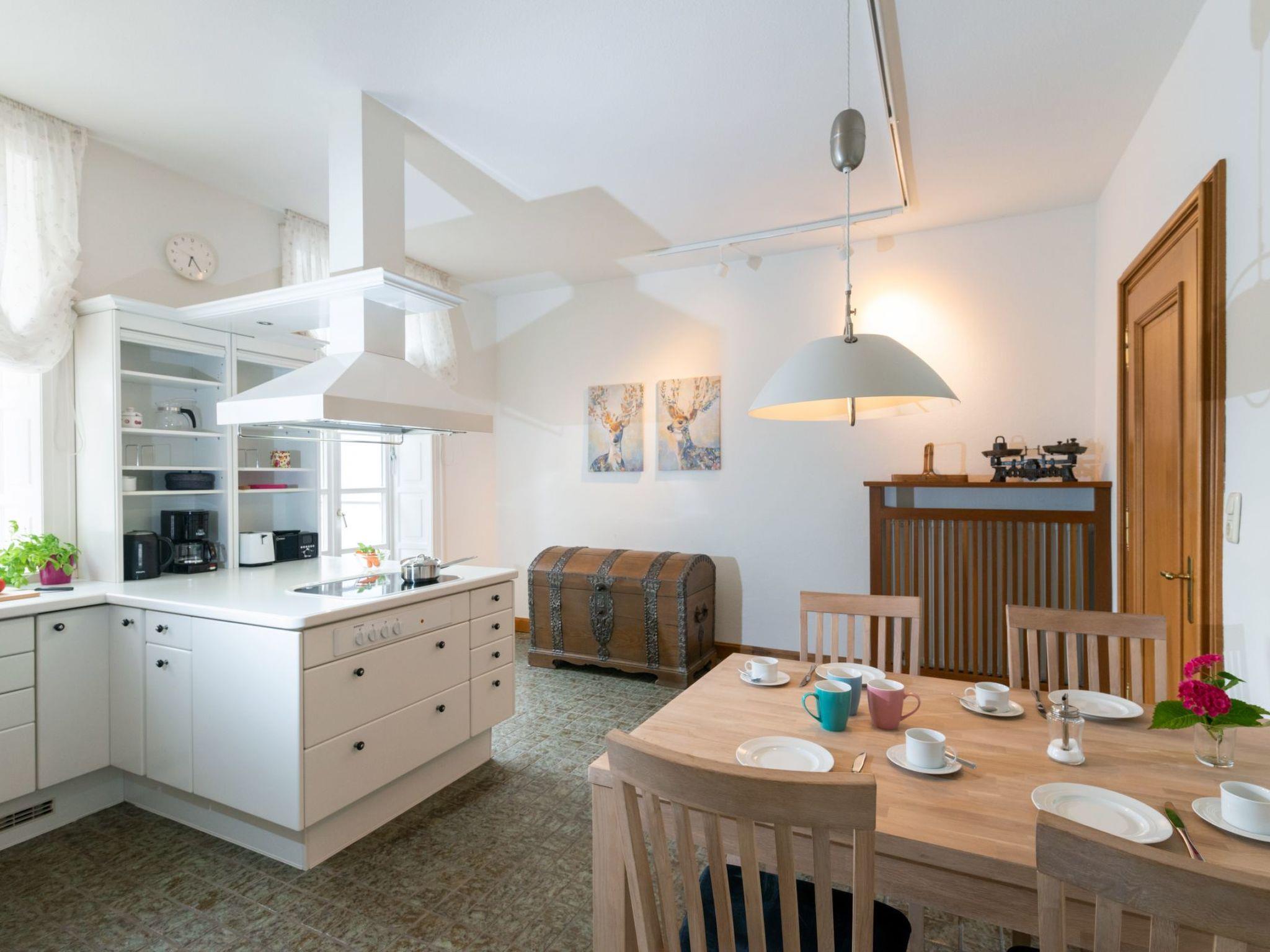 The flat offers everything you need for a comfortable stay. With a well-equipped kitchen featuring a ceramic hob, filter coffee machine, kettle and dishwasher, you can feel right at home and cook as you please. A washing machine for communal use is also available in the building, which is particularly practical for longer stays.