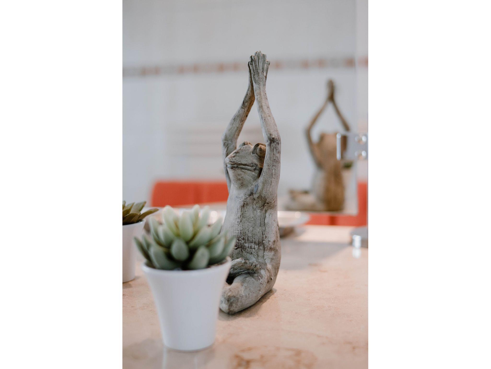 Zwei der Schlafzimmer besitzen je ein komfortables 1,80 x 2 m großes Doppelbett. Die weiteren Gäste schlafen im Einzelbett im kleinen 3. Schlafzimmer oder im 4. Schlafzimmer mit separatem Duschbad im Erdgeschoss der Wohnung.