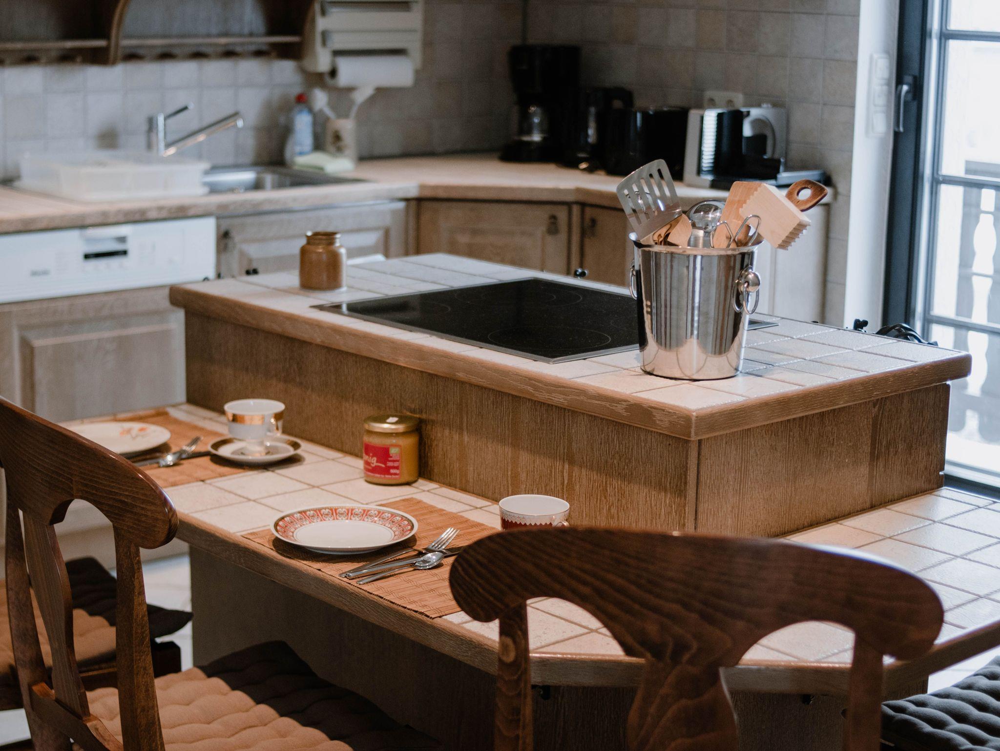 In der großen, voll ausgestattetten Landhausküche finden Sie einen Backofen mit Ceranfeld, Spülmaschine, Kühlschrank mit Gefriermöglichkeit, Wasserkocher, Toaster und Kaffeemaschine. Um die Kochinsel herum finden Sie Essplätze und können beim Kochen den Blick auf beide Seen genießen. Im großen Wohnzimmer gibt es noch einen weiteren geräumigen Essbereich.