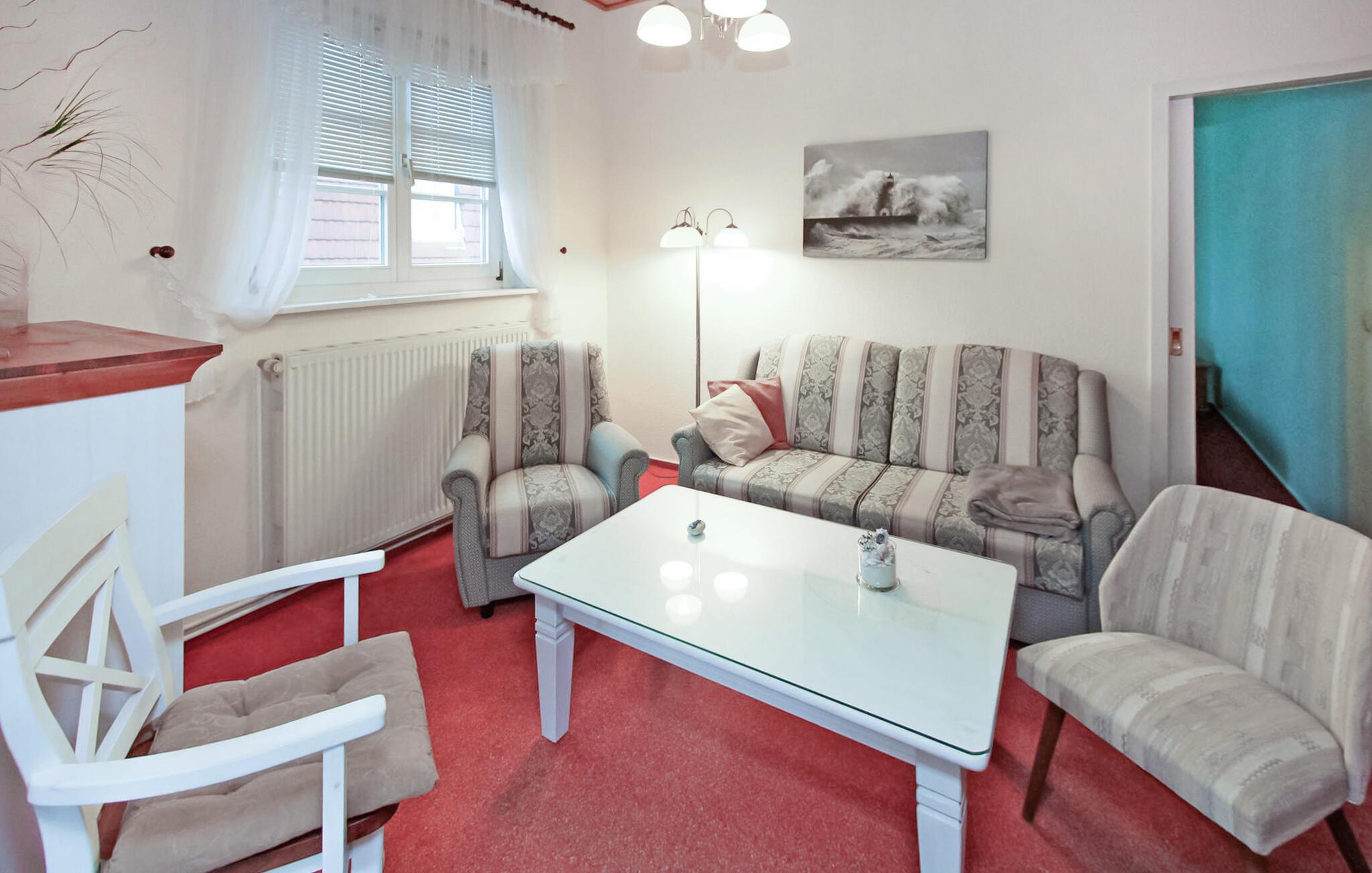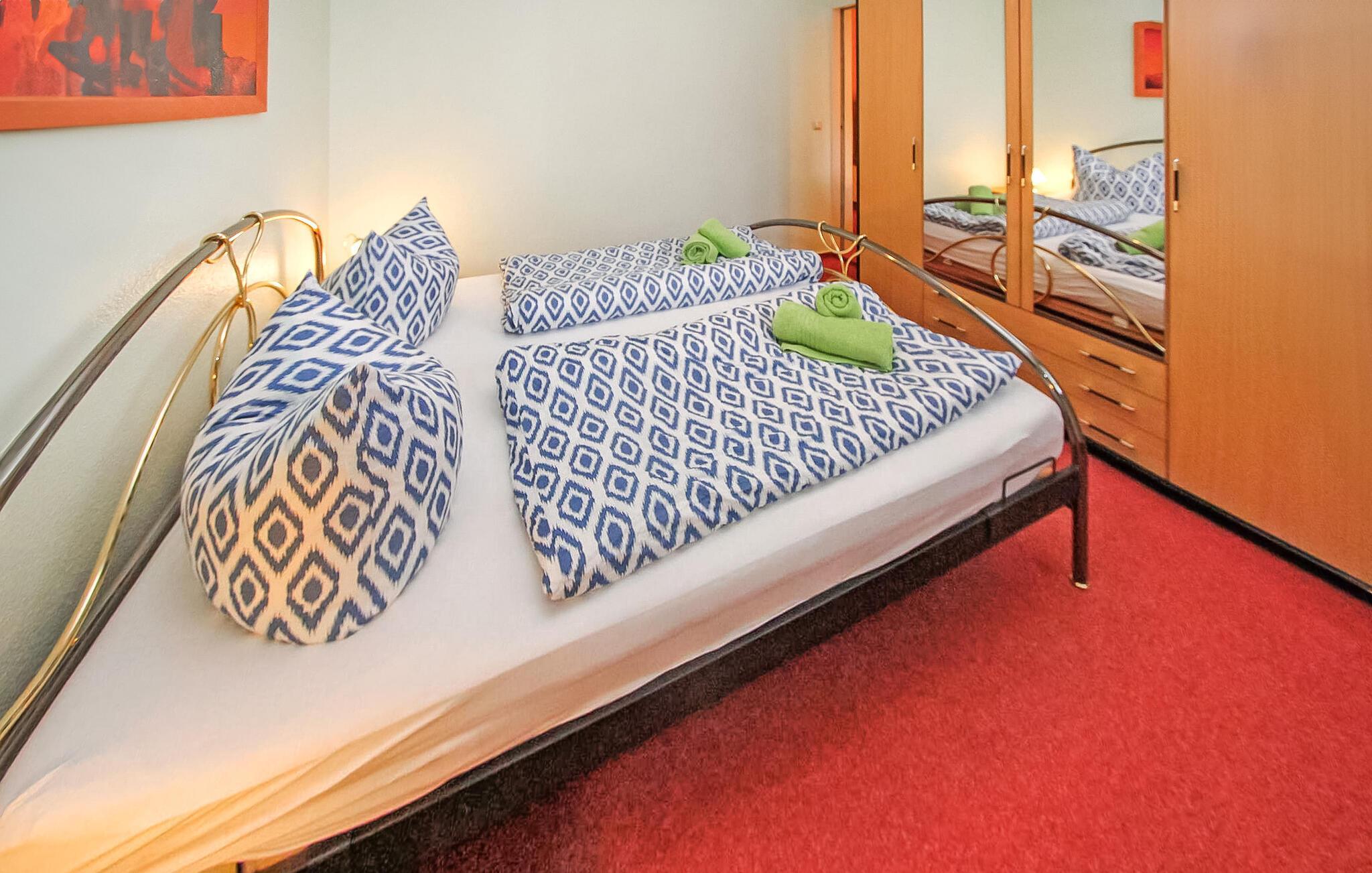 En af fire ferielejligheder i en villa bygget i typisk feriestedsarkitektur mellem Østersøstranden (ca. 100 m) og Schloonsee. Der er separat adgang til lejlighederne. Der er en gratis parkeringsplads (trang) til rådighed for hver boligenhed. Når de er fyldte og af pladshensyn, parkeres gæstebilerne efter hinanden, hvilket kræver koordinering mellem hinanden. En babyseng er tilgængelig efter aftale. Den samlede pris inkluderer vand- og energiforbrug samt slutrengøring. Du skal selv medbringe sengelinned og håndklæder. Cykler kan parkeres på ejendommen. Denne ferielejlighed har en størrelse på 35 kvm. En rejseseng kan efter aftale leveres gratis. Udstyret er behageligt. Stue (sovesofa, satellit-tv, radio), soveværelse (dobbeltseng), veranda med tekøkken og spiseplads, bad/toilet, centralvarme. Badebyerne Bansin, Heringsdorf og Ahlbeck er de såkaldte kejserlige feriesteder på øen Usedom. De har brede sandstrande, moler med moler og er forbundet med hinanden af en promenade, der fører til Swinoujscie i Polen. I byerne er der leje af cykler, båd og strandstole, tennisbaner og et netværk af godt afmærkede vandrestier. Et moderne vandland, Ostseetherme, ligger centralt mellem Heringsdorf og Ahlbeck. Grænseovergangen til Polen kan nås fra Ahlbeck på få minutter.