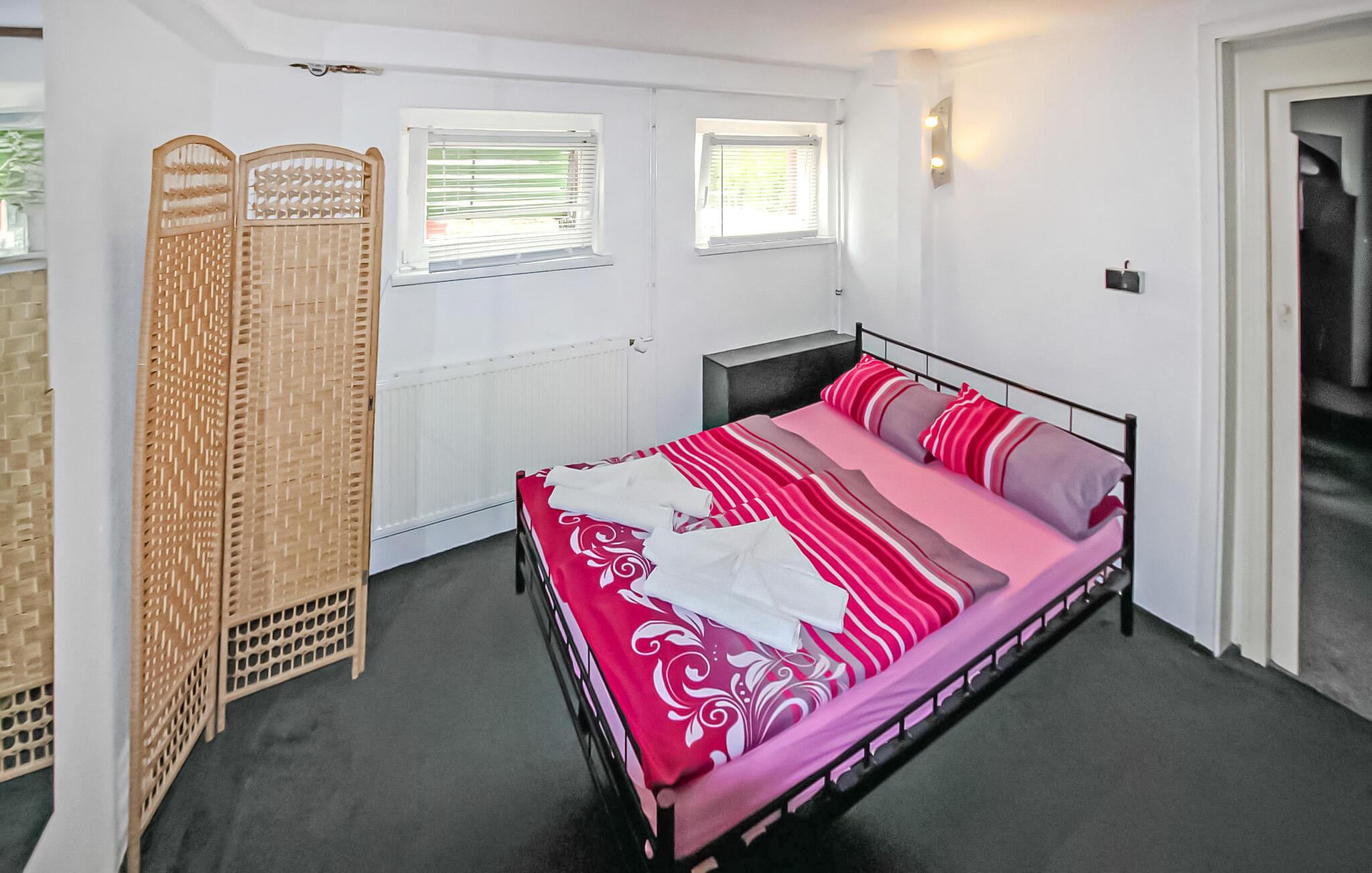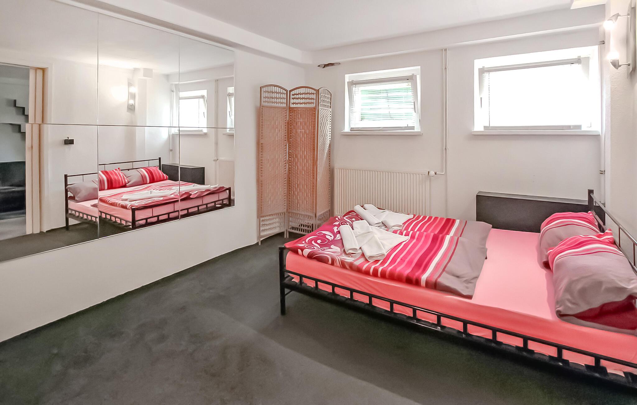 De to ferieværelser, denne 2-værelses lejlighed med integreret bruser og DZV465 med 1 dobbeltværelse med integreret brusebad, ligger i kælderen i ejerens hus, ca 1 km fra Østersøstranden. Separat adgang via en stejl trappe. Toilettet (fælles brug) og et lille værelse med diverse køkkenmaskiner (køleskab, el-komfur mv.) er rumligt adskilt fra ferieværelserne og kan nås via fælles gang. Der er en møbleret terrasse med grill, opbevaring af cykler og en parkeringsplads. Den samlede pris inkluderer sengelinned, håndklæder, vand- og energiforbrug samt slutrengøring. Betales på stedet: turistskat, WiFi 5 EUR. Overordnet set er boligen en simpel overnatning til korte ophold. Høje komfortstandarder er ikke opfyldt. Grundet fælles brug af toilet og madlavningsfaciliteter anbefales det at booke begge værelser helt. Badebyerne Bansin, Heringsdorf og Ahlbeck er de såkaldte kejserlige feriesteder på øen Usedom. De har brede sandstrande, moler med moler og er forbundet med hinanden af en promenade, der fører til Swinoujscie i Polen. I byerne er der leje af cykler, båd og strandstole, tennisbaner og et netværk af godt afmærkede vandrestier. Et moderne vandland, "Ostseetherme", ligger centralt mellem Heringsdorf og Ahlbeck. Grænseovergangen til Polen kan nås fra Ahlbeck på få minutter.