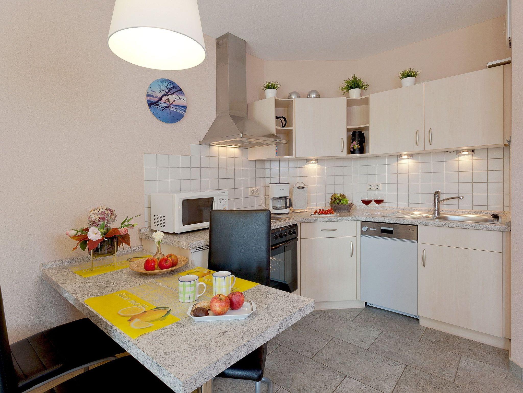 Das helle Zwei-Zimmer-Appartement befindet sich im Erdgeschoss und bietet mit einer Größe von 40 Quadratmetern ausreichend Platz für einen erholsamen Urlaub mit bis zu vier Personen.