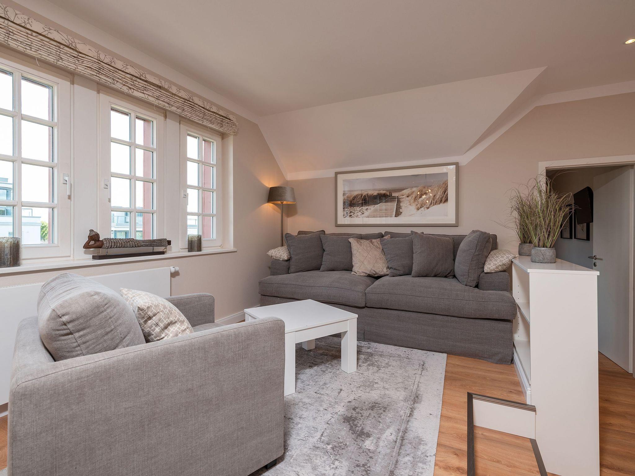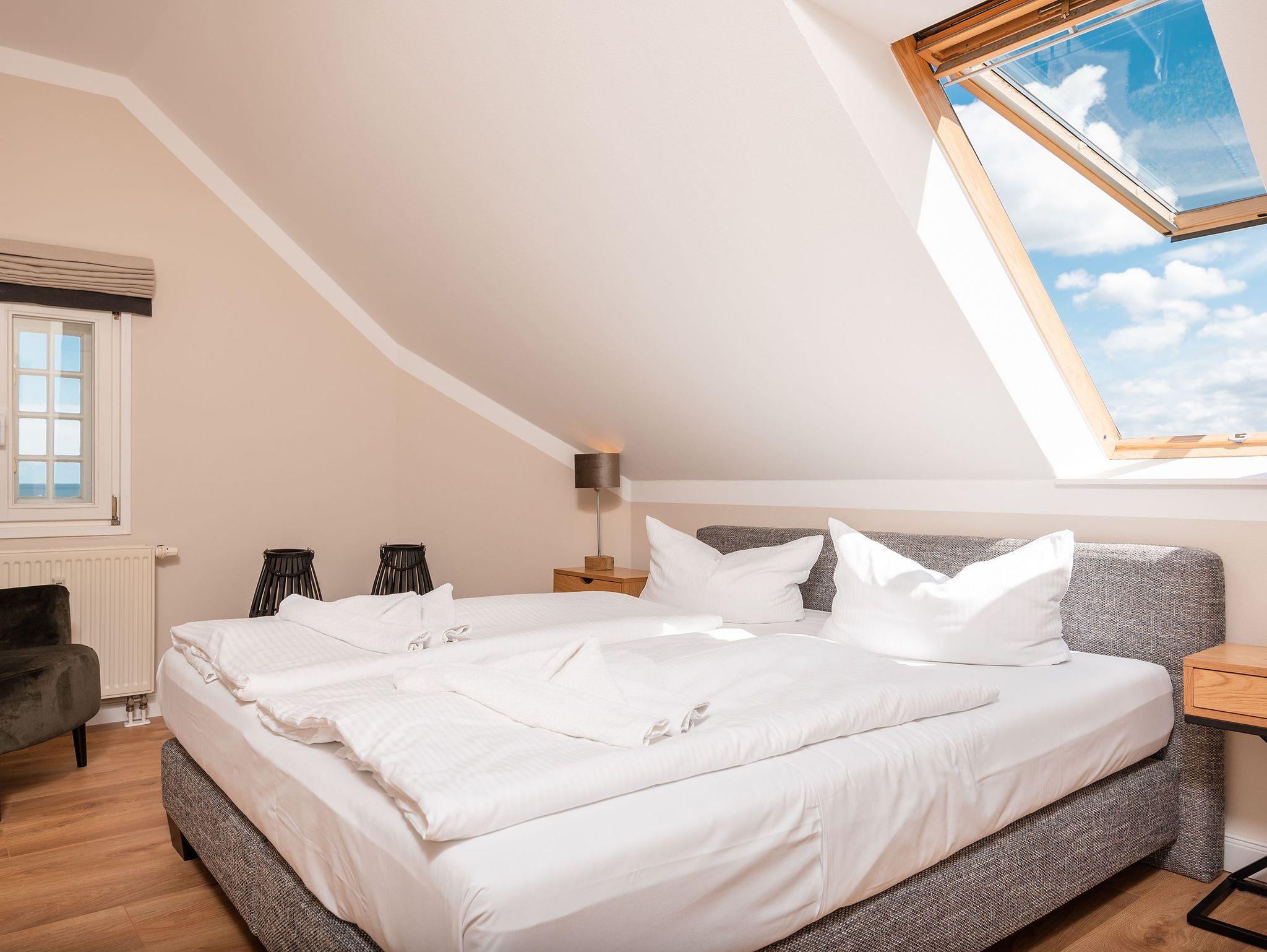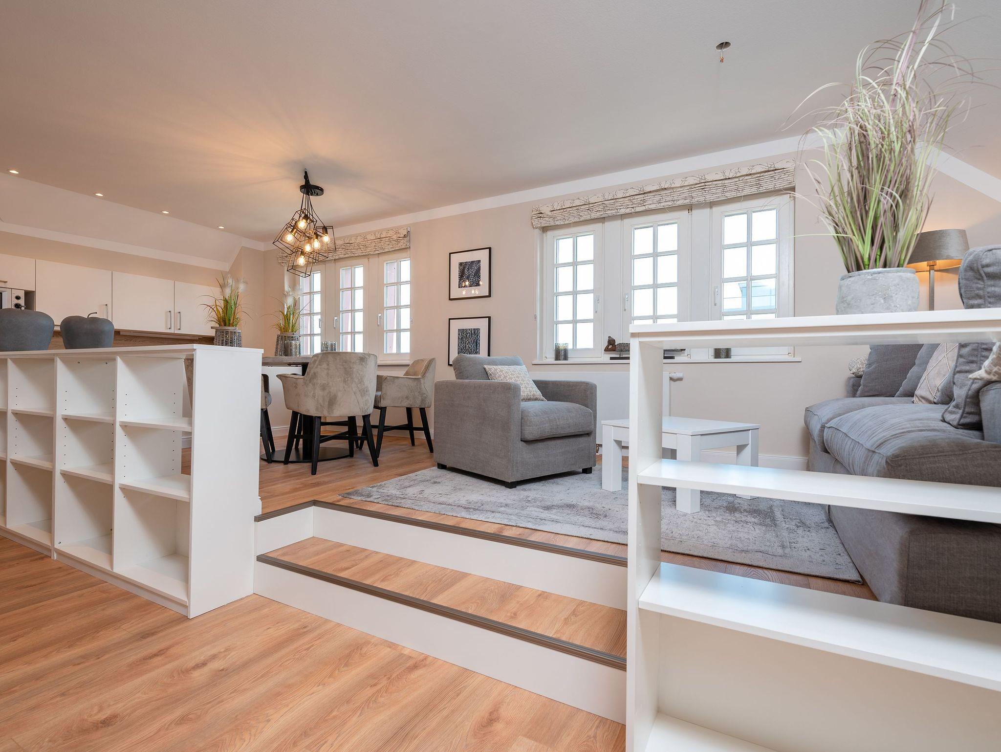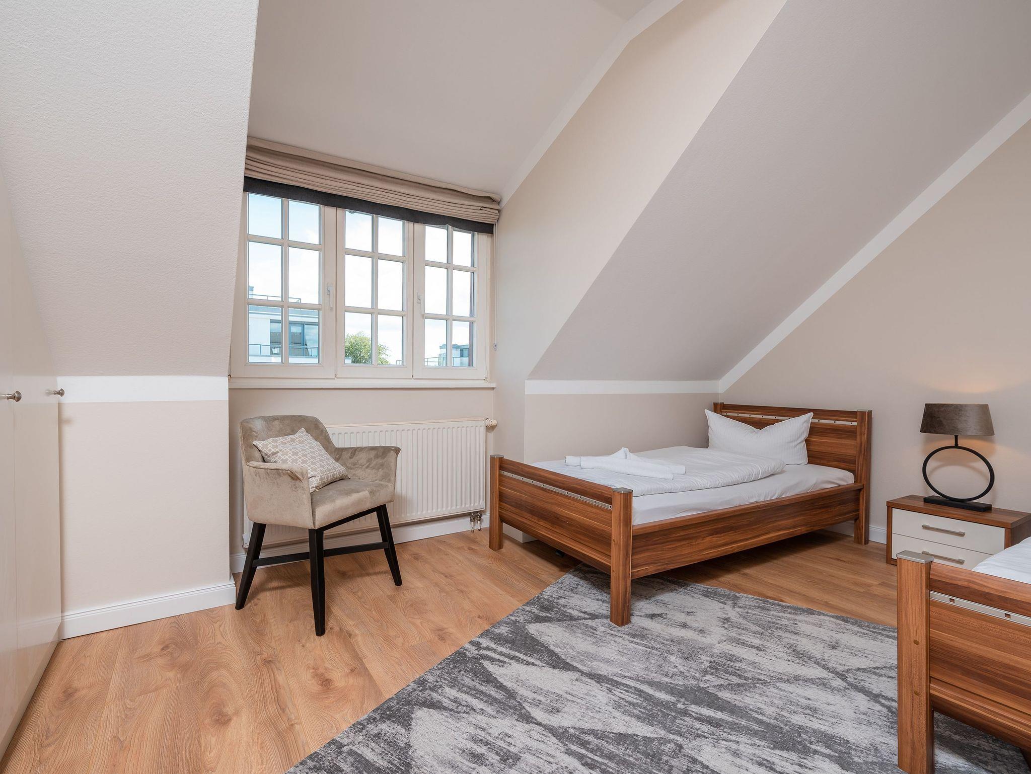 Die Wohnung ist stilvoll eingerichtet und bietet Platz für bis zu 4 Personen. Im gemütlichen Wohn- und Essbereich mit Seeblick können Sie entspannte Momente genießen. Die vollausgestattete Küchenzeile lädt zu gemeinsamen Kochabenden ein. Zwei komfortable Schlafzimmer garantieren ruhige Nächte: eines mit einem Doppelbett und das andere mit zwei Einzelbetten. Das moderne Badezimmer ist mit einer großen Dusche, WC und ausreichend Platz für Ihre Urlaubsutensilien ausgestattet.
