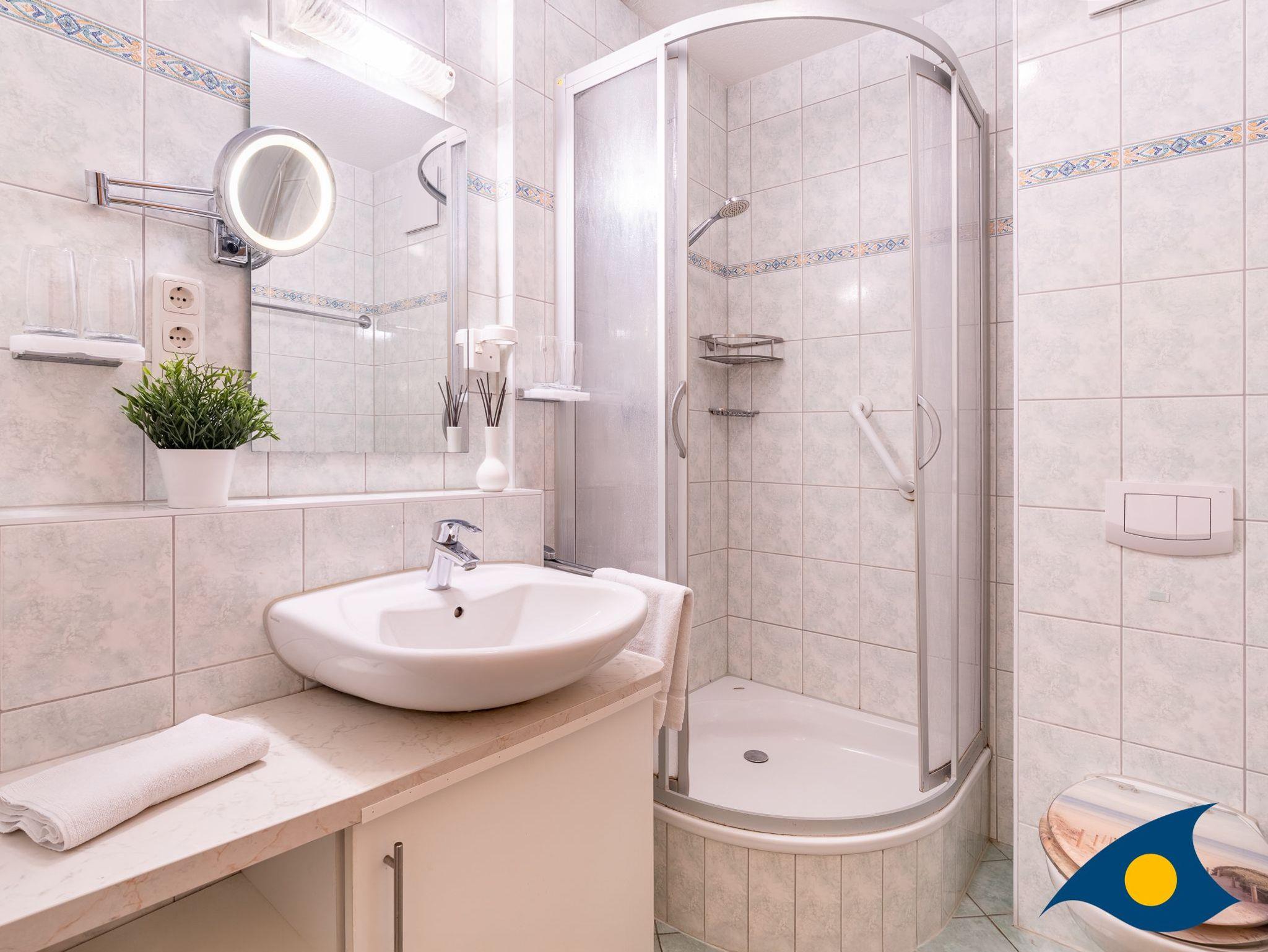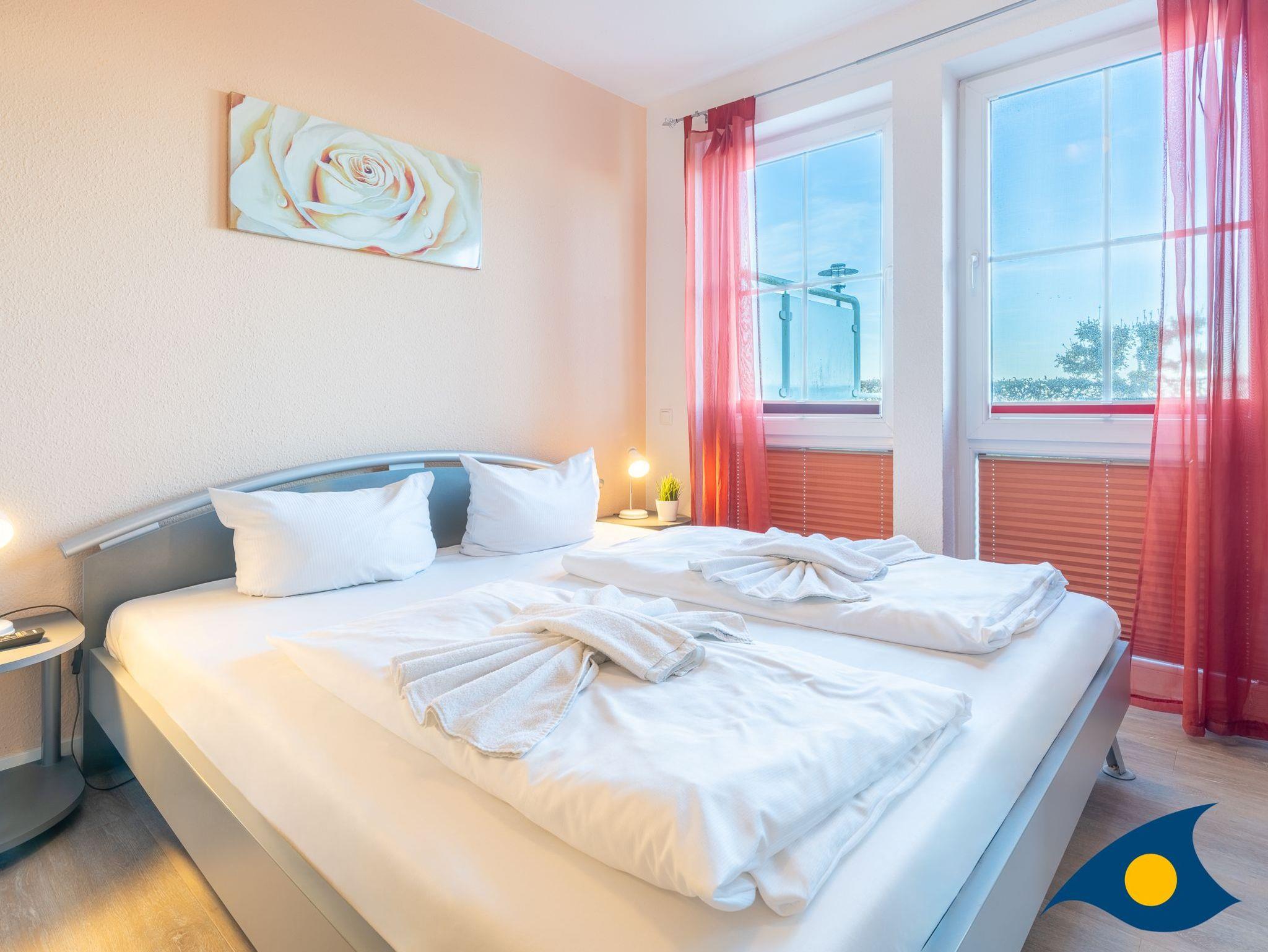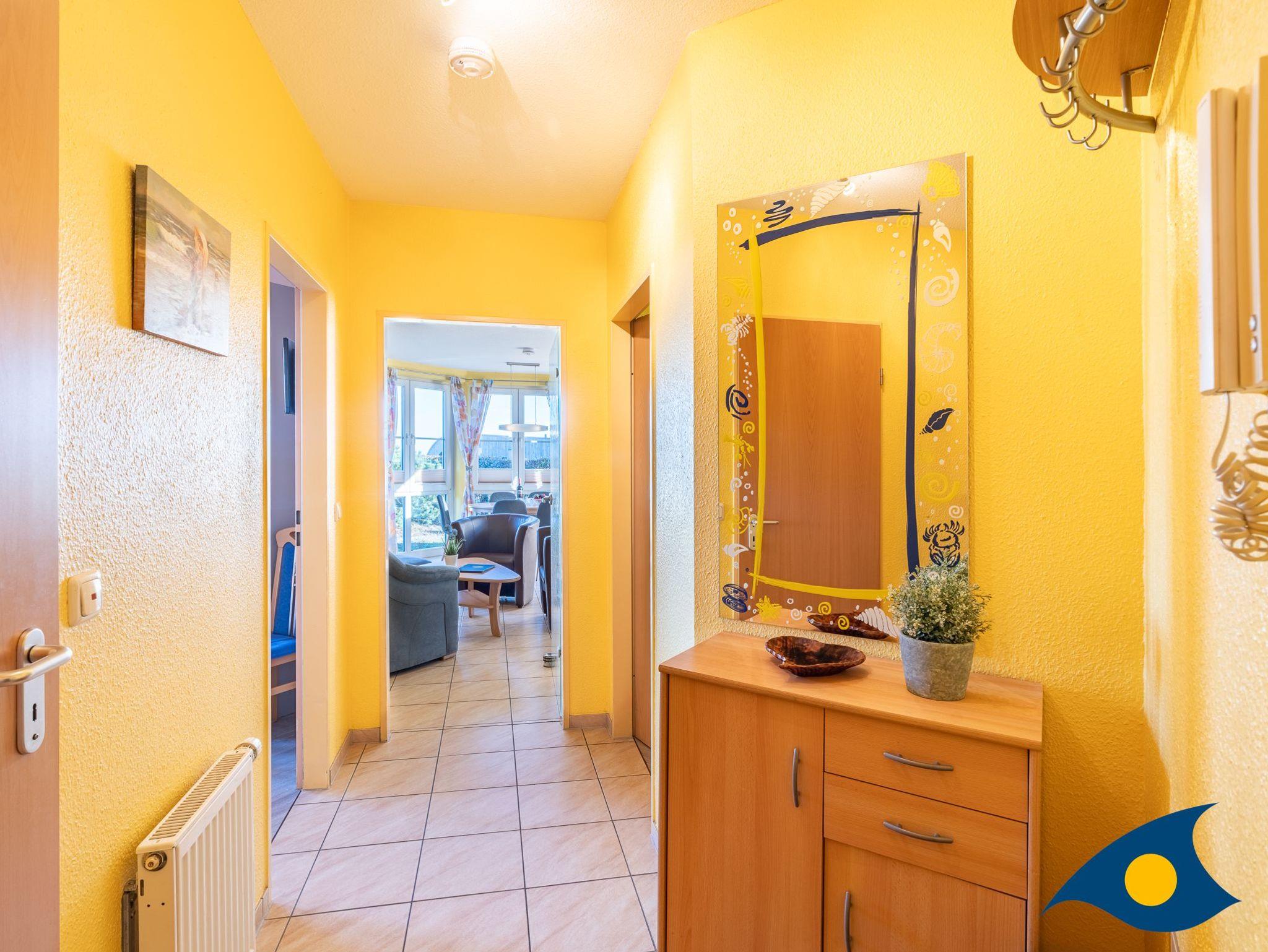 Die großzügige Terrasse und die östlich gelegene Loggia gestatten freie Sicht auf das Meer. Die Wohnung wurde familienfreundlich eingerichtet und ist mit ihrem direkten Promenadenzugang sehr gut für Senioren geeignet.