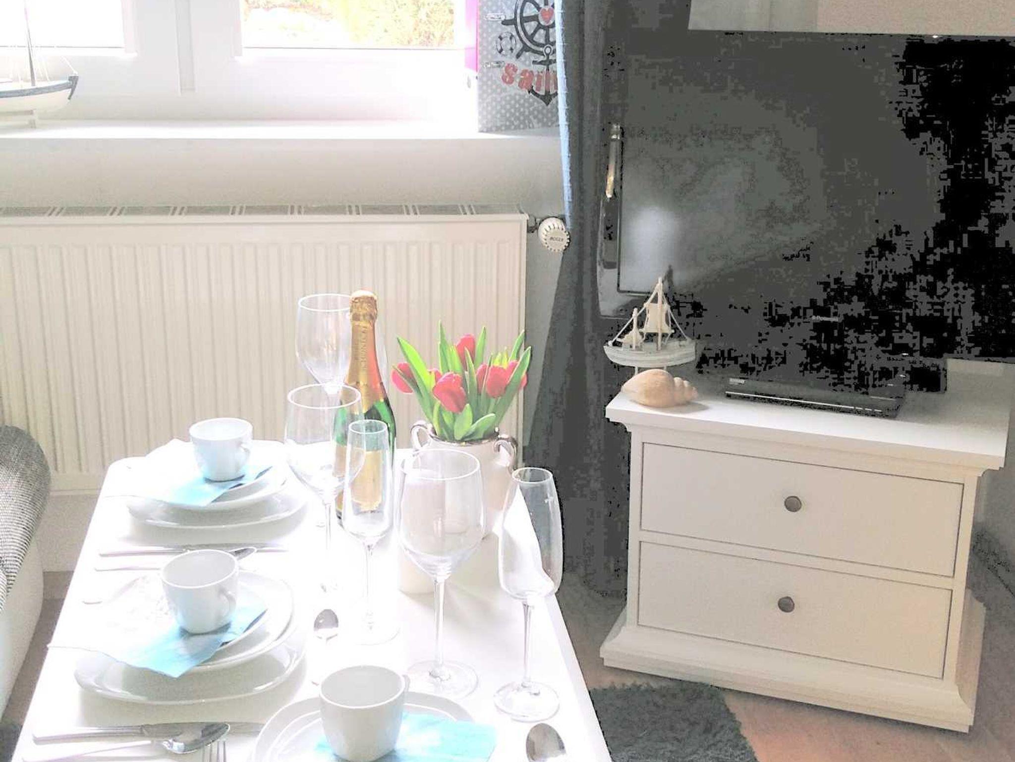 - 1 kombiniertes Wohn- und Schlafzimmer für 2 Personen - 1 Aufbettung möglich - Flachbildfernseher mit SAT- Anschluss - 1 Einbauküche mit Kühlschrank und Herd - Dusche/ WC - - Parkplatz inkl. - große Terrasse mit Grillgelegenheit - Klein- und Haustiere sind willkommen - Wohnung ist mit kostenlosem WLAN ausgestattet - Erdgeschosswohnung - nächste Bademöglichkeit 10 Minuten entfernt - Neubau