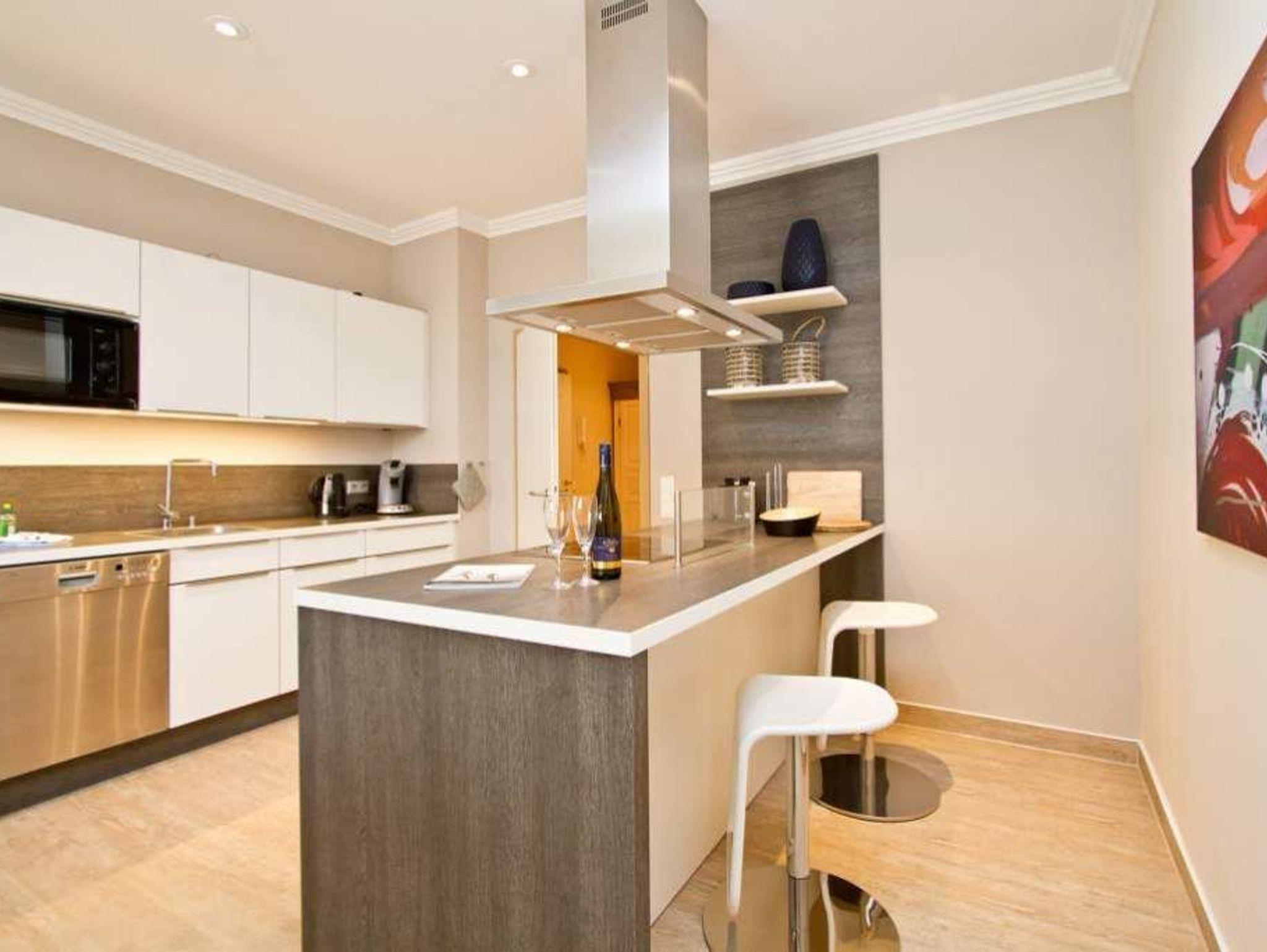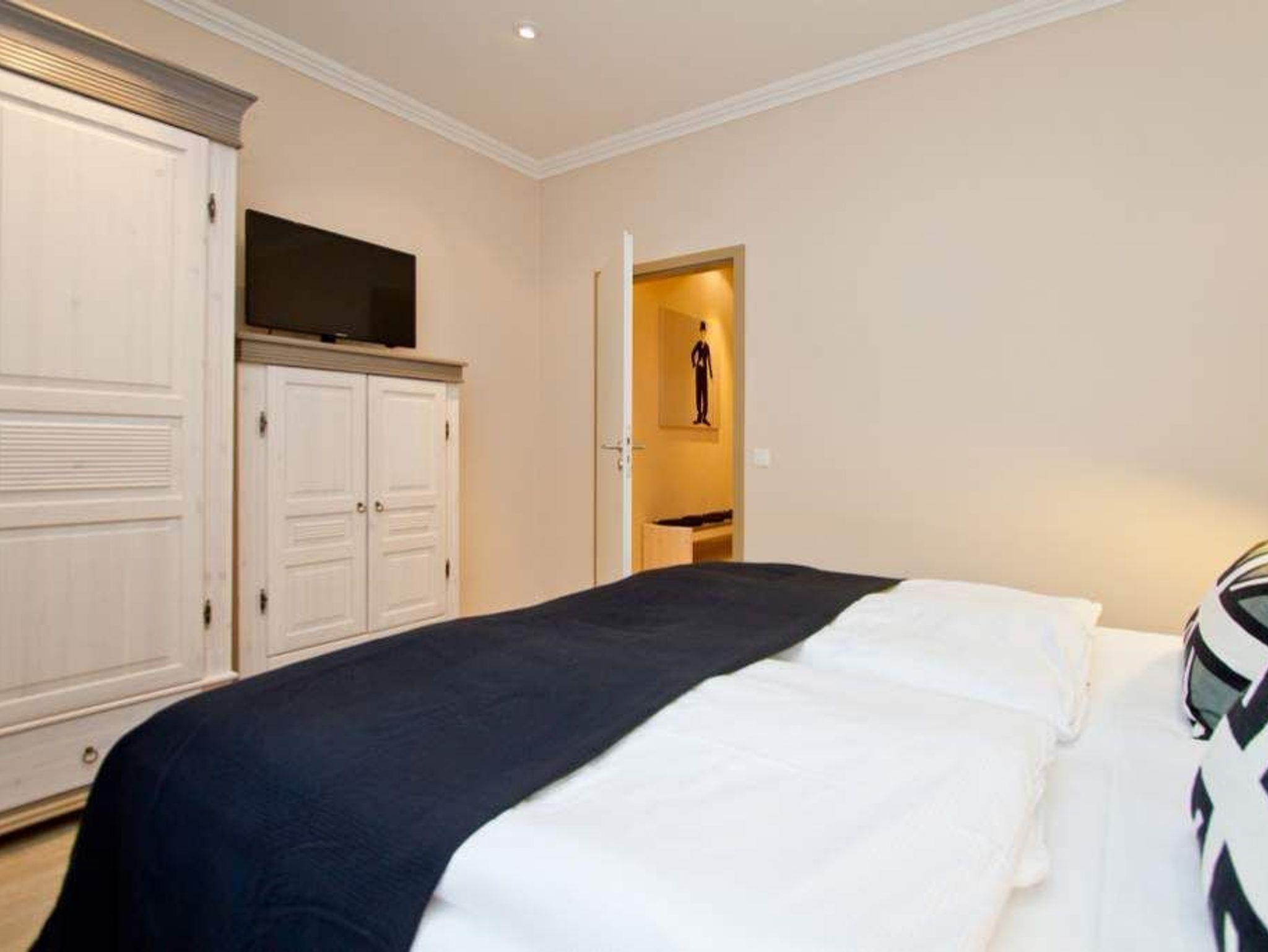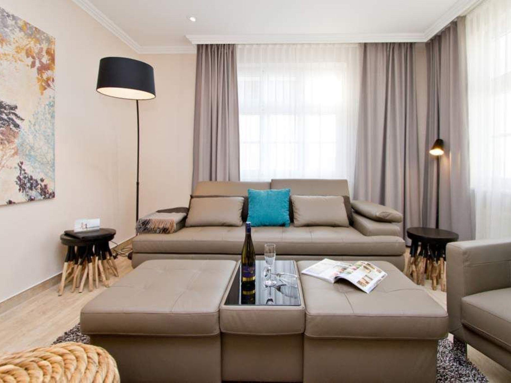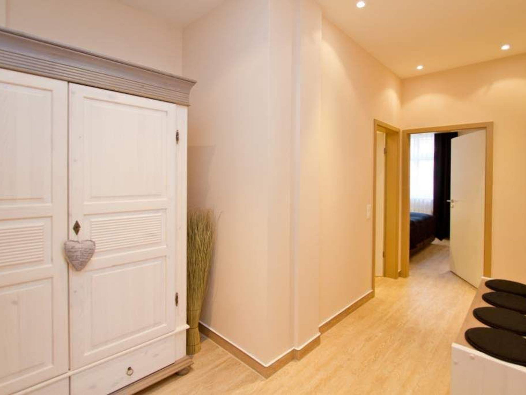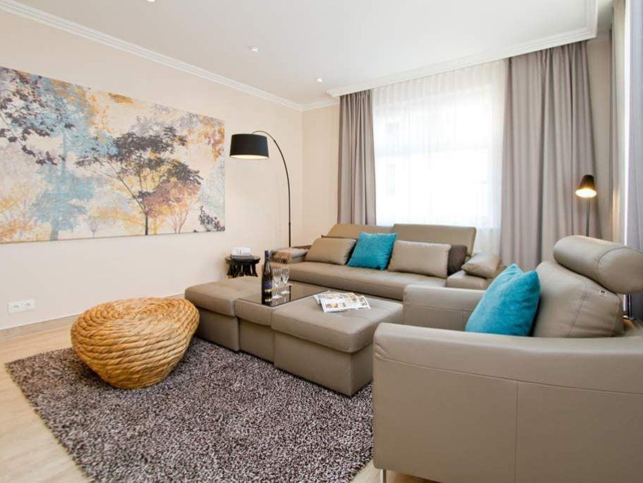 Gekonnt, modern, stylisch - die neu gestaltete 2-Raum-Ferienwohnung im Hochparterre (64 qm für 2 Erwachsene und 1 Kleinkind bis 3 Jahre) wird Sie sicher begeistern. Die hochwertige neue Einrichtung lässt keine Urlaubswünsche offen. Ein großzügiges Wohnzimmer mit Ledersitzgruppe und Flat-TV, eine separate Küche mit schönem Essplatz und das Schlafzimmer mit Doppelboxspringbett (1,80m x 2,00 m) und Flat-TV werden durch ein Bad mit Dusche und WC ergänzt. Pkw-Stellplatz Nr. 25 (nur für PKW - kein Kombi!) in der Doppelparker Garage oben (max. PKW-Höhe 1,50 m, PKW Länge max. 5,00m/ Gewicht max. 2t). Auf Wunsch stellen wir für unsere kleinen Gäste ein Kinderreisebett (ohne zusätzliche Matratze [&] Bettzeug) und einen Kinderhochstuhl ( gegen einen Aufpreis) zur Verfügung. Für Ihren Komfort sind die Betten bei der Anreise bezogen und Handtücher liegen bereit.