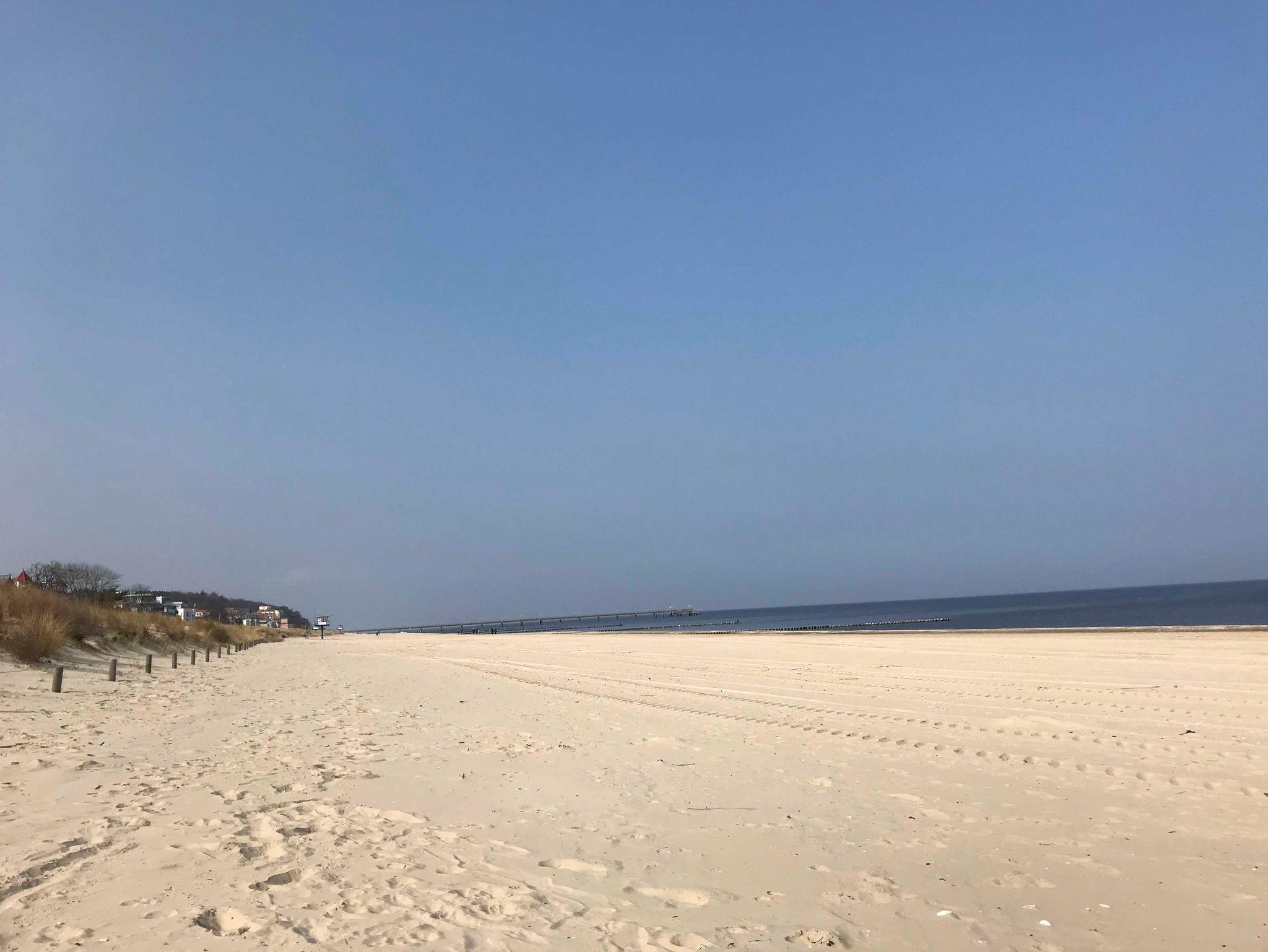 Sonne, Strand und Kieferbäume ? außergewöhnlich schönes Spiel von Licht und Schatten vor unserer Strandperle an der Bansiner Promenade in Toplage