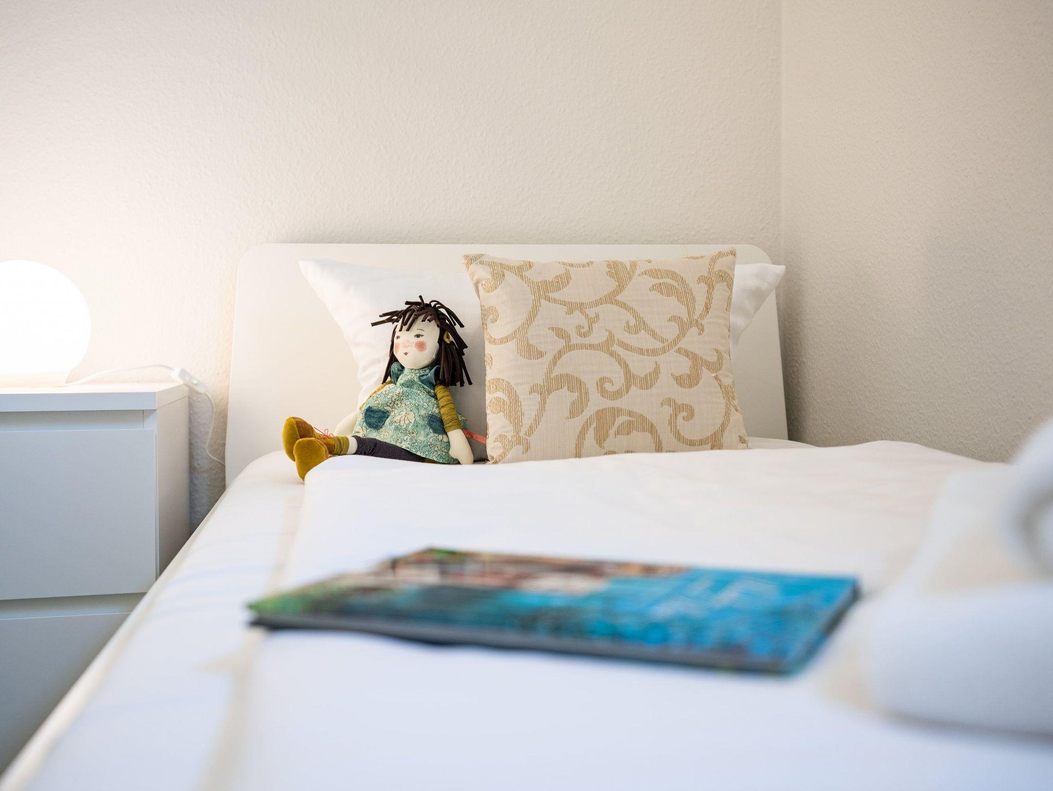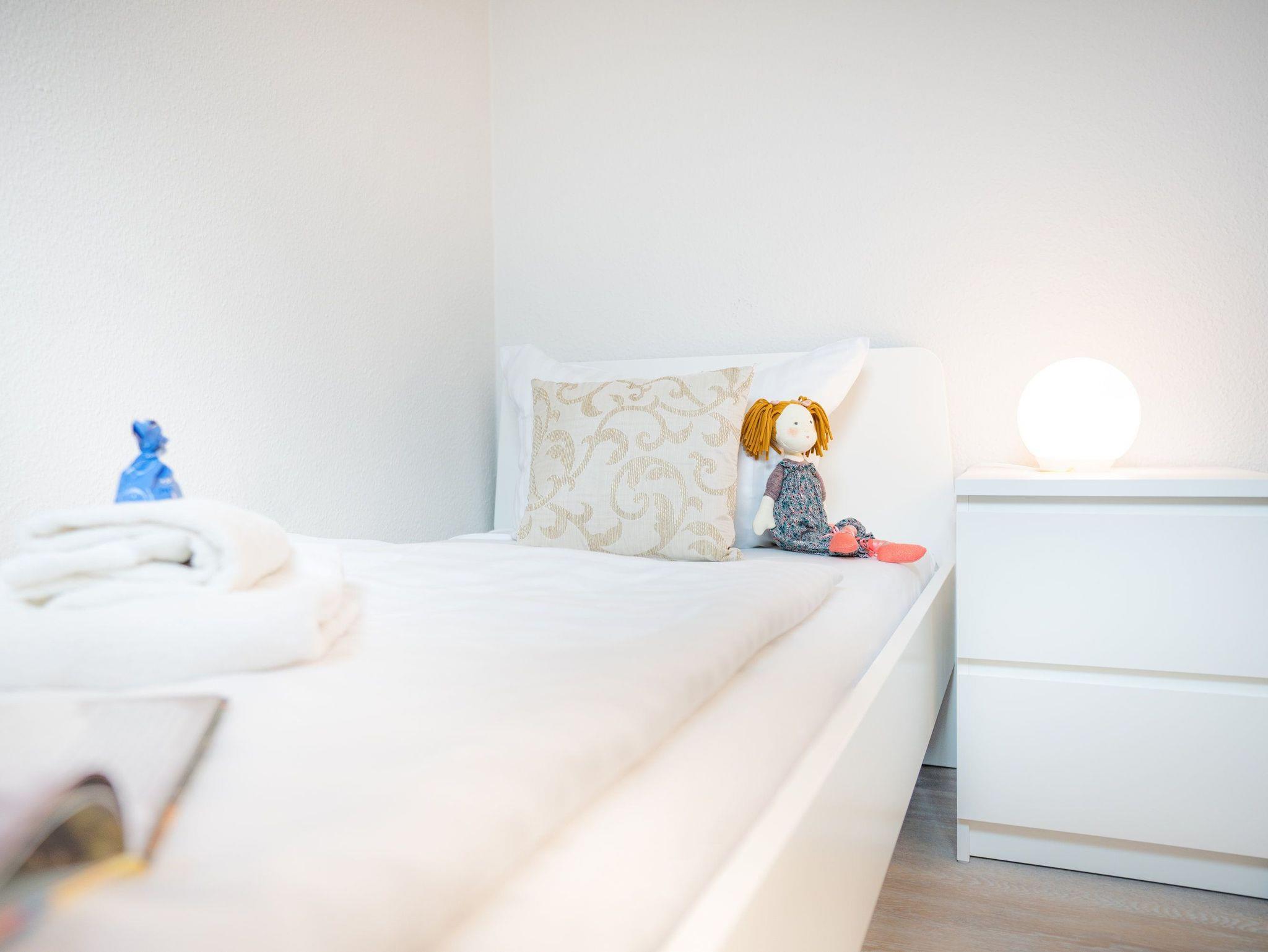 Im Schlafzimmer ist die Aufbettung mit einem Kleinkind bis 3 Jahre in einem Babyreisebett möglich. Das Babyreisebett können Sie kostenlos hinzubuchen.