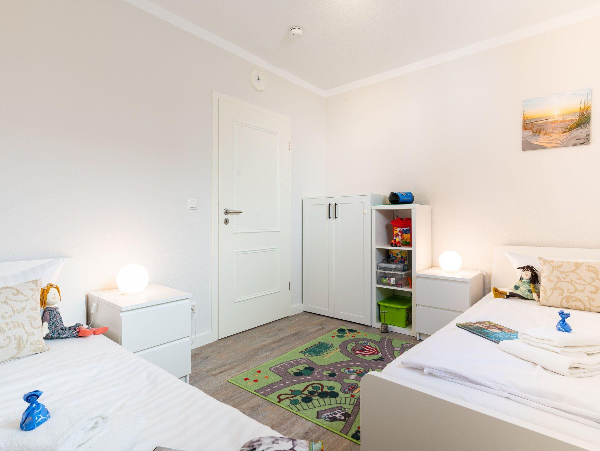 Auf dem angrenzenden Balkon Richtung Südwest können Sie die Seele so richtig baumeln und den Urlaubstag ausklingen lassen. Im ersten Schlafzimmer lädt ein bequemes Doppelbett (170 x 200cm / durchgehende Matratze) zur Nachtruhe ein. Auf dem Flat TV können Sie Ihre Lieblingsserien verfolgen. Das zweite Schlafzimmer ist mit zwei Einzelbetten (je 90 x 200cm) ausgestattet. Ein Babyreisebettchen und ein Hochstuhl gehören zur Ausstattung des Appartements.