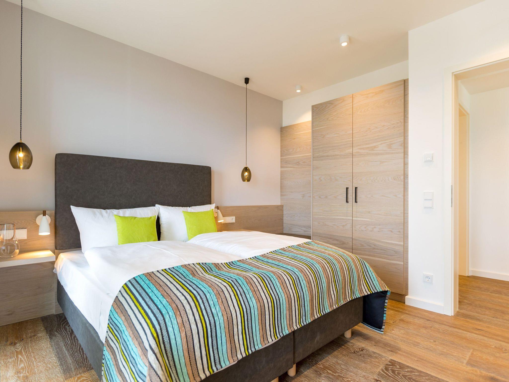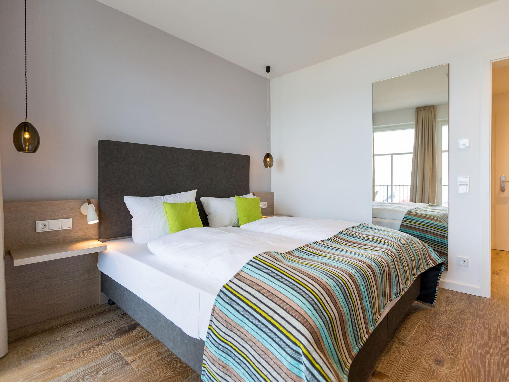 Leiden Sie auch an Meersehnsucht? In diesem Urlaubsparadies im 2. Stock des Beachhouses können Sie auf 74 Quadratmetern mit bis zu vier Personen und einem Kleinkind (bis drei Jahre im Kinderreisebett) Ihre Liebe zur Ostsee mit direktem Blick auf das endlose Blau genießen. Näher dran ist nur noch am Strand. Ob im wunderschön eingerichteten Wohnzimmer oder einem der beiden Schlafzimmer ? das Meer legt sich Ihnen in allen drei Zimmern zu Füßen. Von den beiden Balkonen (8 und 6 Quadratmeter) können Sie es schon morgens zum Frühstück genießen. Dann glitzert die Sonne auf den Wellen als lägen tausend Diamanten auf dem Wasser. In der offenen Wohnküche finden Sie alles, was Sie zum Zubereiten eines ausgiebigen Frühstückes, aber auch zum Kochen, Braten oder Backen brauchen. Hochwertige Markengeräte wie Geschirrspüler, Backofen, eine Kochinsel, Kühlschrank oder Mikrowelle erleichtern Ihnen das Zubereiten ungemein. Edles Geschirr sorgt für einen noblen Rahmen. Ist das Wetter einmal nicht zum Draußenessen geeignet, lädt der schöne Esstisch zum Einnehmen der Mahlzeiten ein. Das Wohn-Esszimmer strahlt durch seine großen Fenster, die viel Licht einlassen, die angenehmen und wohl temperierten Farbakzente und die exklusiven Design-Möbel eine harmonisierende und entspannende Atmosphäre aus. Auf dem bequemen Sofa lässt es sich wunderbar Relaxen. Für viel Gemütlichkeit sorgt ein Gas-Kamin. Zur Unterhaltung steht Ihnen ein großer Flat-TV sowie eine Hi-Fi-Anlage mit Bluetooth-Funktion zur Verfügung. Das WLAN ist in der Wohnung kostenfrei. Komfortable Boxspringdoppelbetten (1,80 m x 2,00 m und 1,60 m x 2,00 m) werden Ihren Träumen Flügel verleihen und die Urlaubsnächte zu einem echten Vergnügen machen. Ein jedes der beiden Schlafzimmer hat einen eigenen Balkon, einen Flat-TV und einen geräumigen Schrank. Das Appartement verfügt über zwei Bäder, in denen Sie jeweils eine schöne und ebenerdige Regendusche, einen Waschtisch mit großem Spiegel und ein WC vorfinden. Zu einer kleinen Wellness-Auszeit wird Ihr Ostseeurlaub außerdem. Denn im Masterbad erwartet Sie zudem eine Finnische Sauna. Da werden sogar die Schlechtwettertage an der Ostsee zu wunderbar entspannenden Kuscheltagen. Zum Waschen Ihrer Urlaubsgarderobe gibt es in einem separaten Hauswirtschaftsraum einen Wasch-Trockner. Kommen Sie also einfach an und genießen Sie Ihre Auszeit am Meer. Den Rest machen wir. Die Betten sind bei Ihrer Anreise bereits bezogen und Handtücher liegen bereit. In der modernen Tiefgarage ist für Sie der Stellplatz Nr. 11 im Doppelparker unten (max. Höhe 1,85 m, max. Länge 5,10 m, max. Breite 2,50 m, max. Last 2.600 kg) reserviert.