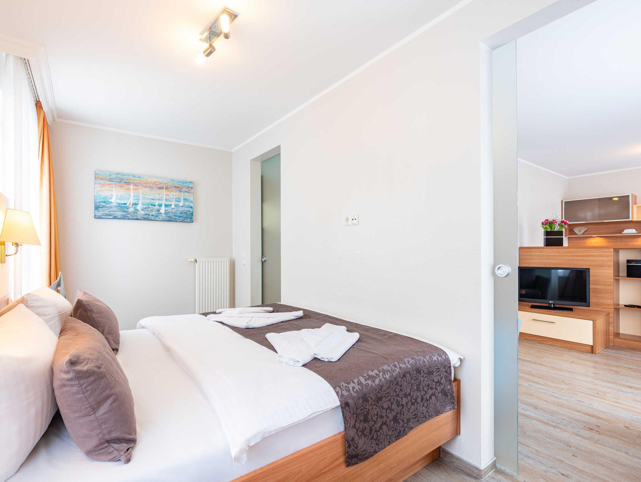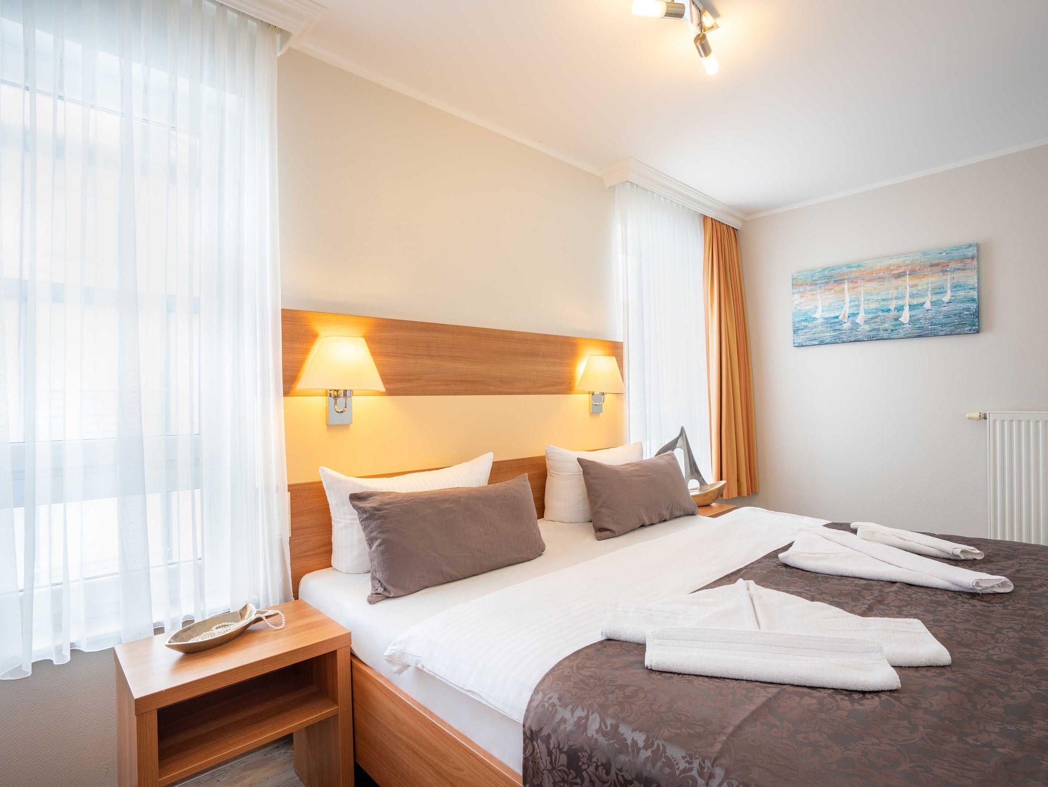 Stilvolle moderne Ferienwohnung mit ca. 39 qm. Das Haus bietet die Möglichkeit Fahrräder unterzustellen. Waschmaschine und Trockner stehen Ihnen im Haus als Münzautomaten zur Verfügung! Diese Kategorie verfügt über einen seitl.Meerblick!