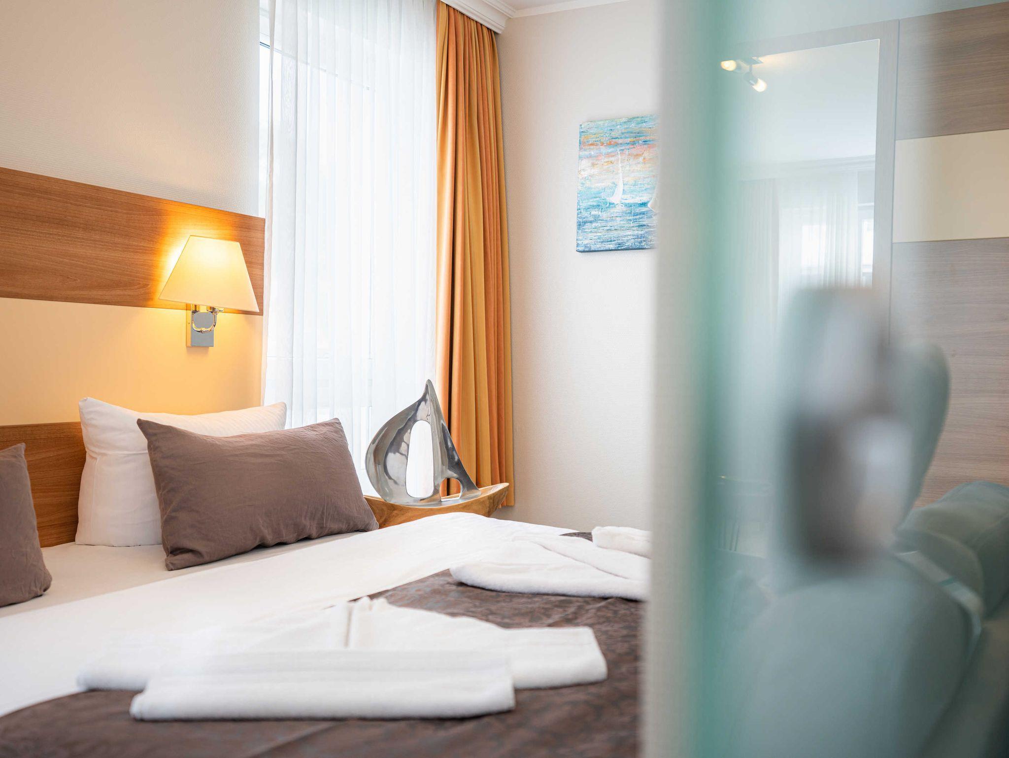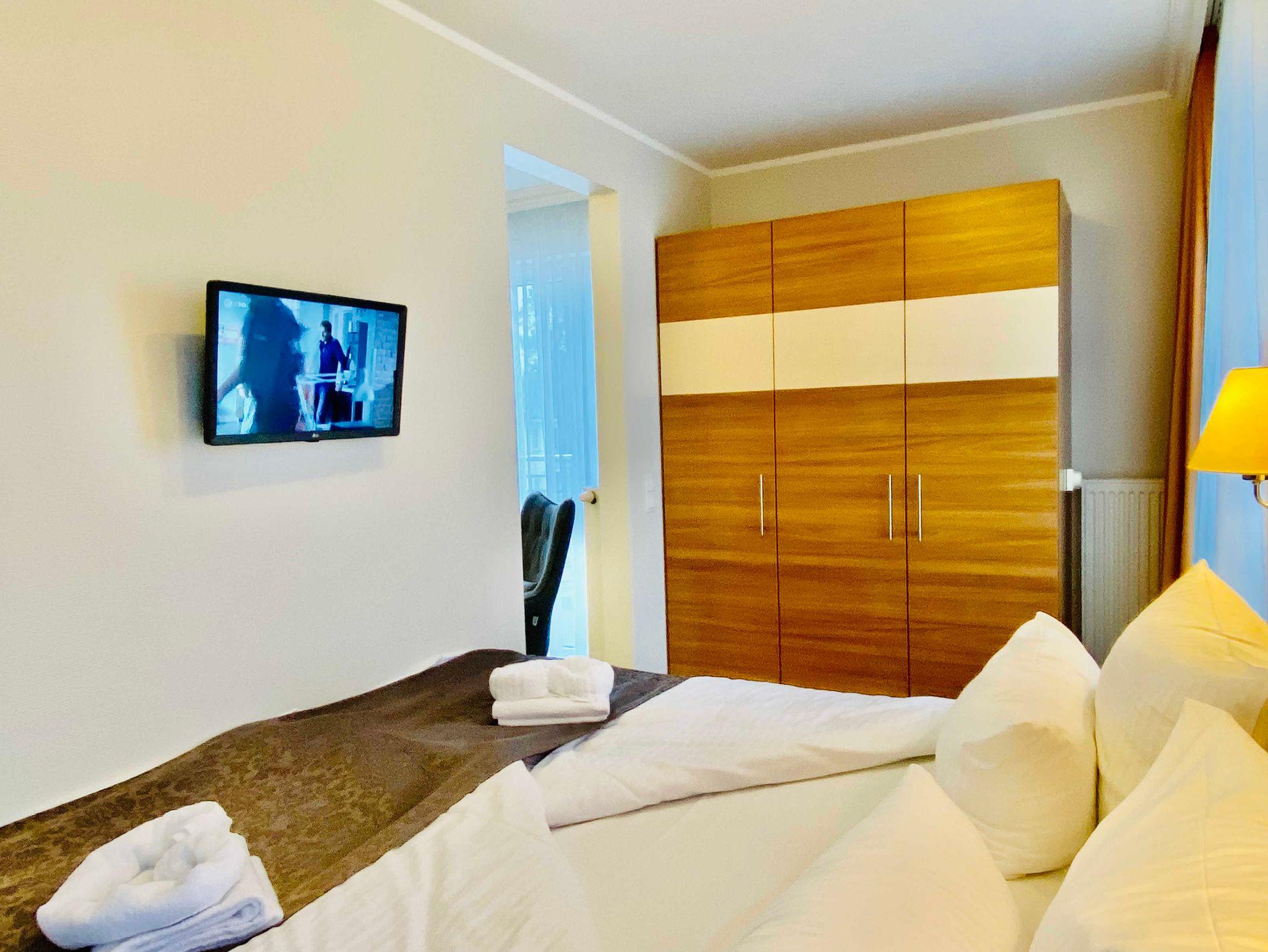 Stilvolle moderne Ferienwohnung mit ca. 39 qm. Aufbettung im Wohnzimmer über eine Schlafcouch bzw. Kinderbett im Schlafzimmer möglich ! Das Haus bietet die Möglichkeit Fahrräder unterzustellen. Waschmaschine und Trockner stehen Ihnen im Haus als Münzautomaten zur Verfügung! In dieser Wohnung sind Haustiere buchbar.