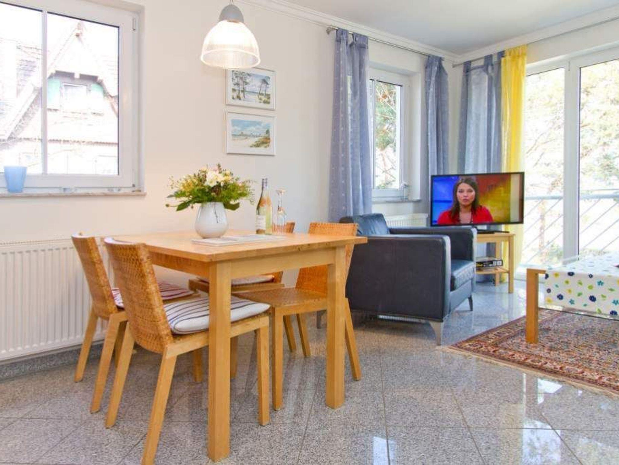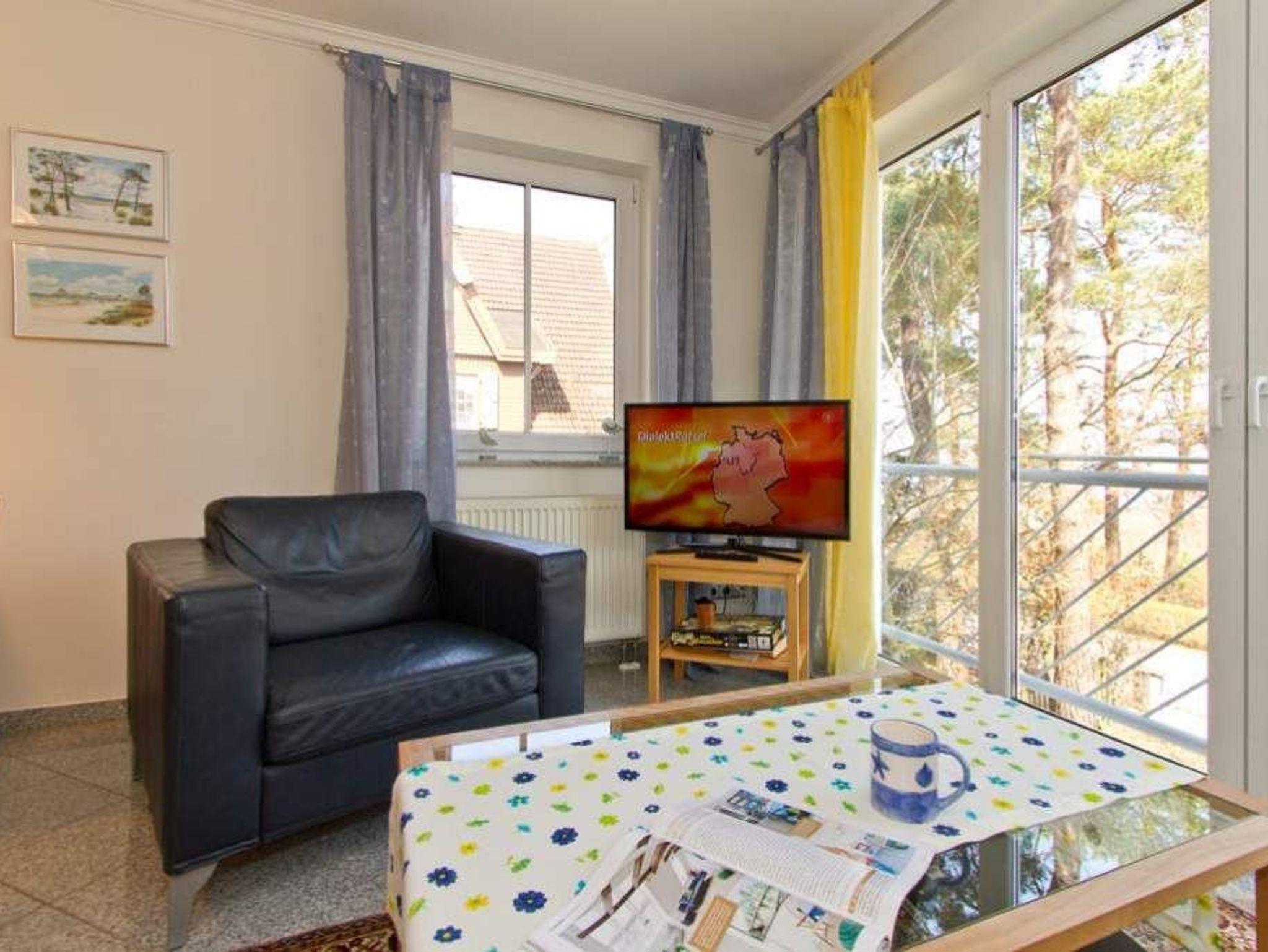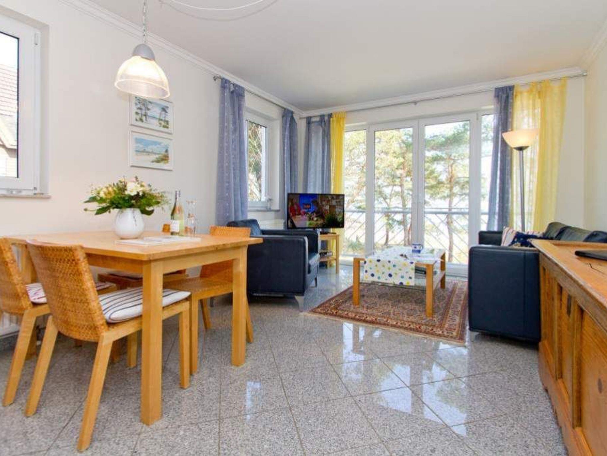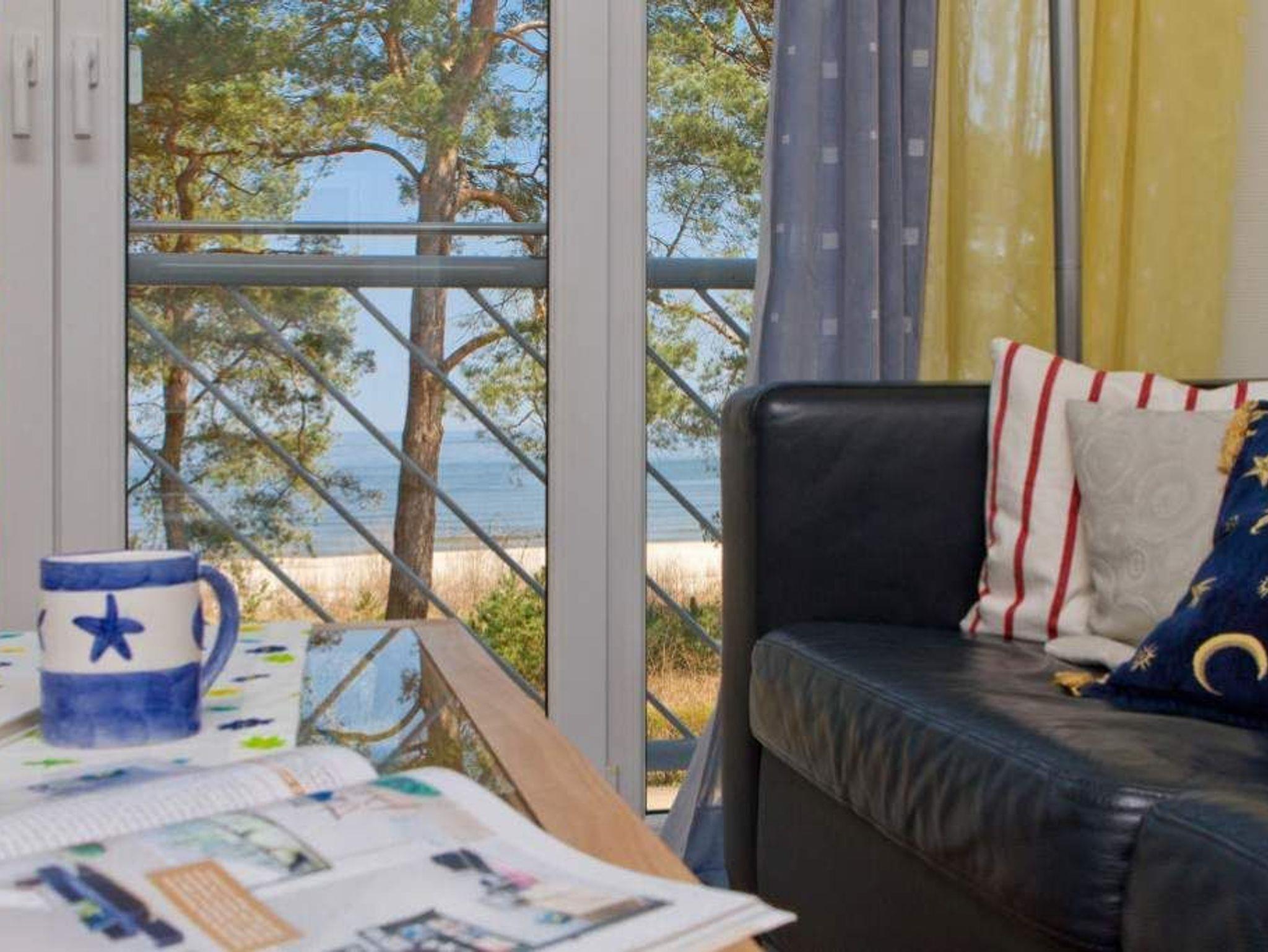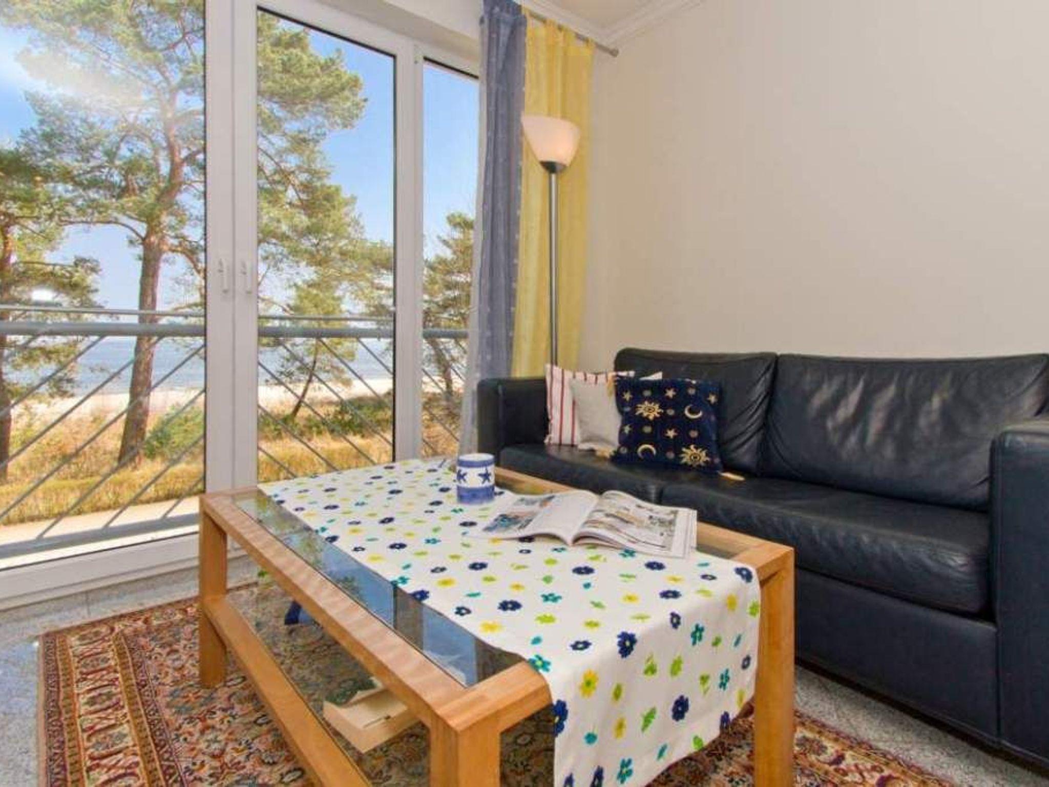 Diese modern und geschmackvoll eingerichtete Ferienwohnung im 1. Obergeschoss auf der Meerseite bietet einen direkten Blick auf die Ostsee. Vom Wohnzimmer und Schlafzimmer aus können Sie den Blick über das Wasser schweifen lassen und einfach abschalten. Das Bad ist mit Badewanne, Dusche, Waschtisch und WC ausgestattet, dazu gibt es ein separates Gäste-WC. Im Schlafzimmer finden Sie ein Doppelbett (1,80?m x 2,00?m) und einen Kleiderschrank. Ein zweiter Fernseher sorgt für zusätzlichen Komfort. Die Betten sind bei Anreise bezogen, Handtücher liegen in Erstausstattung bereit. Ein Stellplatz in der Tiefgarage ist inklusive.