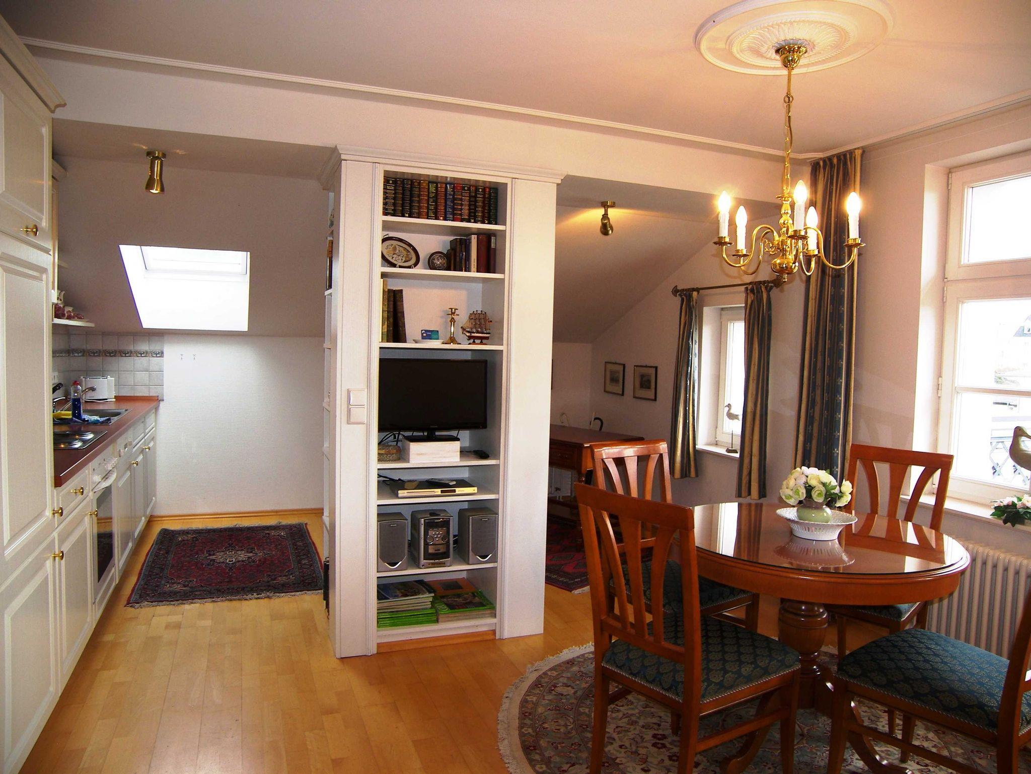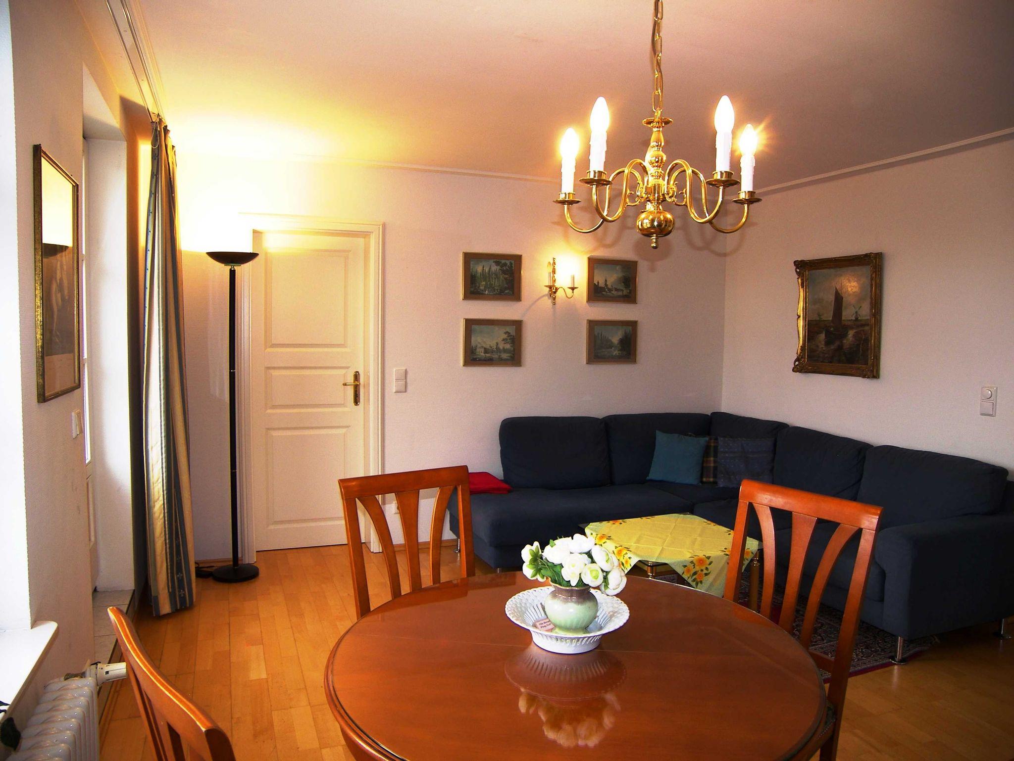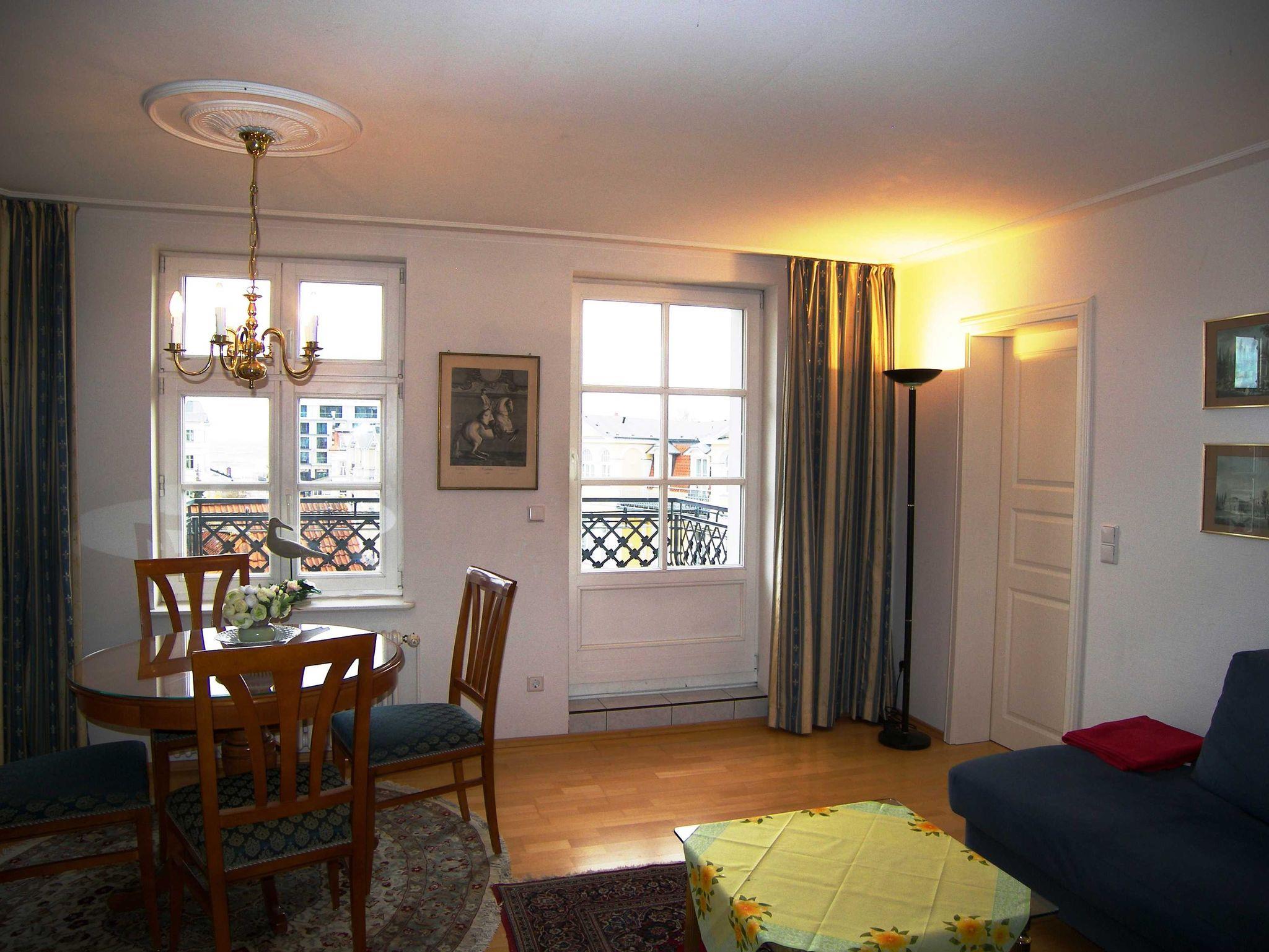 Die Wohnung ist exklusiv mit Stilmöbeln in Kirschbaum und Mahagoni, hochwertigem Bucheparkett, Stuckdecken und Kassettentüren eingerichtet. Der stillvolle Wohn- Essbereich ist mit einer Couch, Flachbild-TV und DVD-Player sowie einer Stereo-Anlage und Esstisch eingericht. Die offene Einbauküche ist mit Backofen, Spülmaschine, Kühlschrank mit Gefrierfach, Kaffeemaschine, Wasserkocher und Toaster ausgestattet. Das erste der beiden Schlafzimmer ist mit einem Doppelbett ausgestattet, das zweite mit zwei Einzelbetten. Im hochwertigen Bad mit Glasdusche müssen sie außerdem auf Haartrockner und Schminkspiegel nicht verzichten. Die Wohnung besitzt einen sonnigen Balkon mit entsprechenden Möbeln. W-LAN steht Ihnen kostenfrei zur Verfügung.
