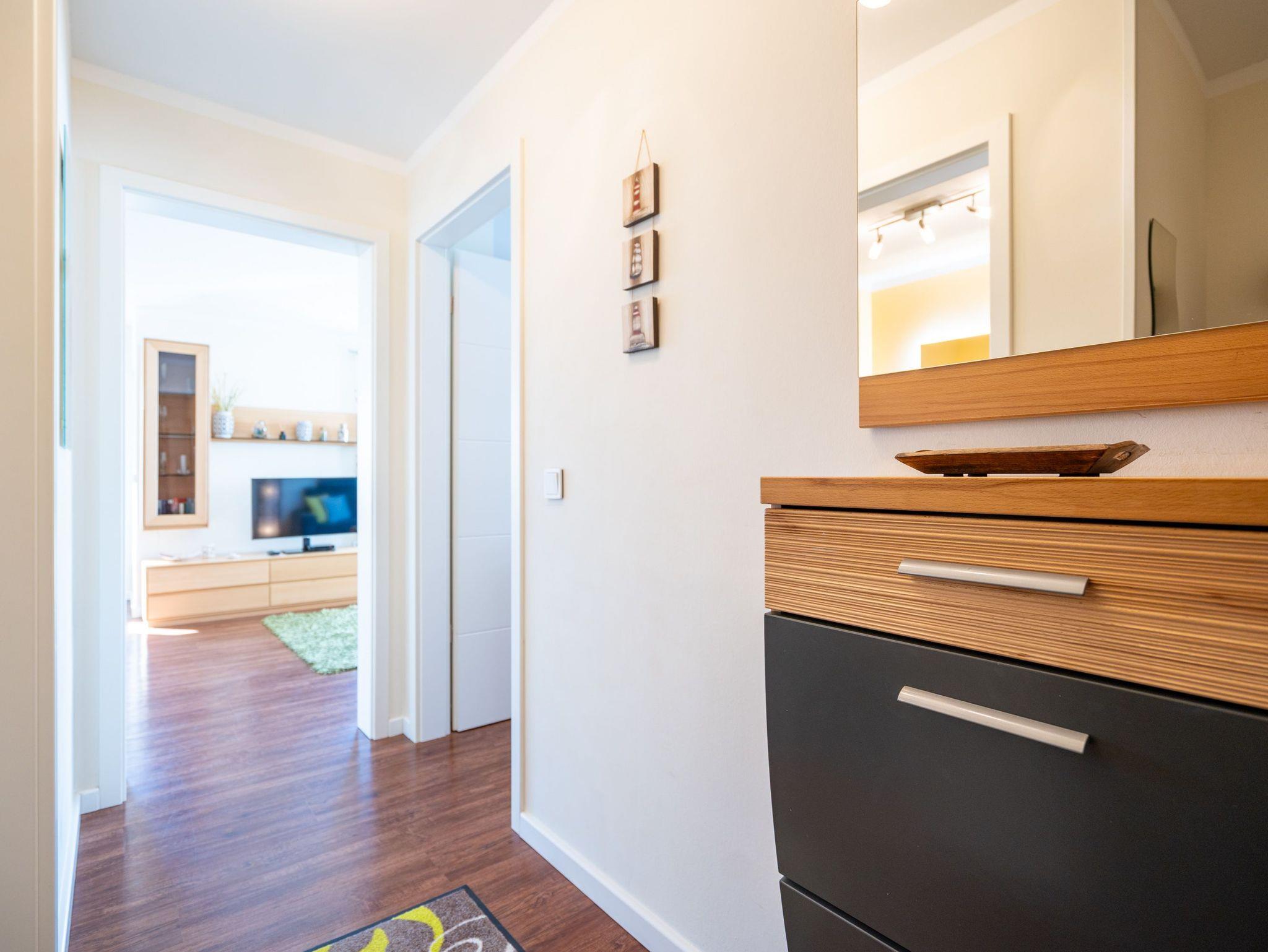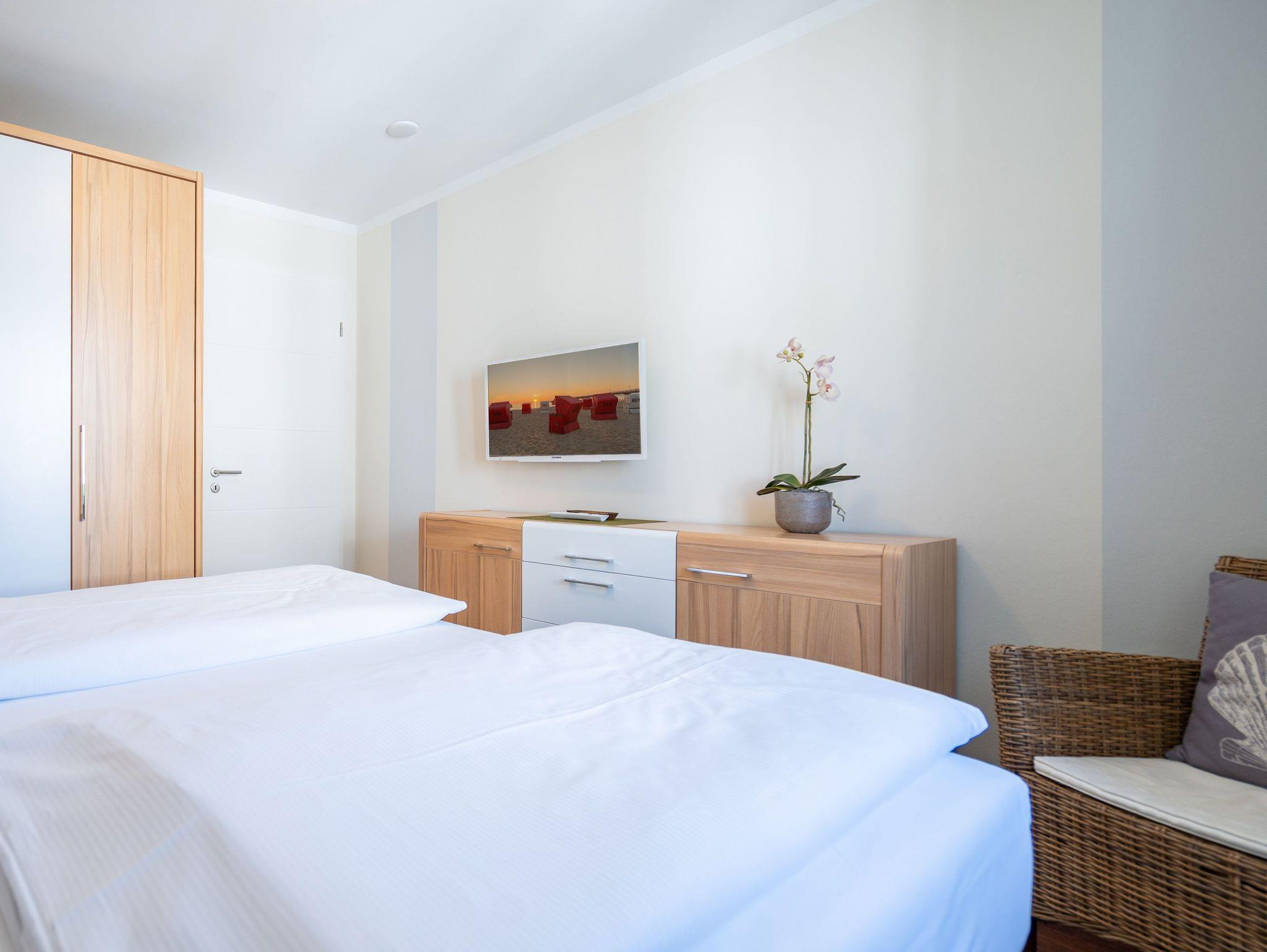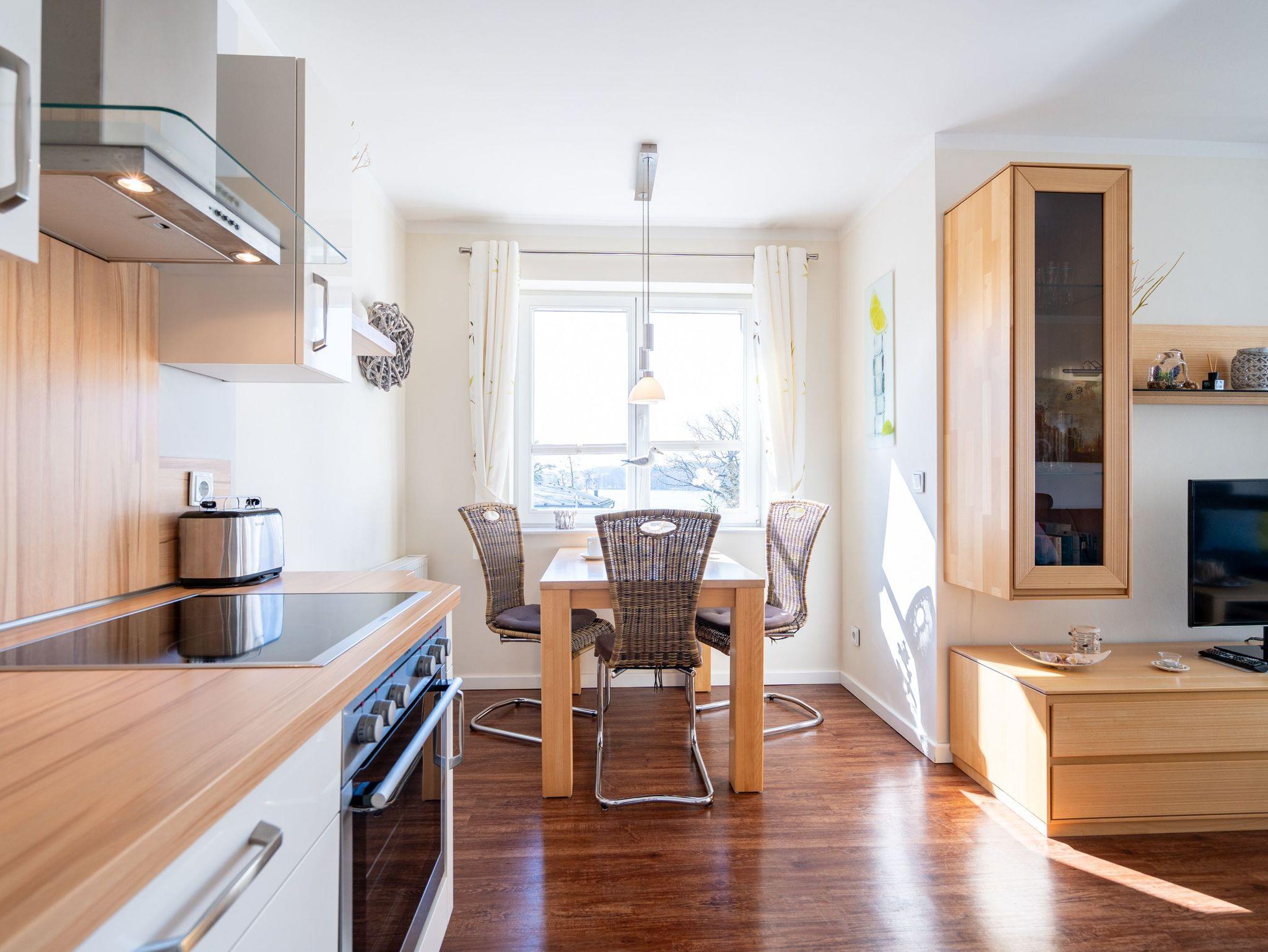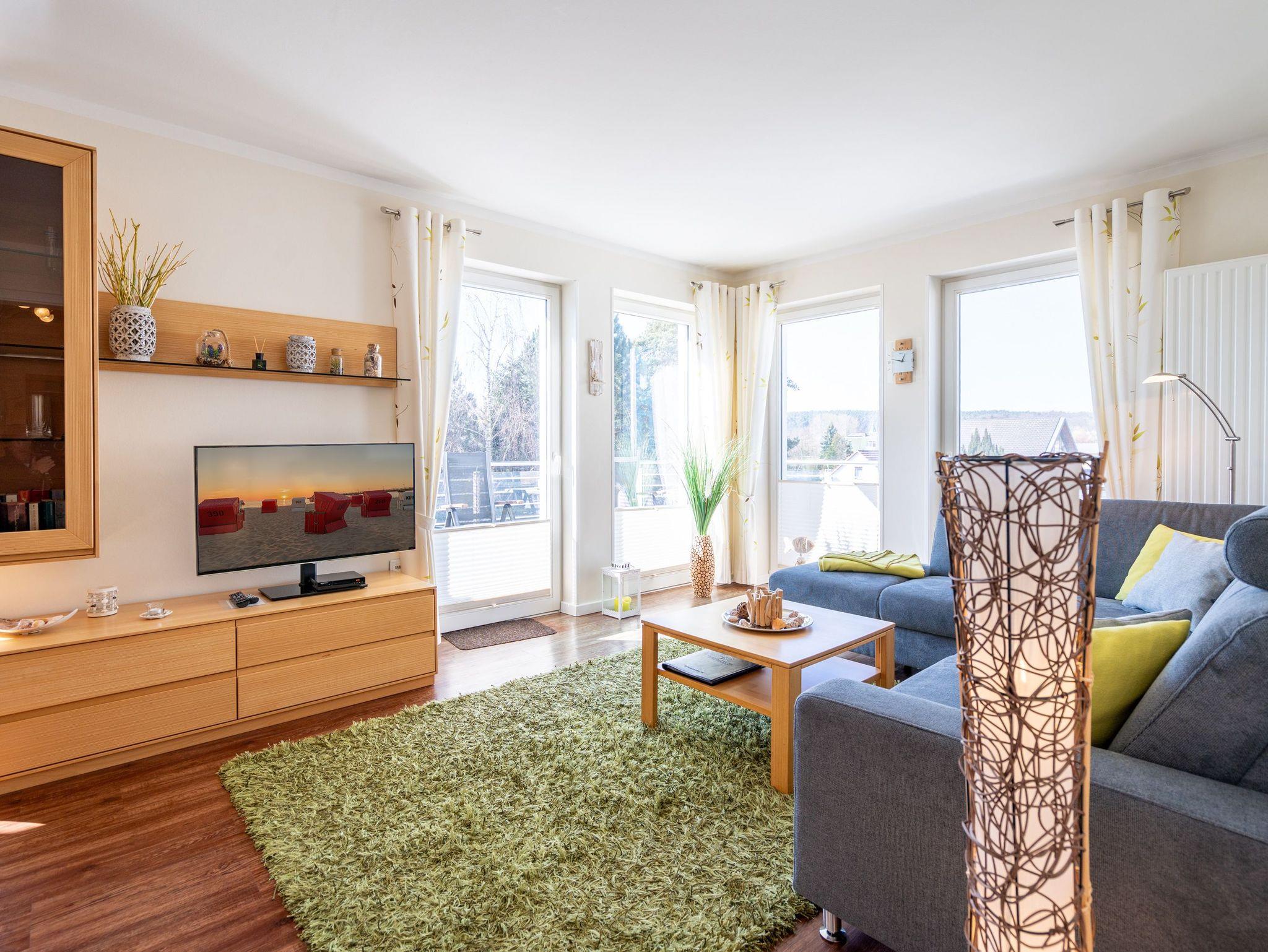 Im 2. Obergeschoss des Hauses Atlantic erwartet Sie eine stilvoll eingerichtete 2-Raum-Ferienwohnung mit 55 m² Wohnfläche ? perfekt für zwei Personen, die Erholung und Komfort suchen. Die geschmackvolle Einrichtung, harmonisch abgestimmte Farben und fein aufeinander abgestimmte Stoffe schaffen eine behagliche Atmosphäre, in der Sie den Alltag schnell hinter sich lassen. Der lichtdurchflutete Wohnbereich lädt mit einer bequemen Sitzgruppe und einem modernen Flat-TV zum Verweilen ein. Direkt angrenzend befindet sich die voll ausgestattete Küchenzeile mit einem gemütlichen Essplatz ? ideal für genussvolle Stunden zu zweit. Das Schlafzimmer bietet erholsamen Schlaf im luxuriösen Boxspringbett und verfügt zusätzlich über einen zweiten Fernseher. Im eleganten Badezimmer erwarten Sie eine Regendusche und ein WC, die Ihren Komfort abrunden. Besonderes Highlight ist der großzügige Südwest-Balkon mit Blick auf den idyllischen Schloonsee. Durch die Häuserzeilen können Sie ein Teil der Ostsee sehen. Auf dem Balkon können Sie die Sonnenstrahlen der Insel Usedom genießen und die Seele baumeln lassen. Für Ihr Wohlbefinden ist ebenfalls gesorgt: Bei Ihrer Anreise sind die Betten bereits bezogen, und eine Erstausstattung an Handtüchern liegt für Sie bereit. Ein Pkw-Stellplatz in der Tiefgarage sowie kostenfreies WLAN runden das Angebot ab und machen Ihren Aufenthalt rundum angenehm.