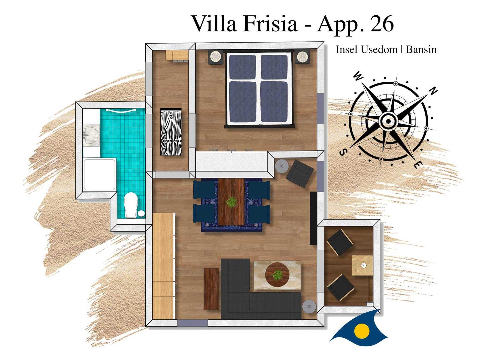 Die Villa Frisia reiht sich mitten im Zentrum in die glanzvollen Villen des Seeheilbades Bansin ein. Sie ist nur wenige Schritte vom Strand, der schönen Promenade und dem Zentrum mit kleinen Geschäften und Restaurants entfernt.