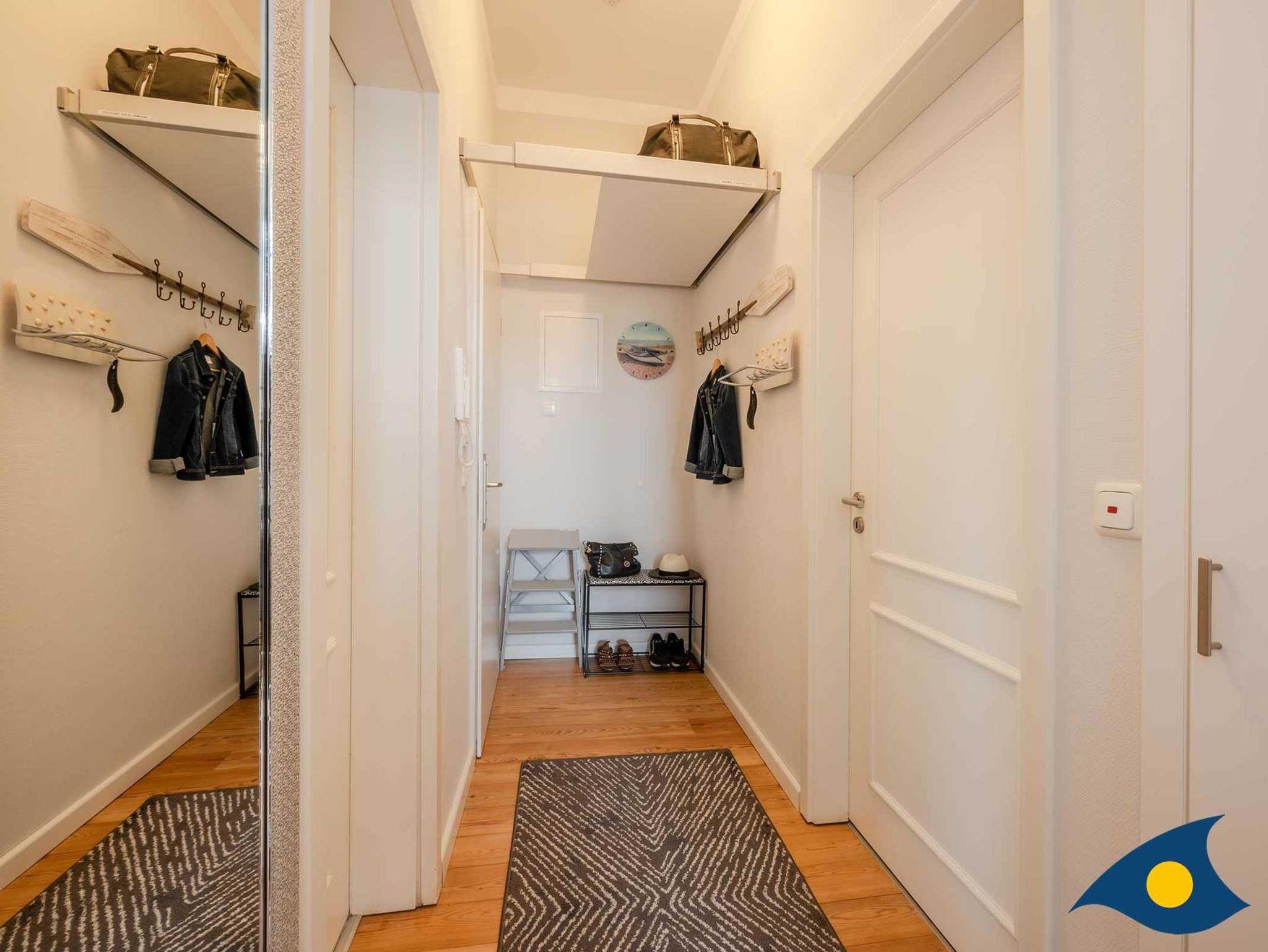 Flur: Kofferablage, Schuhregal, Garderobenhakenleiste