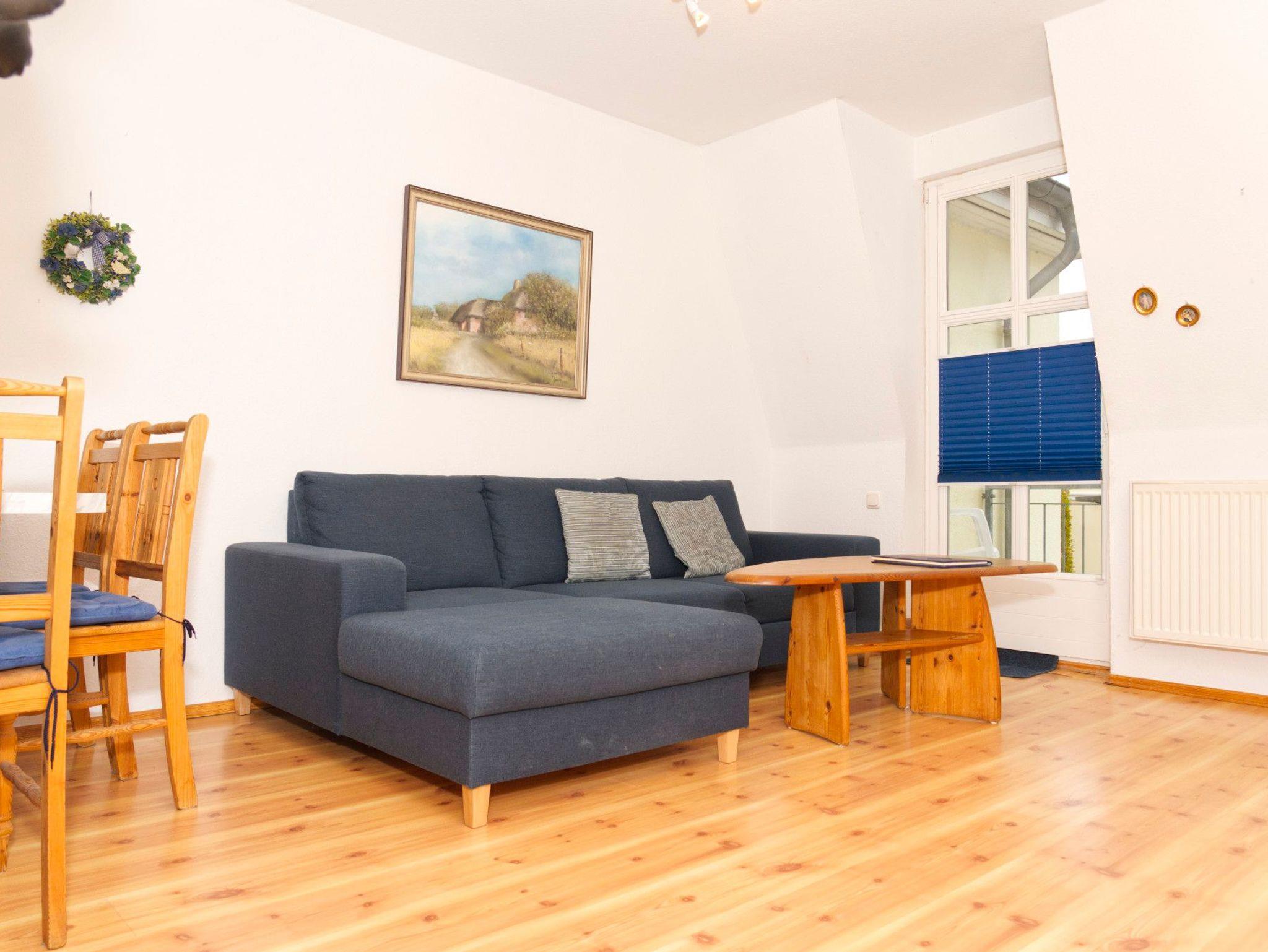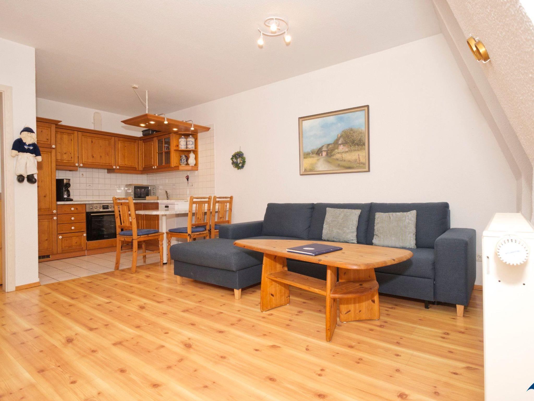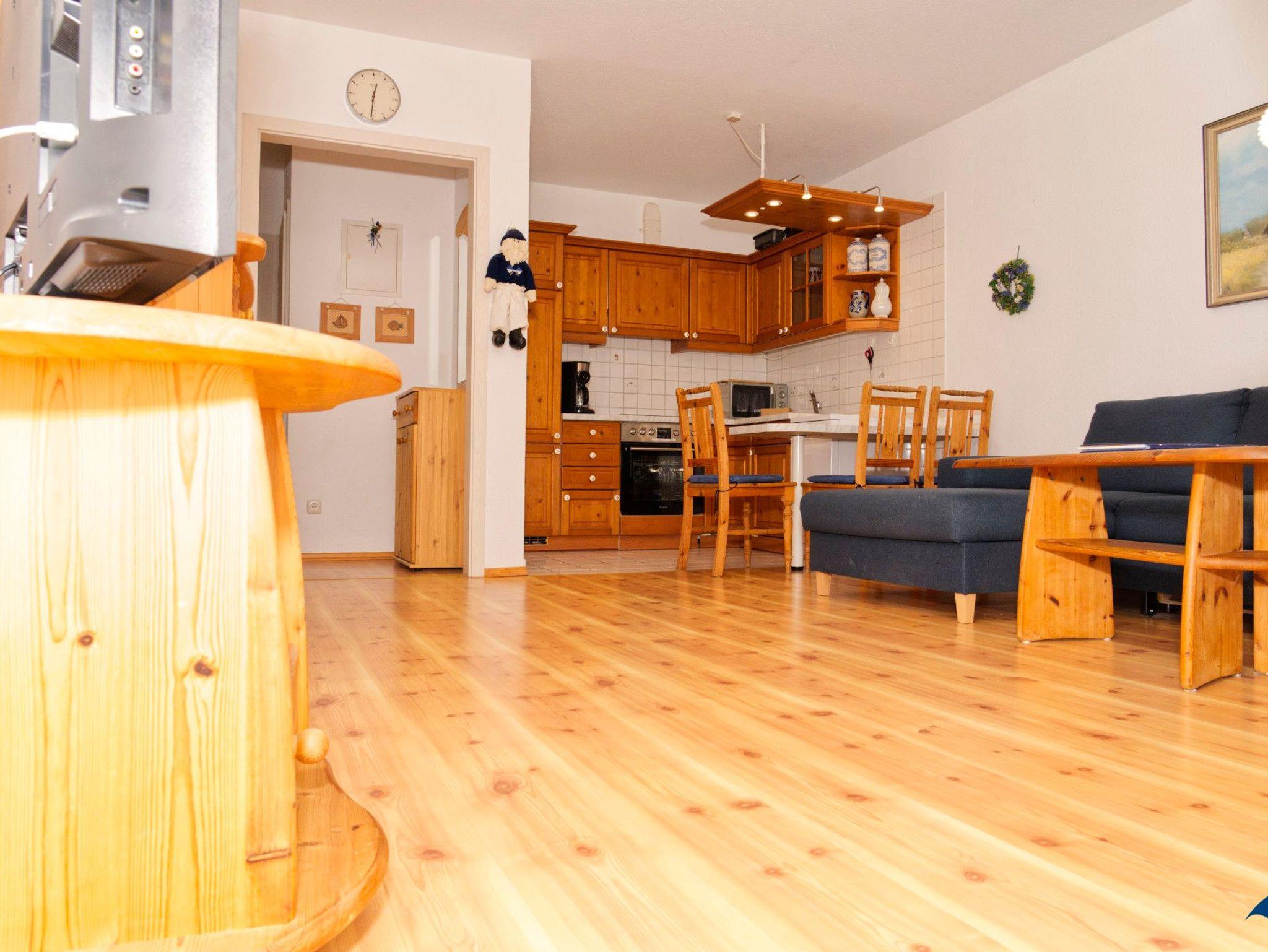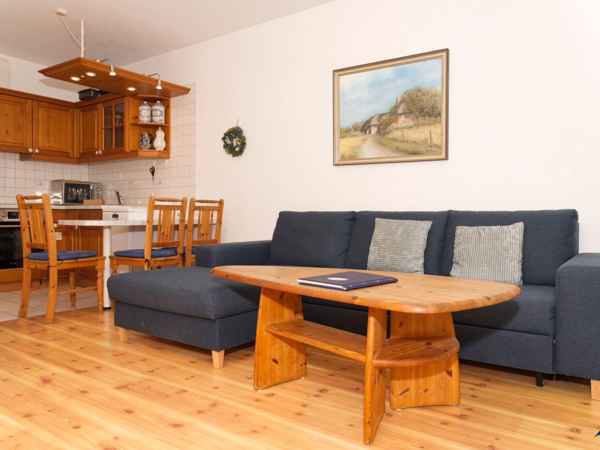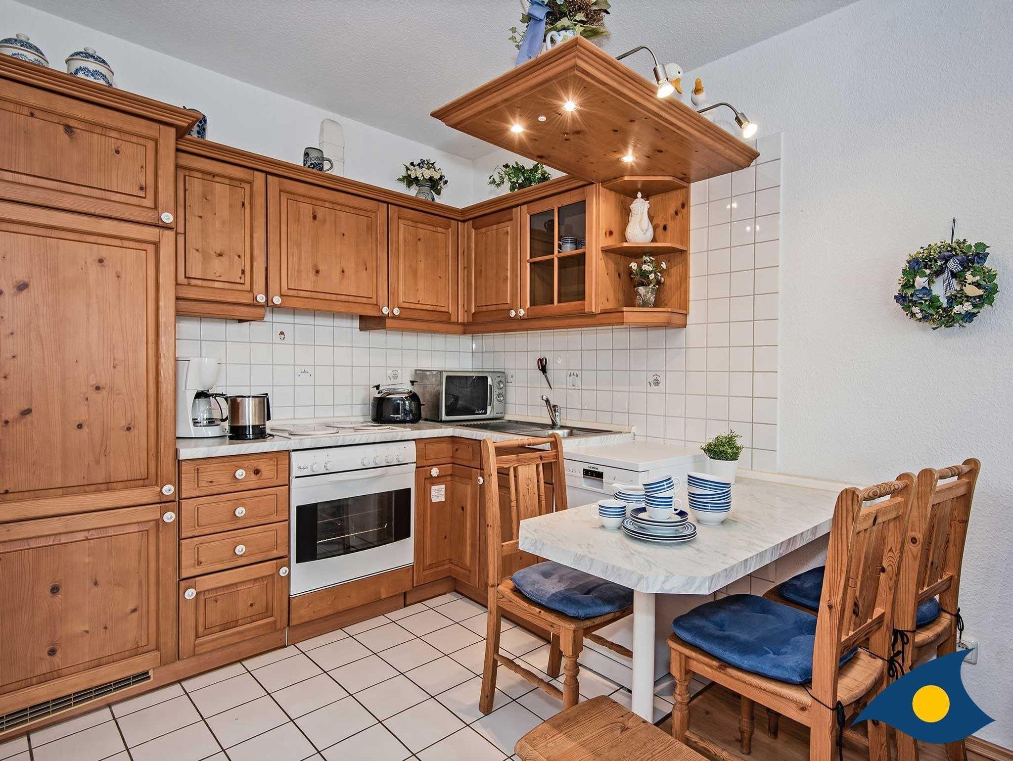 Die vollständig eingerichtete Landhaus-Küche ist mit einem 4-Plattenherd incl. Backofen sowie Spülmaschine ausgestattet. Die Schlafcouch im Wohnzimmer kann für eine dritte Person aufgebettet werden.