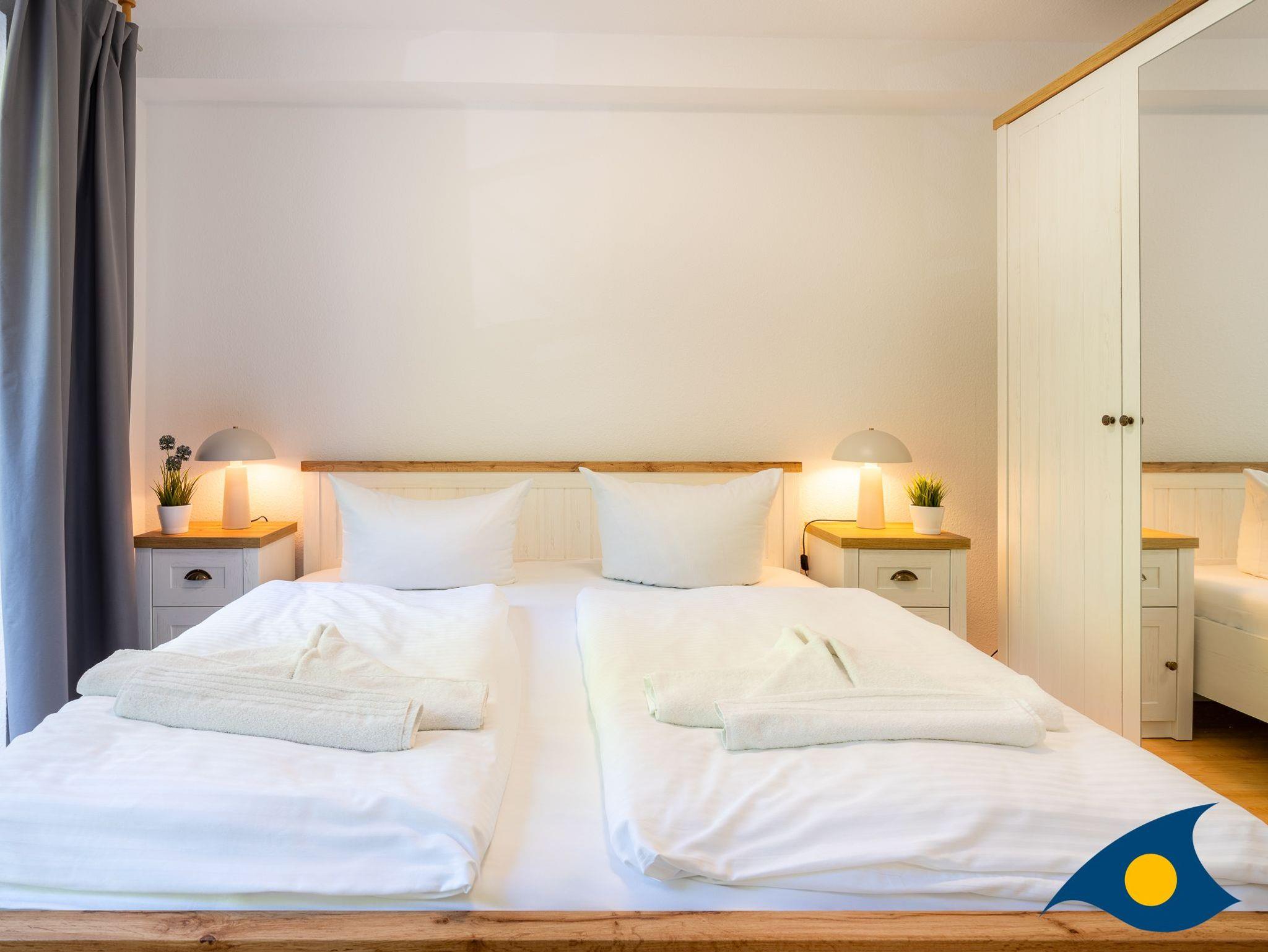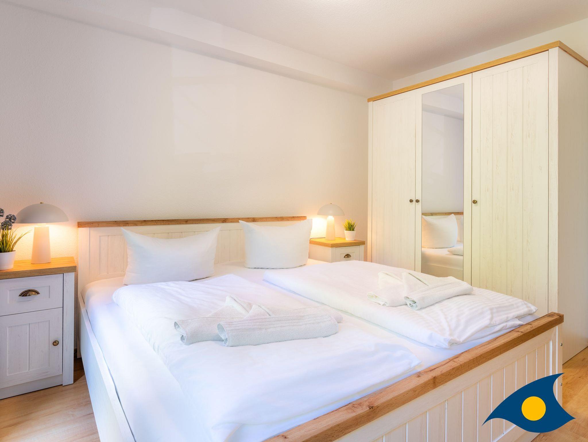 Dieses maritim eingerichtete Appartement empfängt Sie mit einem gemütlichen Wohnzimmer, einem Schlafzimmer mit einem bequemen Doppelbett, einem Badezimmer mit WC und Dusche und einer separaten Küche. Durch das Gäste-WC, dem großen Esstisch under der komfortablen Schlafcouch im Wohnbereich bietet diese schöne Ferienwohnung die besten Voraussetzungen für einen Urlaub mit der Familie oder Freunden (max. 4 Personen). Das Highlight der Wohnung ist der ca. 18 qm große Südbalkon. Durch die maritimen Details und den ausgewählten Einrichtungsgegenständen, werden Sie sich in dem Appartement 18 sehr schnell zu Hause fühlen.