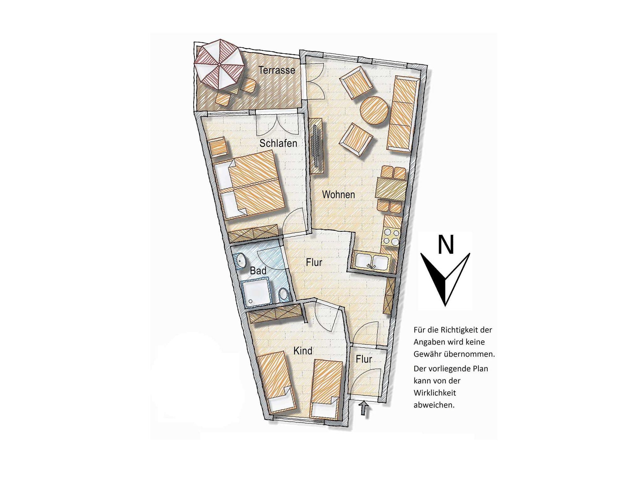 Die 60 qm große Nichtraucher-Ferienwohnung befindet sich im Erdgeschoss im Haus 11. Sie ist mit 4 Sternen ausgezeichnet.