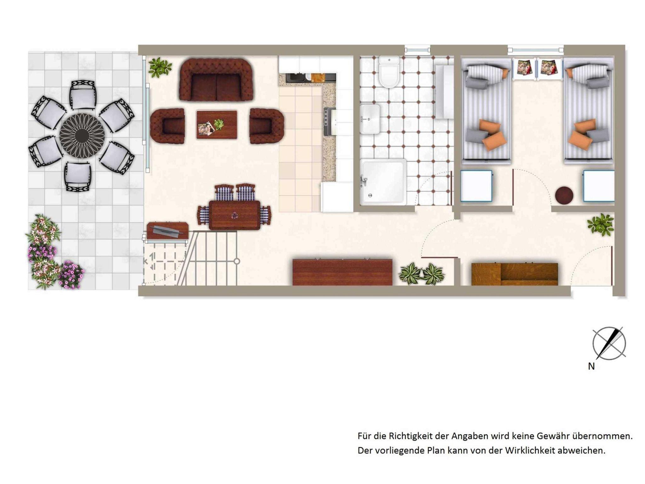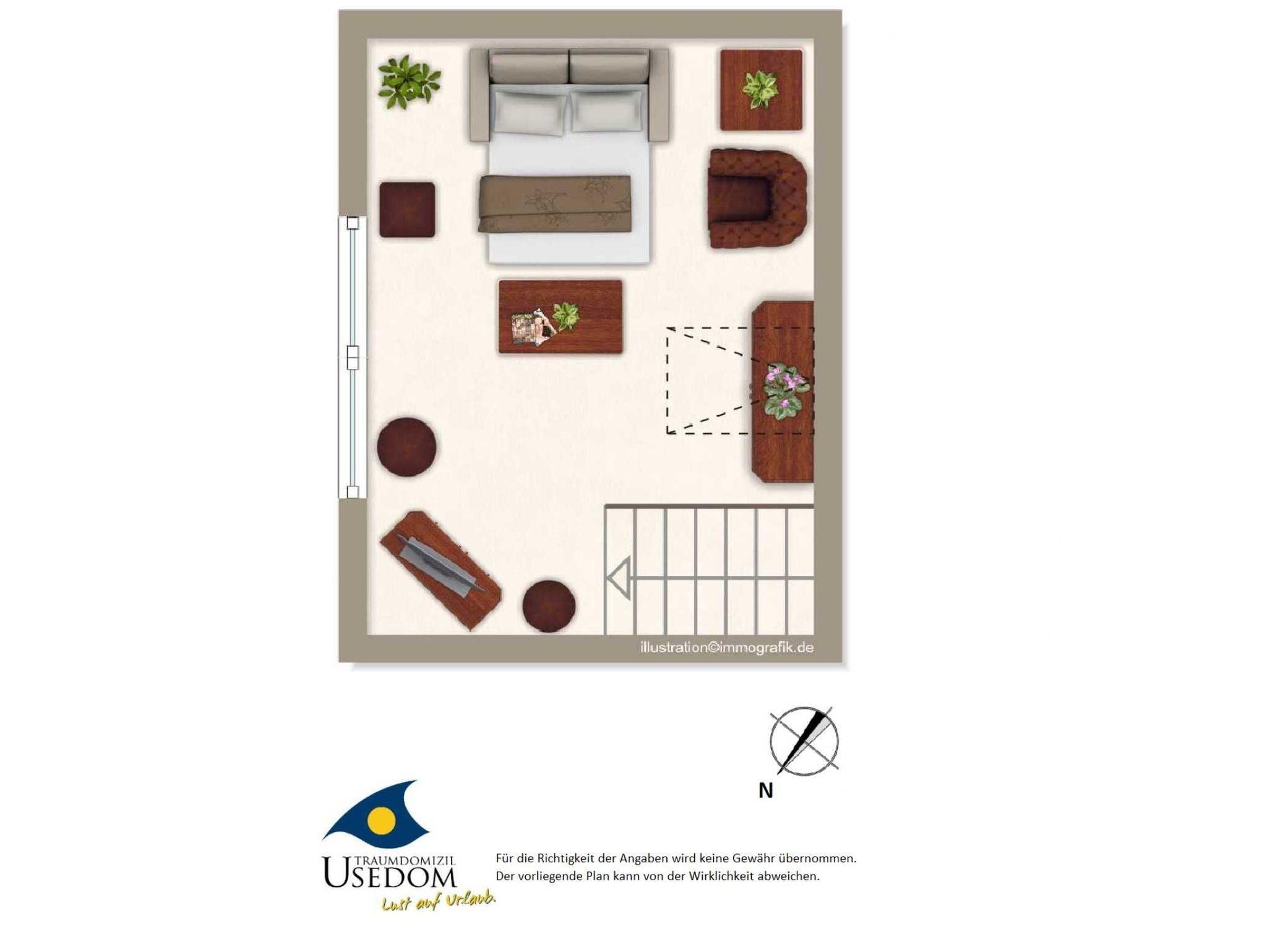 Im Schlafzimmer stehen die Betten getrennt. In das offene Turmzimmer gelangen Sie über eine Treppe. Hier finden Sie eine Schlafcouch für die dritte und vierte Person und einen Schreibtisch. 2 Fernseher sind in der Wohnung vorhanden. Genießen Sie die fantastische Rundumsicht auf Meer, Strand und Promenade.