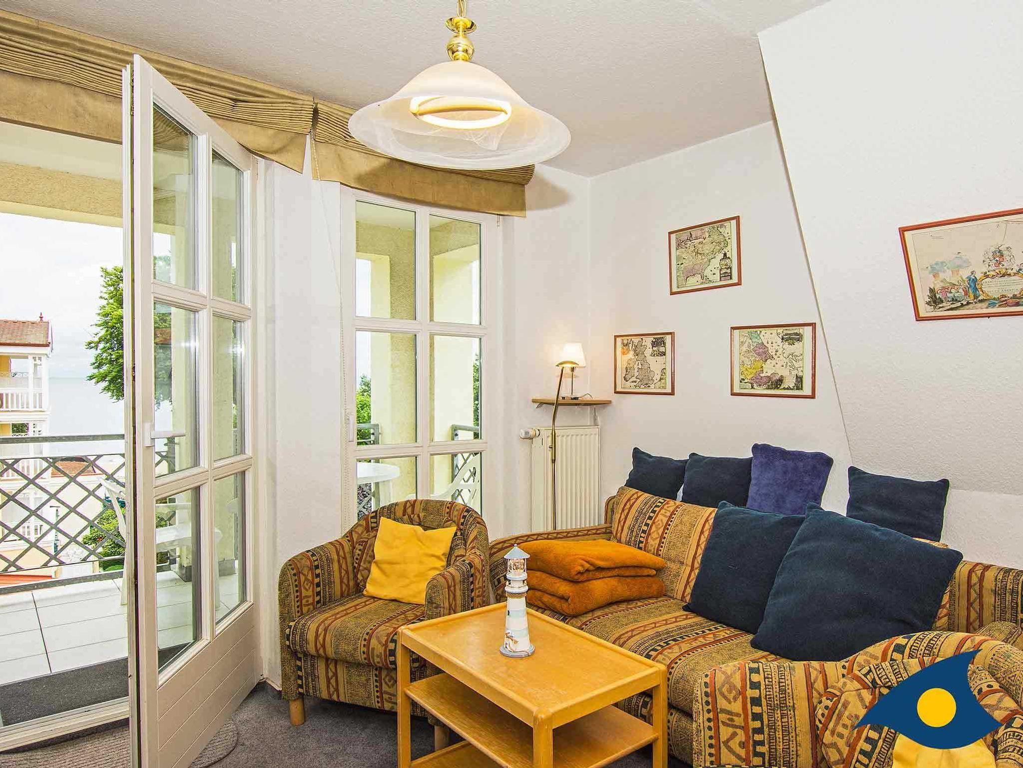 Zu diesem modern und liebevoll eingerichteten Zweiraumappartement gehört ein Balkon, der reizvolle Ausblicke auf das Meer und die nahe Seebrücke bietet.