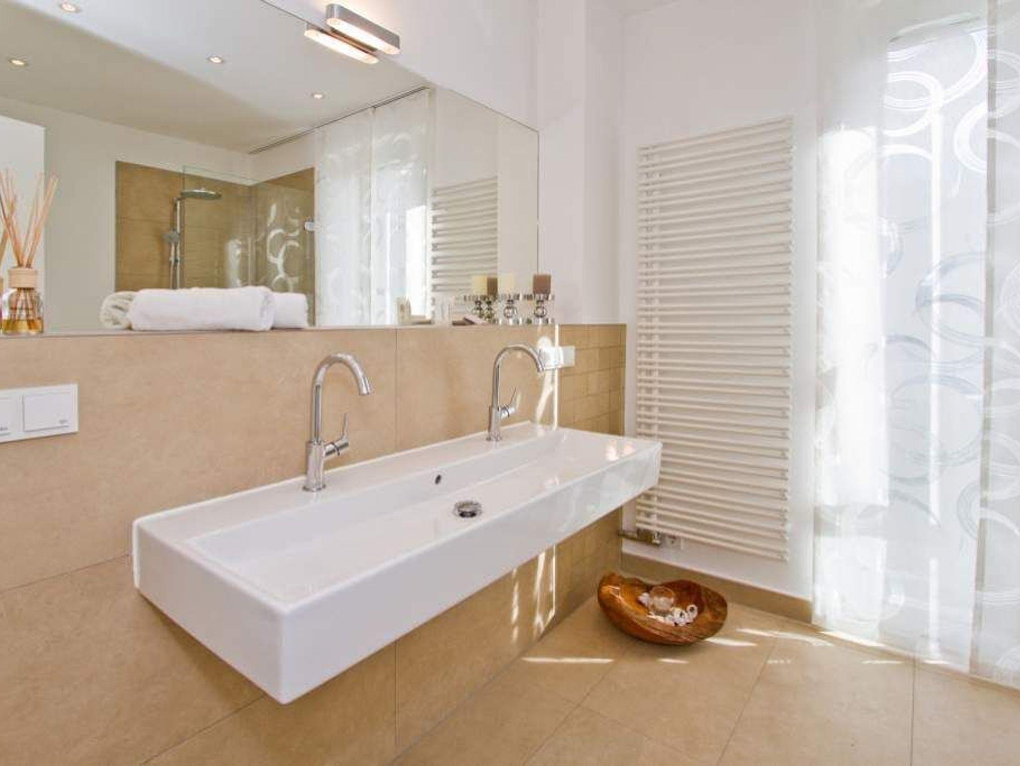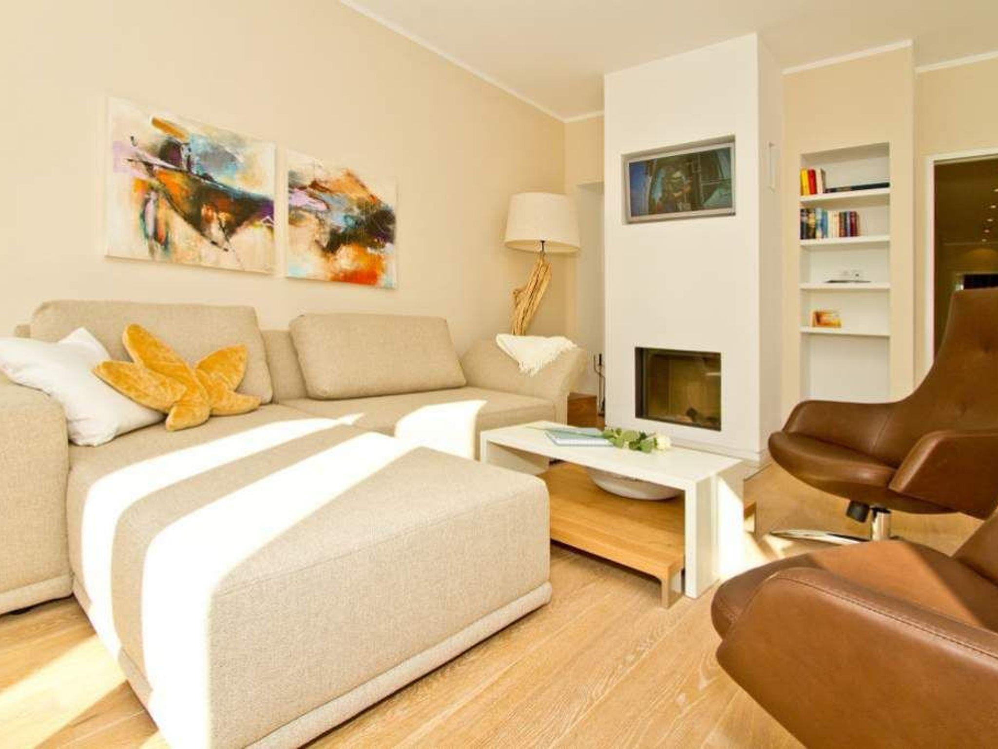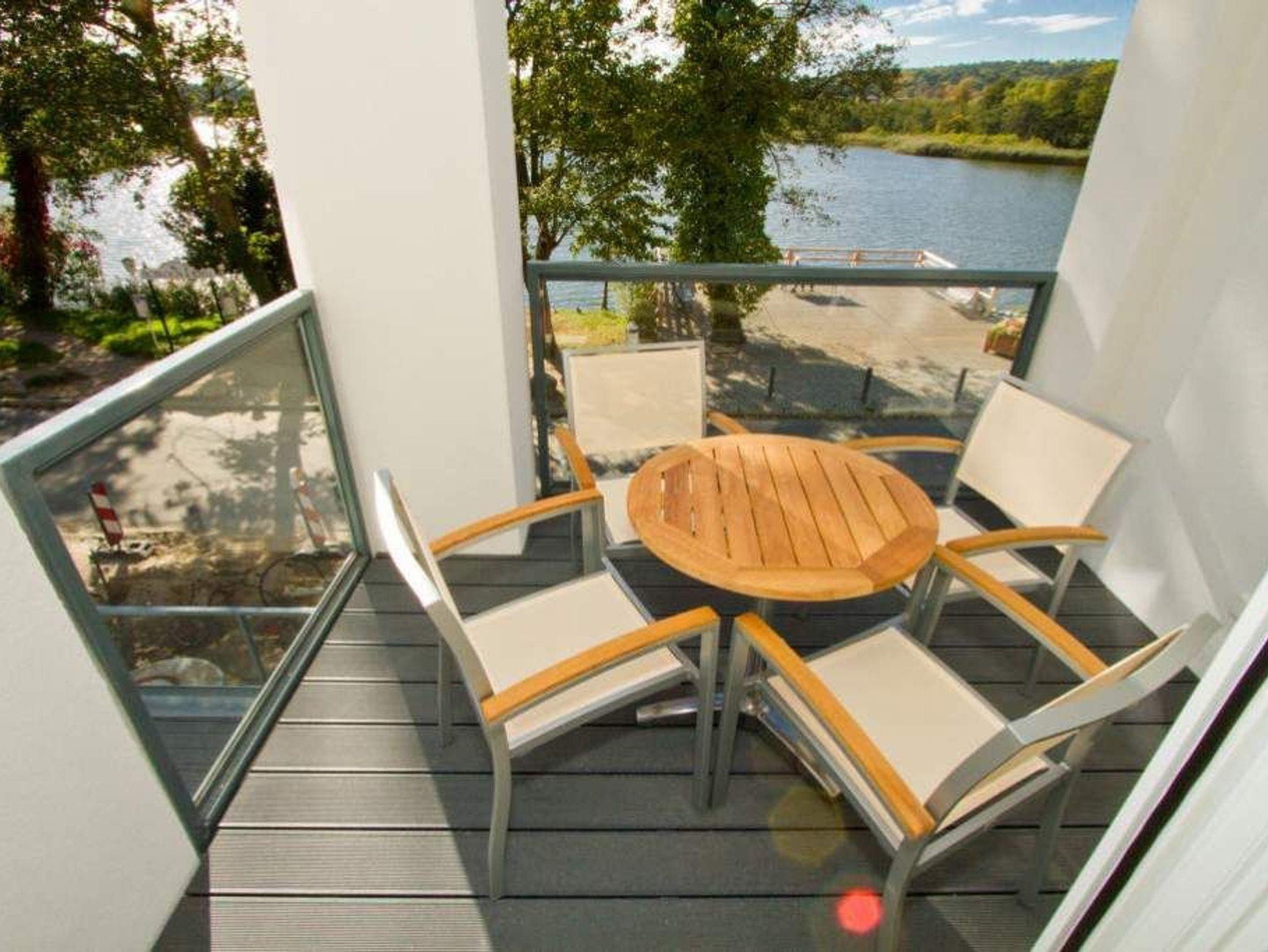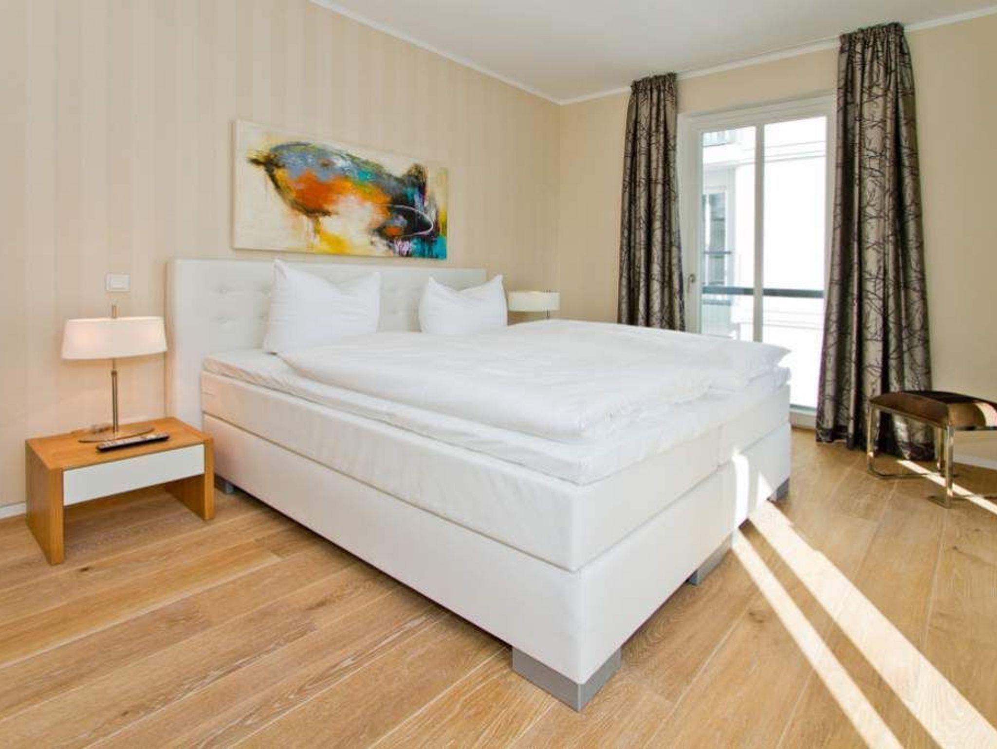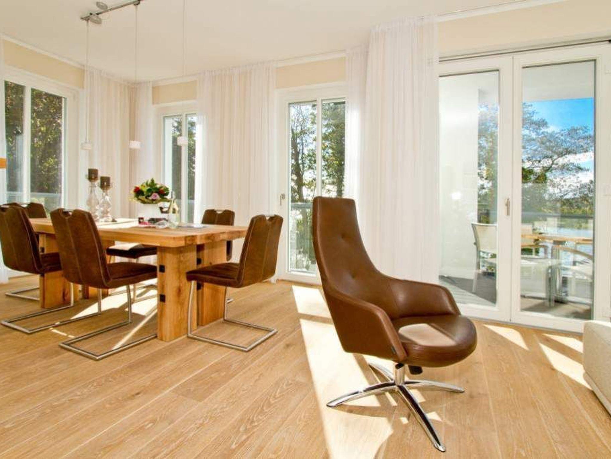 In dieser großzügigen 3-Raum-Ferienwohnung im 1. Obergeschoss werden Sie sich von Beginn an wie zu Hause fühlen. Die, von einer namenhaften Innenarchitektin designten 120 qm Wohnfläche bieten Platz für 4 Erwachsene und 1 Kleinkind (bis 3 Jahre im Kinderreisebett). Bei der Gestaltung wurde Wert auf Stil, Wertigkeit aber auch auf Leichtigkeit gesetzt. Entstanden ist ein lichtdurchflutetes Domizil, das auch noch einen wunderschönen Blick auf den Schloonsee bietet. Der Wohnbereich mit integrierter, komplett ausgestatteter, offener Küche bietet auch eine bequeme Sitzgruppe vor dem Kamin. Ein großer Holzesstisch wird sicher nicht nur zum Frühstück Ihr Lieblingsplatz. Zwei großzügige Schlafzimmer mit Boxspring-Doppelbetten und jeweils eigenem TV erwarten Sie. Ein Schlafzimmer nutzt ein Bad en Suite mit Dusche, Badewanne und abgeteiltem WC. Im zweiten Duschbad wurde die Sauna integriert, ein tolles Highlight, nicht nur in der kalten Jahreszeit. Besonders schön sind auch die beiden Balkone (1x Ostseite / 1x geschützte [&] sonnige Südseite), die mit Seeblick auf den schönen Schloonsee aufwarten. Für Ihren Komfort können sie eine Waschmaschine nutzen, weiterhin steht die Erstausstattung Wäsche für Sie bereit. Für die Kleinen können ein Kinderreisebett [&] ein Kinderhochstuhl (gegen Aufpreis) dazu gebucht werden. Das Wlan-Netz in der Wohnung ist kostenfrei nutzbar.