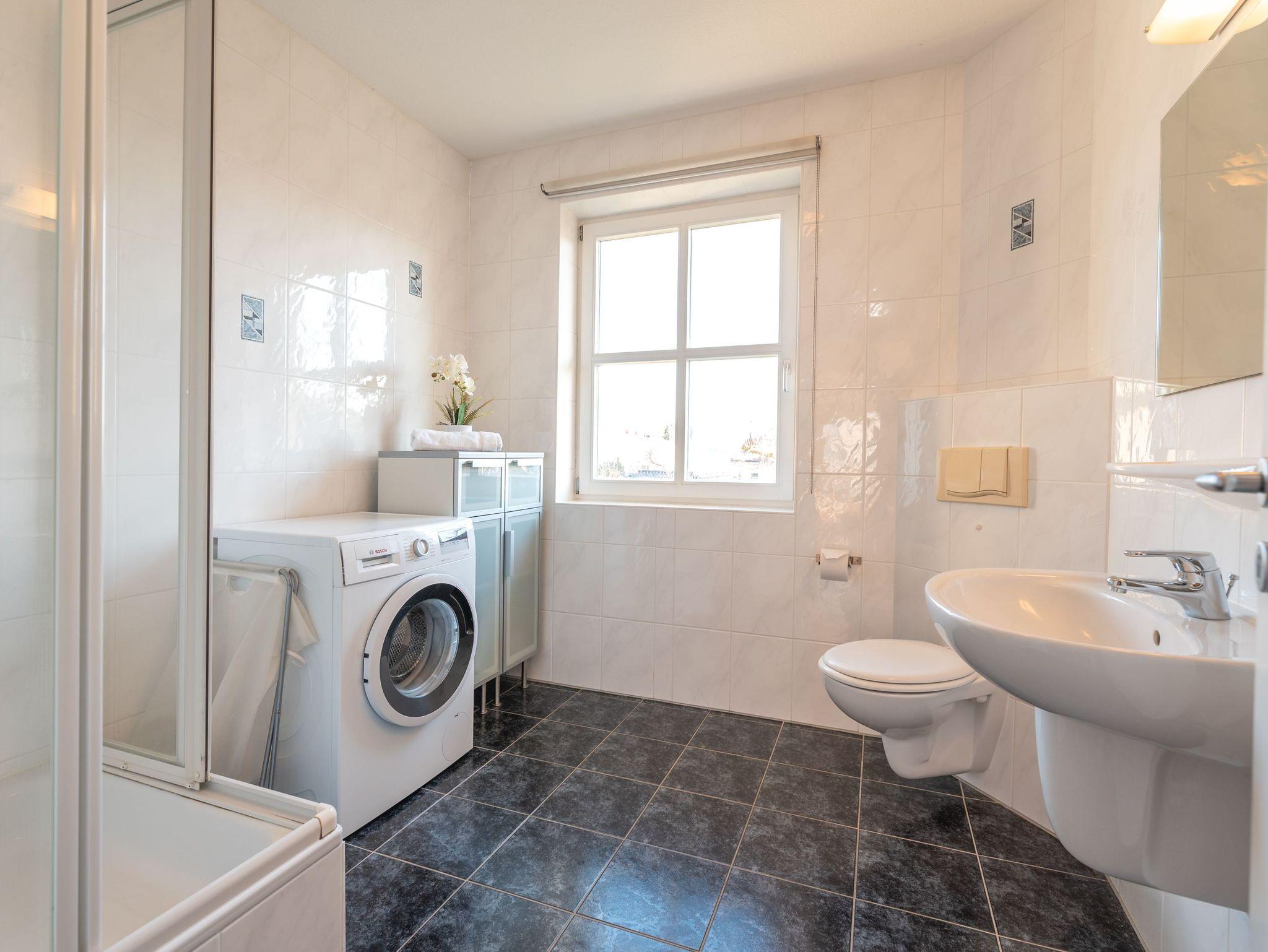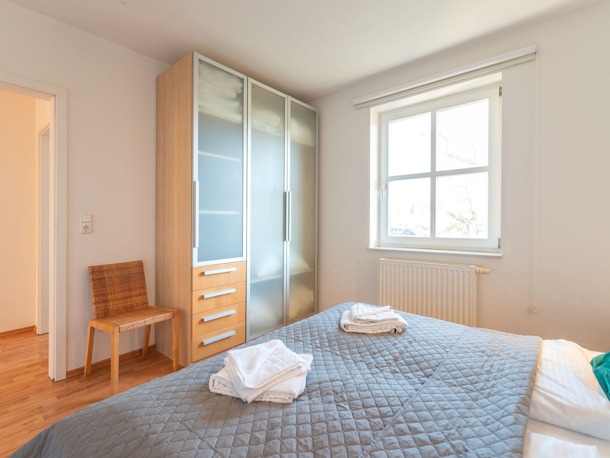 Das Hauptschlafzimmer verfügt über ein bequemes Doppelbett, während das zweite Schlafzimmer mit zwei Einzelbetten ideal für Kinder oder Freunde ist. Das helle Tageslichtbad ist mit einer Dusche und einer Waschmaschine ausgestattet ? praktisch für längere Aufenthalte.
