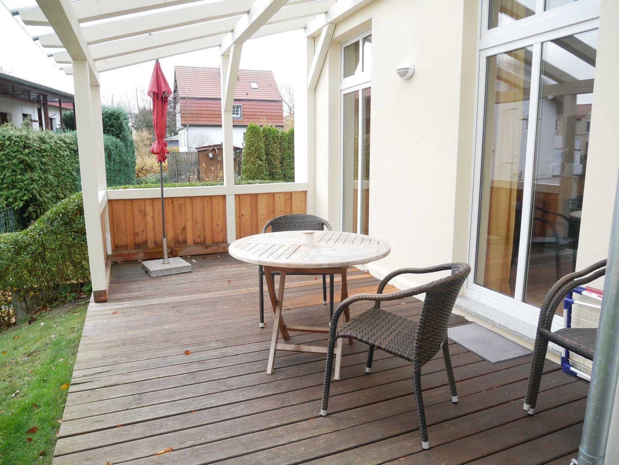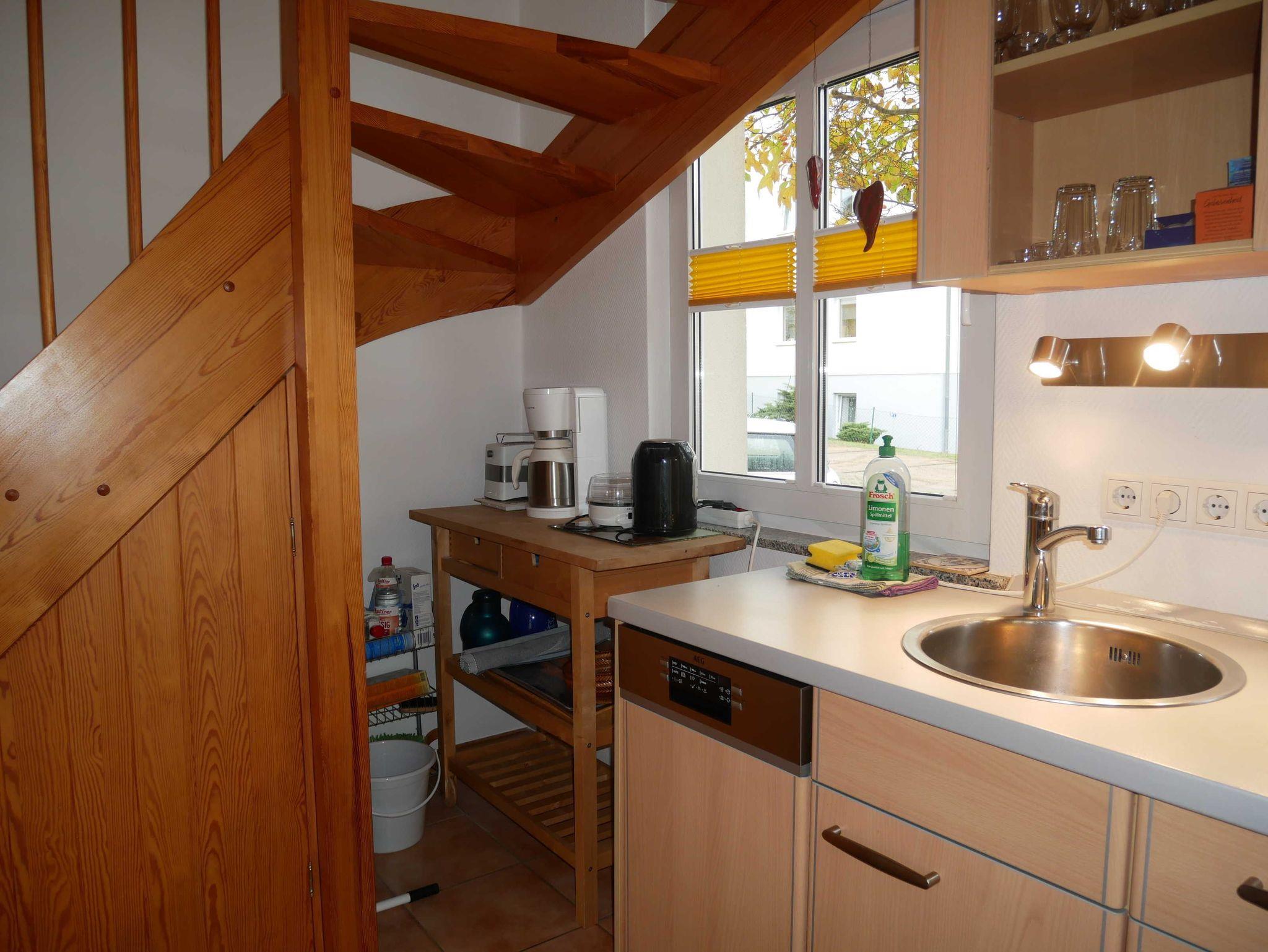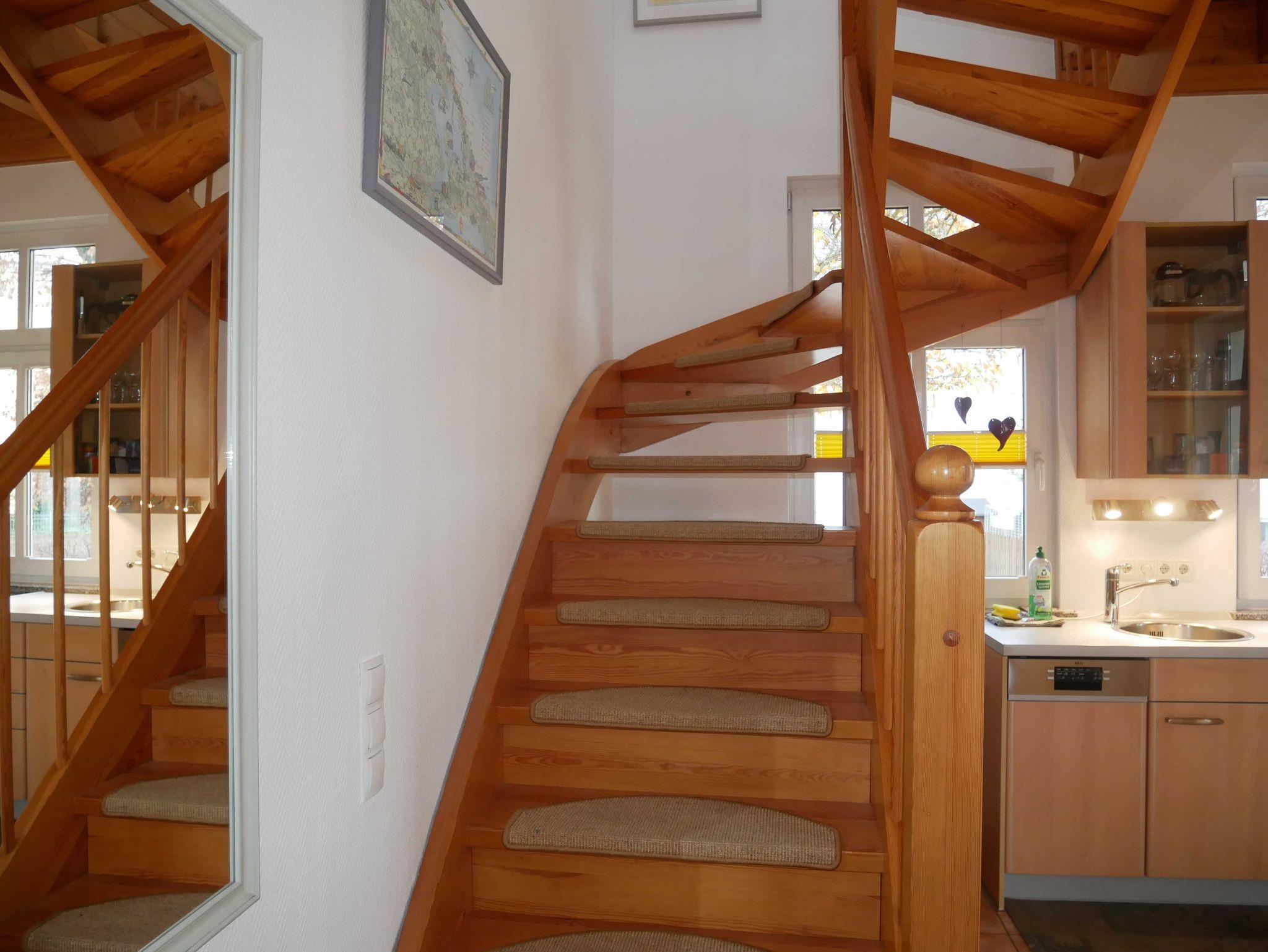Für die schönsten Tage im Jahr bieten wir Ihnen unsere ansprechende Ferienwohnung mit modernem Komfort und Platz für bis zu 4 Personen. Die individuell ausgestattete 3 Raum Ferienwohnung (59 qm) in der Dependance (Ostseevilla Gartenhaus; links) geht über zwei Etagen (Eingang Erdgeschoß, über Treppe ins 1. Obergeschoß, die Treppe ist mit einem Treppenschutzgitter gesichert) und verfügt über einen separaten Eingang.