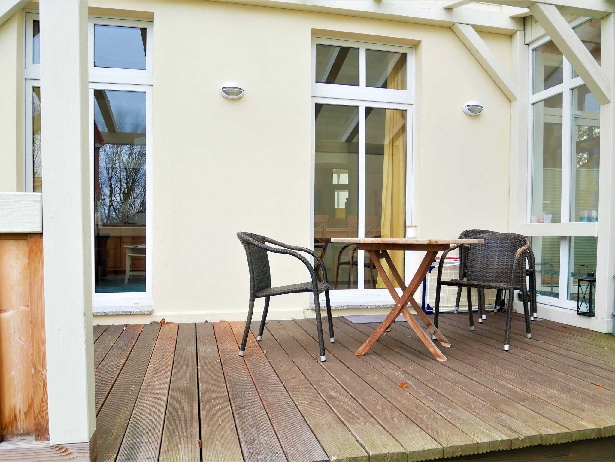 Der Kamin lädt zu gemütlichen Abenden im Spätherbst oder Winter ein. Bei Bedarf sorgt die Musikanlage oder der Fernseher mit DVD-Player für Unterhaltung. Eine Auswahl an Büchern und Gesellschaftsspielen ist ebenfalls vorhanden. Im Frühling und Sommer fühlen Sie sich auf der teilweise verglasten Südterrasse ganz wie zu Hause und genießen zum Frühstück die beim nahegelegenen Bäcker erhaltenen Brötchen. Wer mittags oder abends keine Lust hat, Essen zu gehen, bekocht sich selbst in der gut ausgestatteten Küche. Den späteren Abwasch nimmt Ihnen die eingebaute Spülmaschine ab schließlich sind Sie im Urlaub.