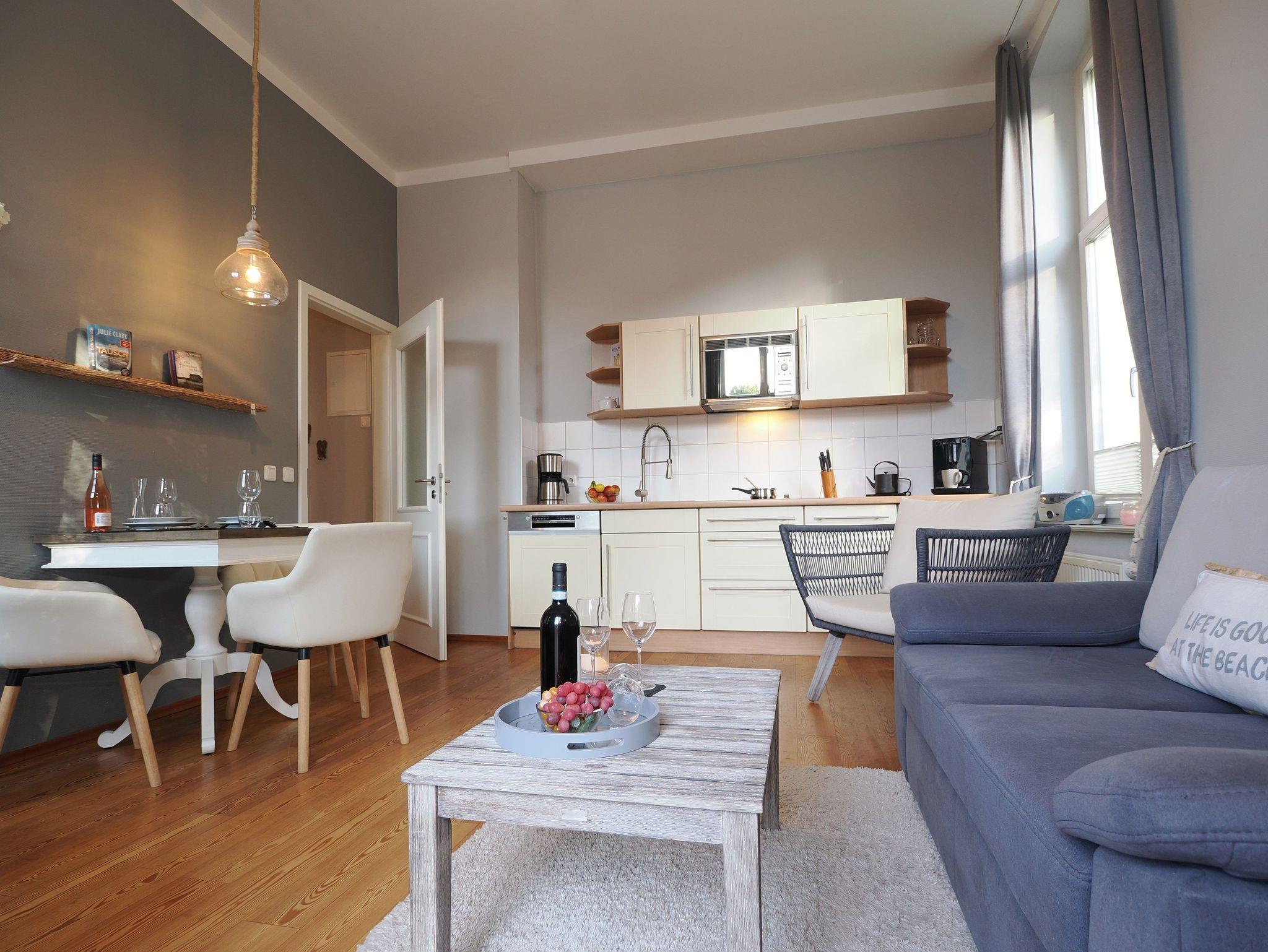 Umgeben von den eindrucksvollen Villen des Seeheilbades, liegt sie nur wenige Schritte vom Strand, der Promenade sowie vom lebhaften Ortskern mit seinen kleinen Geschäften und Restaurants entfernt.