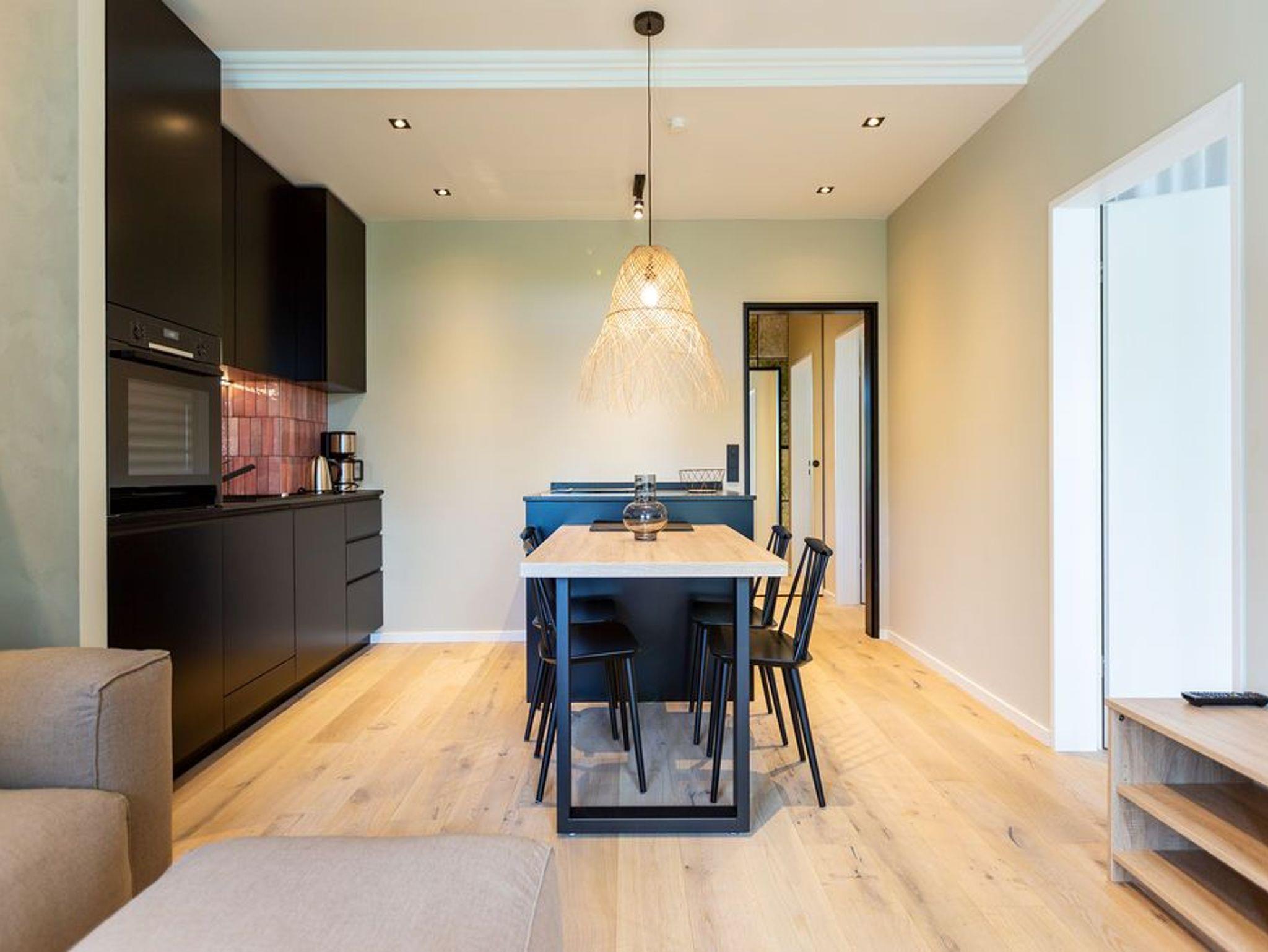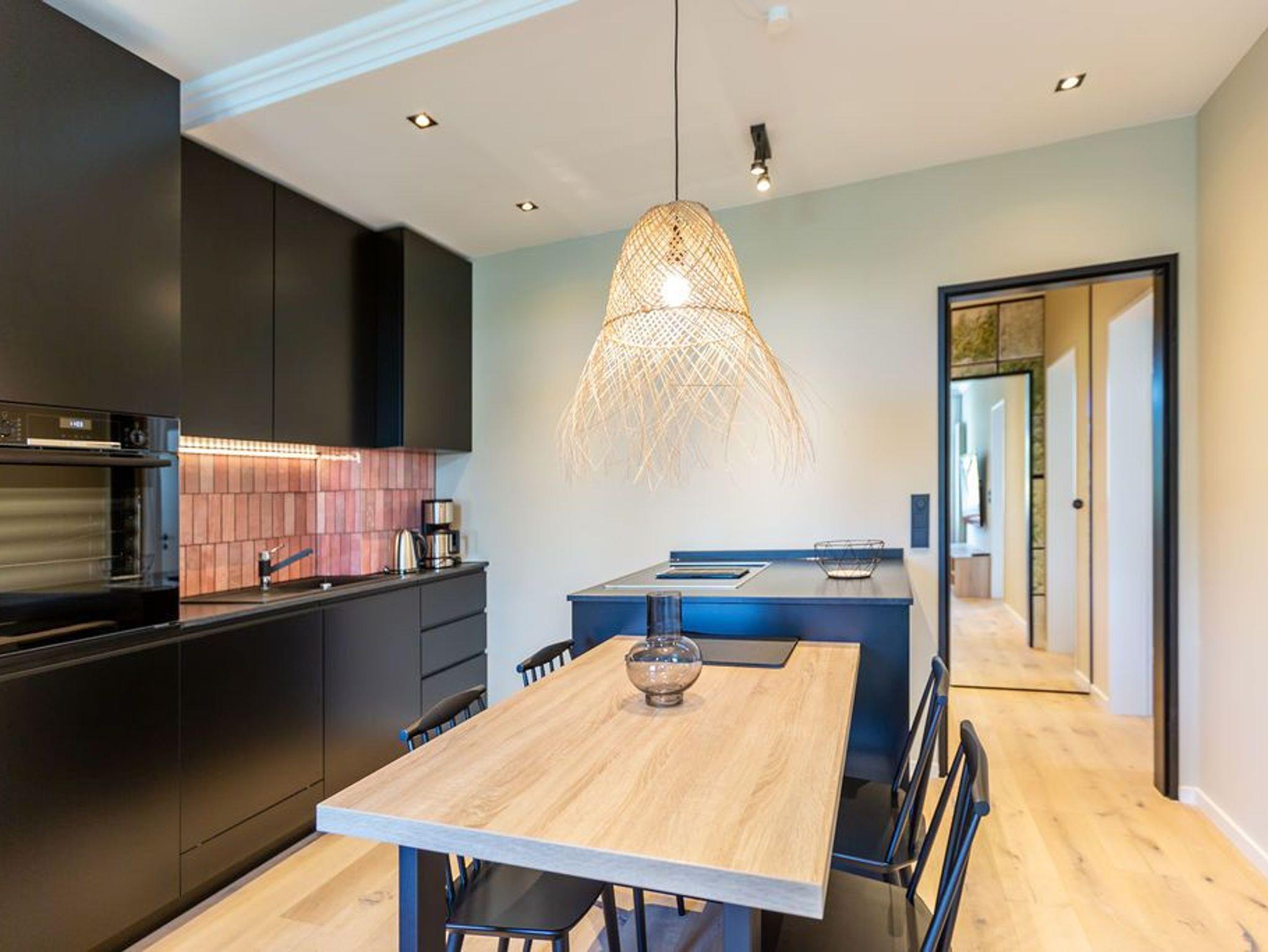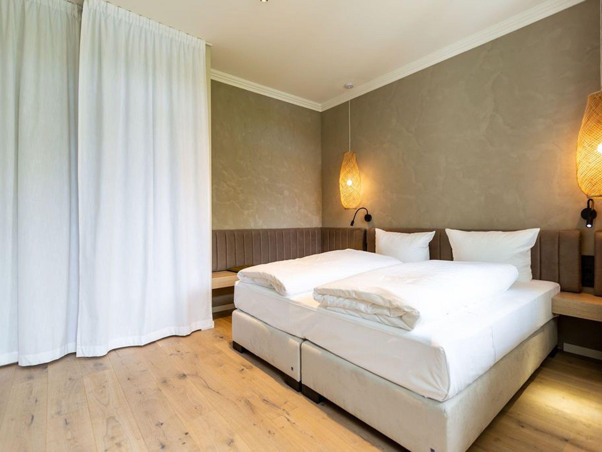 Modernes Design durchzieht das 65 Quadratmeter große Appartement im Erdgeschoss des Seehofes von der Eingangstür bis in die beiden Schlafzimmer. Hier ist alles aus einem Guss. Vom Inneneinrichter konzipiert, können es sich in den drei Räumen bis zu vier Erwachsene und ein Kleinkind (im Kinderreisebett) gut gehen lassen. Auch ihren geliebten Vierbeiner dürfen Sie hier mitbringen. Mit einer kleinen West-Terrasse zum idyllischen Schloonsee hin haben Sie hier ein außergewöhnliches Urlaubsparadies gefunden. Entspannen Sie beim Farbspektakel des Sonnenuntergangs direkt über dem See. Wunderbare Ruhe legt sich hier in den Abend. Der großzügige Wohnbereich ist hell und offen, mit einer gemütlichen Sitzgruppe, Flat-TV und einem schönen Essplatz ausgestattet. Die Möbel sind exklusiv für dieses Appartement ausgewählt. Stylisch, aber kuschelig ist die Atmosphäre der Ferienwohnung. In das Wohnzimmer integriert, ist die offene Küche. Sie ist mit hochwertigen Küchengeräten und erlesenem Geschirr voll ausgestattet. Der Backofen ist auf Augenhöhe und der Herd mit integriertem Dunstabzug ist eine eigene kleine Kochinsel. Kaffeemaschine, Wasserkocher, Toaster, Spülmaschine: Es ist alles da. Ihr Domizil verfügt über zwei sehr individuell und extravagant eingerichtete Schlafzimmer mit jeweils einem Doppelboxspringbett (2,00 m x 1,80 m). Eines der Schlafzimmer besitzt einen Flat-TV und einen Zugang zur Terrasse. Ebenso wie der Rest der Wohnung ist auch das Badezimmer dem Design angepasst. Es ist mit einer ebenerdigen Dusche, Waschtisch und WC ausgestattet. Handtücher liegen bei Anreise bereit. Und auch die Betten sind bezogen. Der Pkw-Stellplatz 101 unten (max. PKW-Höhe 1,50 m, PKW Länge max. 5,00m/ Gewicht max. 2t) ist in der Doppelparkergarage für Sie reserviert. Das WLAN ist kostenfrei nutzbar. Auch eine Sauna gibt es in der Anlage.