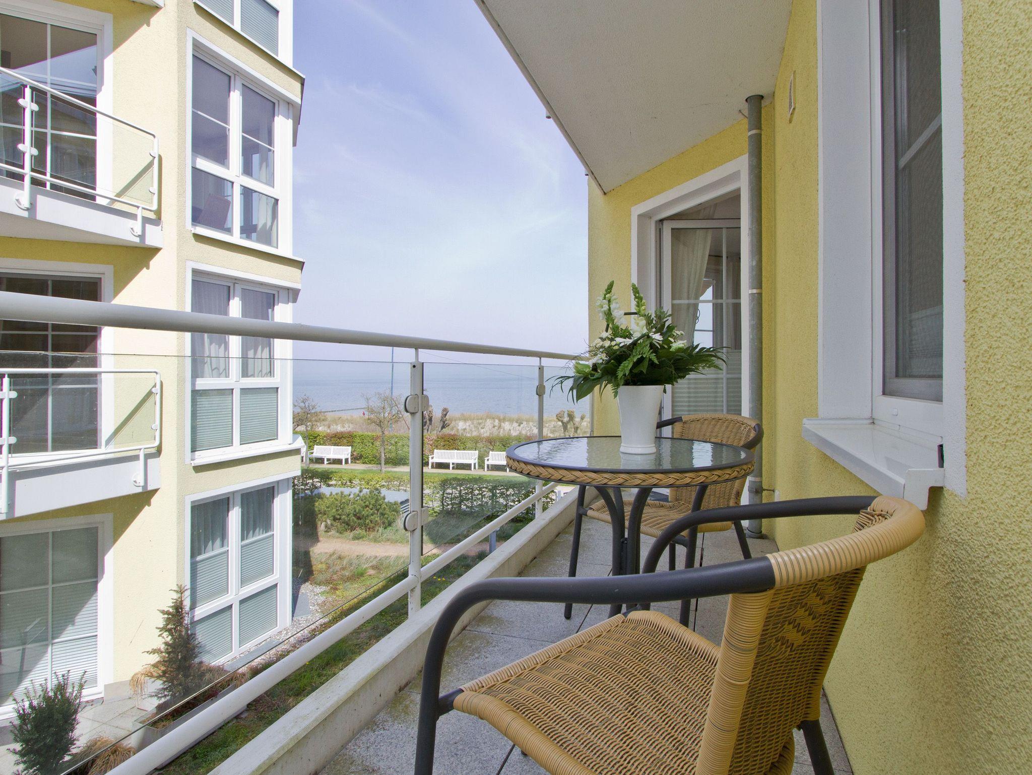 Genießen Sie den freien Meerblick aus dieser 3-Raum-Ferienwohnung. Entspannen Sie in hellen, lichtdurchfluteten Räumen mit geschmackvoller Möblierung. Zur Wohnung gehören ein großer Wohnbereich mit komplett ausgestatteter Küchenzeile und Essplatz, von dem Sie durch die großen Fensterfronten, direkten Blick auf die Ostsee genießen. Beginnen Sie Ihren Urlaubstag bei einem ausgiebigen Frühstück auf ihrem Balkon der zur Nord/West Seite gelegen und von dem Sie ebenfalls Blick auf die Ostsee haben. Zwei separate Schlafzimmer, eins mit Doppelbett und eins mit Einzelbett, bieten drei Personen Platz für eine erholsame Nacht. Für Ihren Komfort steht die Erstausstattung Wäsche (Bettwäsche [&] Handtücher) für Sie bereit. Das WLAN-Netz ist kostenfrei nutzbar.