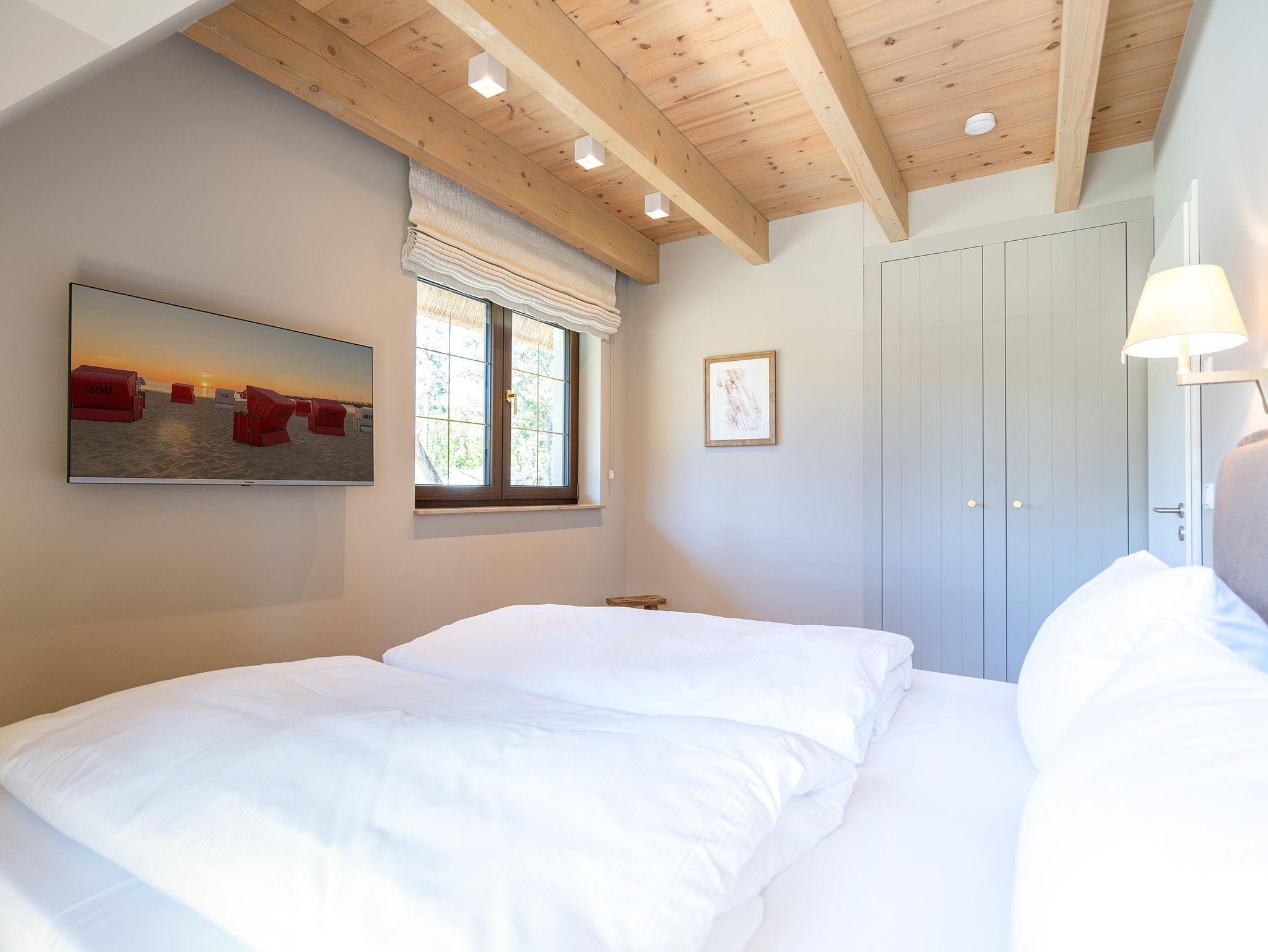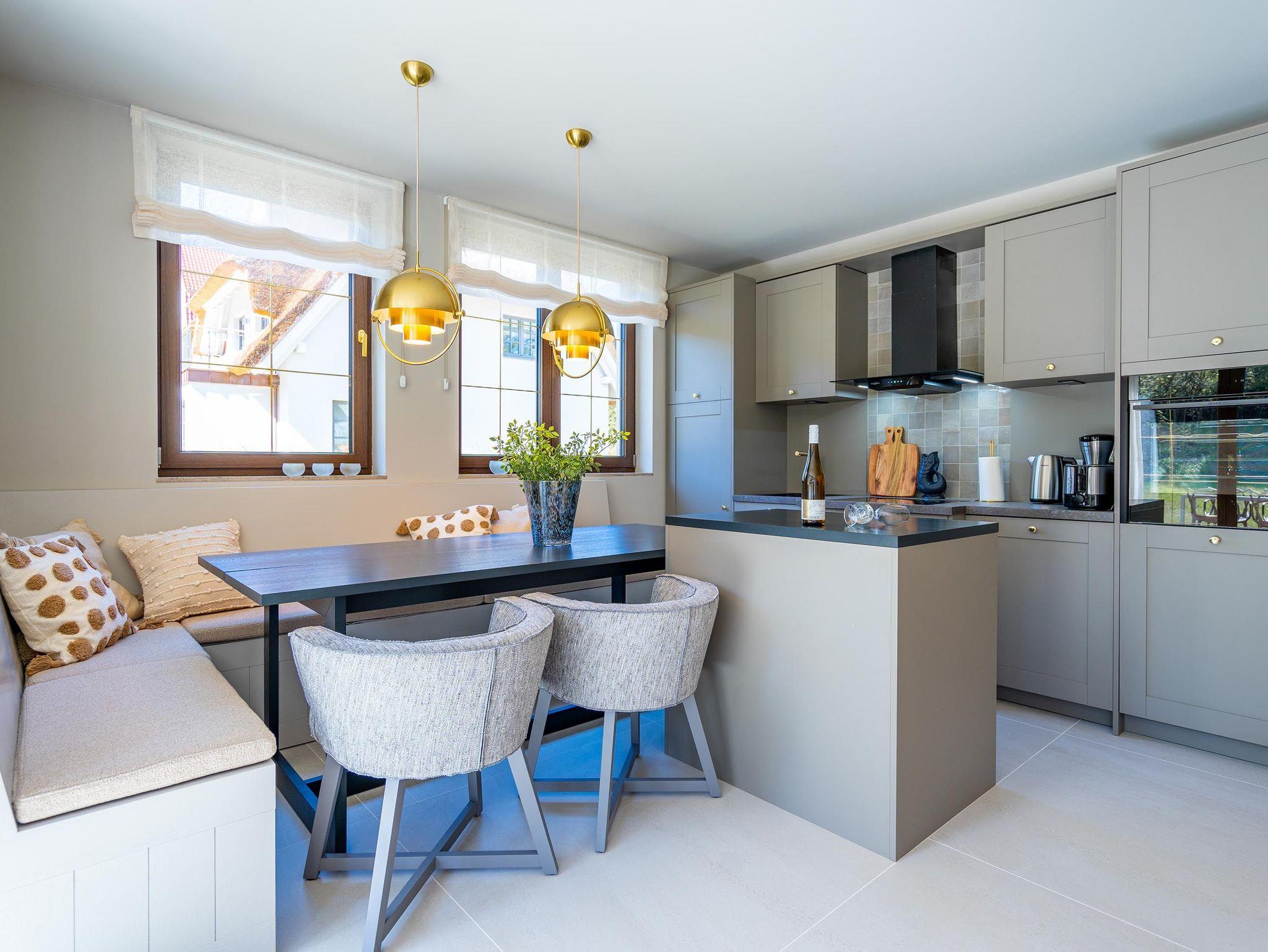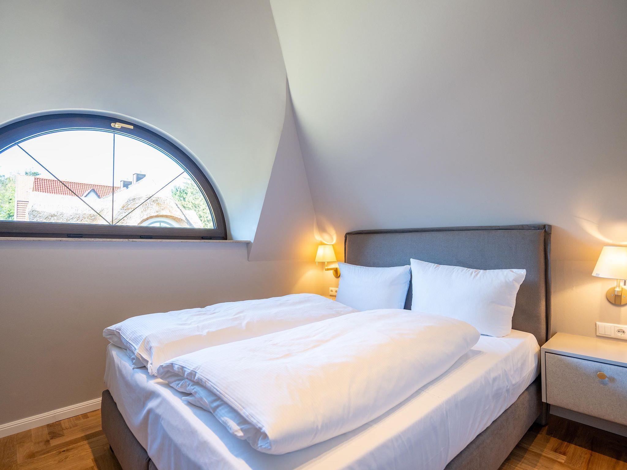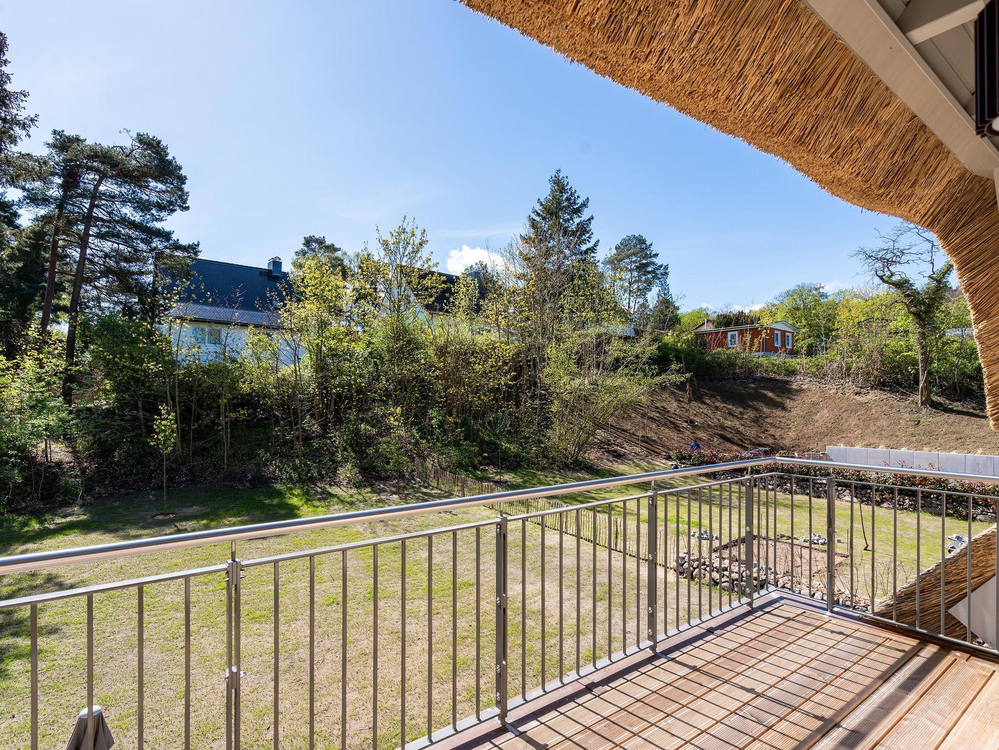Willkommen in der charmanten Reetdach-Doppelhaushälfte N° 3, eingebettet in die malerische Landschaft des Seebads Bansin. Dieses großzügige Domizil erstreckt sich über drei Etagen und bietet Platz für bis zu 8 Erwachsene. Ideal für einen entspannten Aufenthalt an der Ostseeküste. Im Erdgeschoss erwartet Sie ein offener Wohn- und Essbereich, der viel Raum für gemeinsame Zeit mit Familie und Freunden bietet. Die voll ausgestattete Küche (u.a. Backofen mit Mikrowellenfunktion, Induktionskochfeld, Kühlschrank mit Gefrierfach [&] Spülmaschine) lässt keine Wünsche offen und verfügt unter anderem über einen Essplatz für bis zu 8 Personen. Der gemütliche Wohnbereich ist mit einer komfortablen Sitzgruppe, einem Flachbild-TV, einem Kaminofen sowie einer hochwertigen Sonoro Streaming Audio Anlage inklusive CD-Player und Radio ausgestattet. Von hier aus gelangen Sie auf die sonnige Süd-West-Terrasse mit einer Fläche von ca. 12 qm, auf der Sie Garten und frische Ostseeluft genießen können. Ebenfalls im Erdgeschoss befindet sich ein modernes Badezimmer mit finnischer Sauna, Dusche, Waschtisch und WC. Ein Waschtrockner im Flurschrank sorgt für zusätzlichen Komfort während Ihres Aufenthalts. Im ersten Obergeschoss stehen Ihnen drei komfortable Schlafzimmer zur Verfügung. Alle Schlafzimmer sind mit hochwertigen Boxspringdoppelbetten (1,80 m x 2,00 m), Einbaukleiderschränken und jeweils einem Flachbild-TV ausgestattet. Zwei der Schlafzimmer bieten zudem Zugang zum Süd-West-Balkon mit schönem Blick ins Grüne. Ein weiteres Badezimmer mit Dusche, Waschtisch und WC ergänzt diese Etage. Die zweite Etage beherbergt das vierte Schlafzimmer mit einem Boxspringdoppelbett (1,60 m x 2,00 m), einer Kommode sowie einem Flachbild-TV. Zusätzlich steht Ihnen hier ein innenliegendes Gäste-WC zur Verfügung. Im Außenbereich befindet sich ein abschließbarer Abstellraum für Fahrräder. Zwei Stellplätze unter dem Carport bieten geschützte Parkmöglichkeiten für Ihre PKW. Diese hochwertige Ferienhaushälfte verbindet Komfort, Funktionalität und eine attraktive Lage und bietet Ihnen einen idealen Rückzugsort für erholsame Urlaubstage an der Ostseeküste.