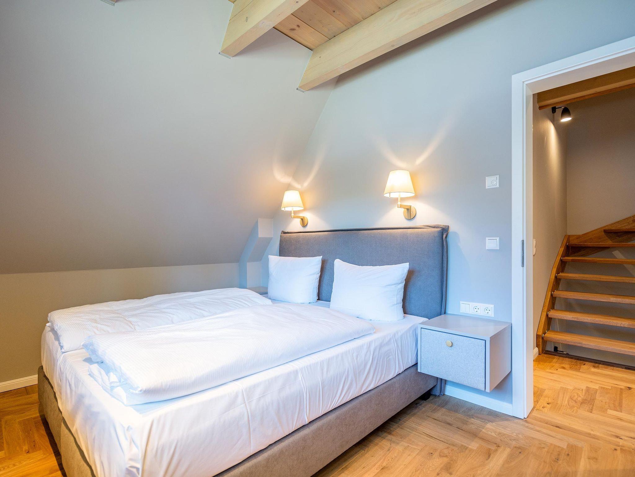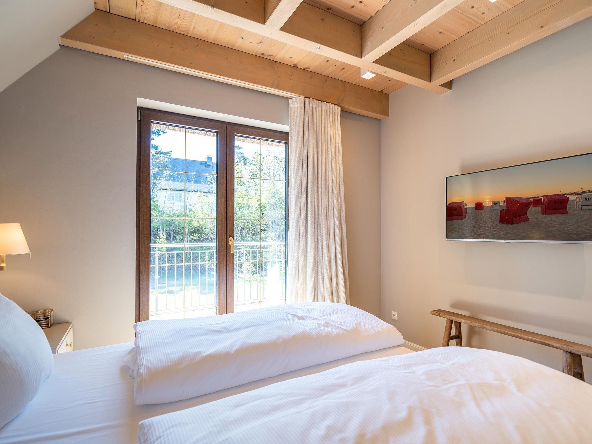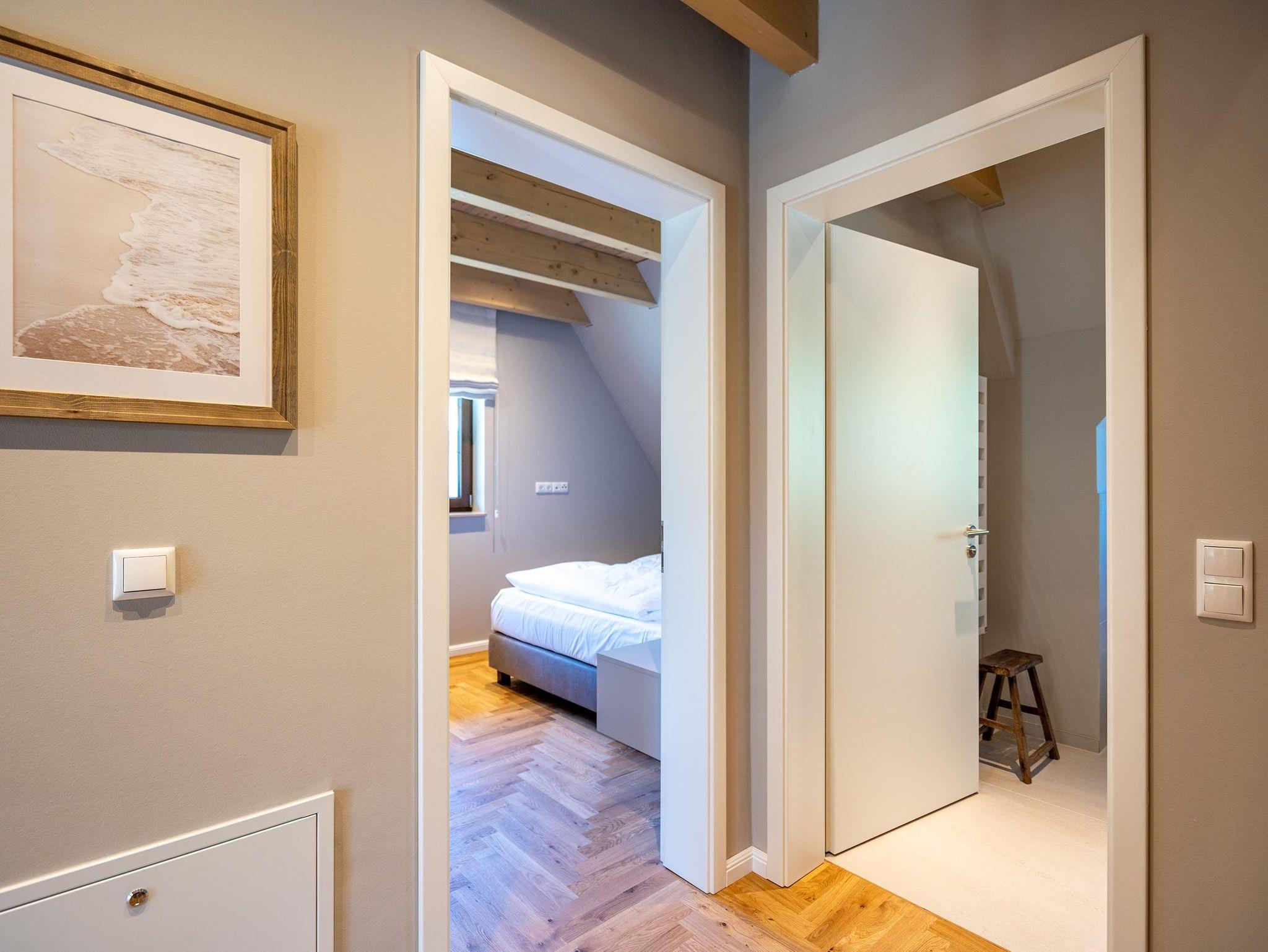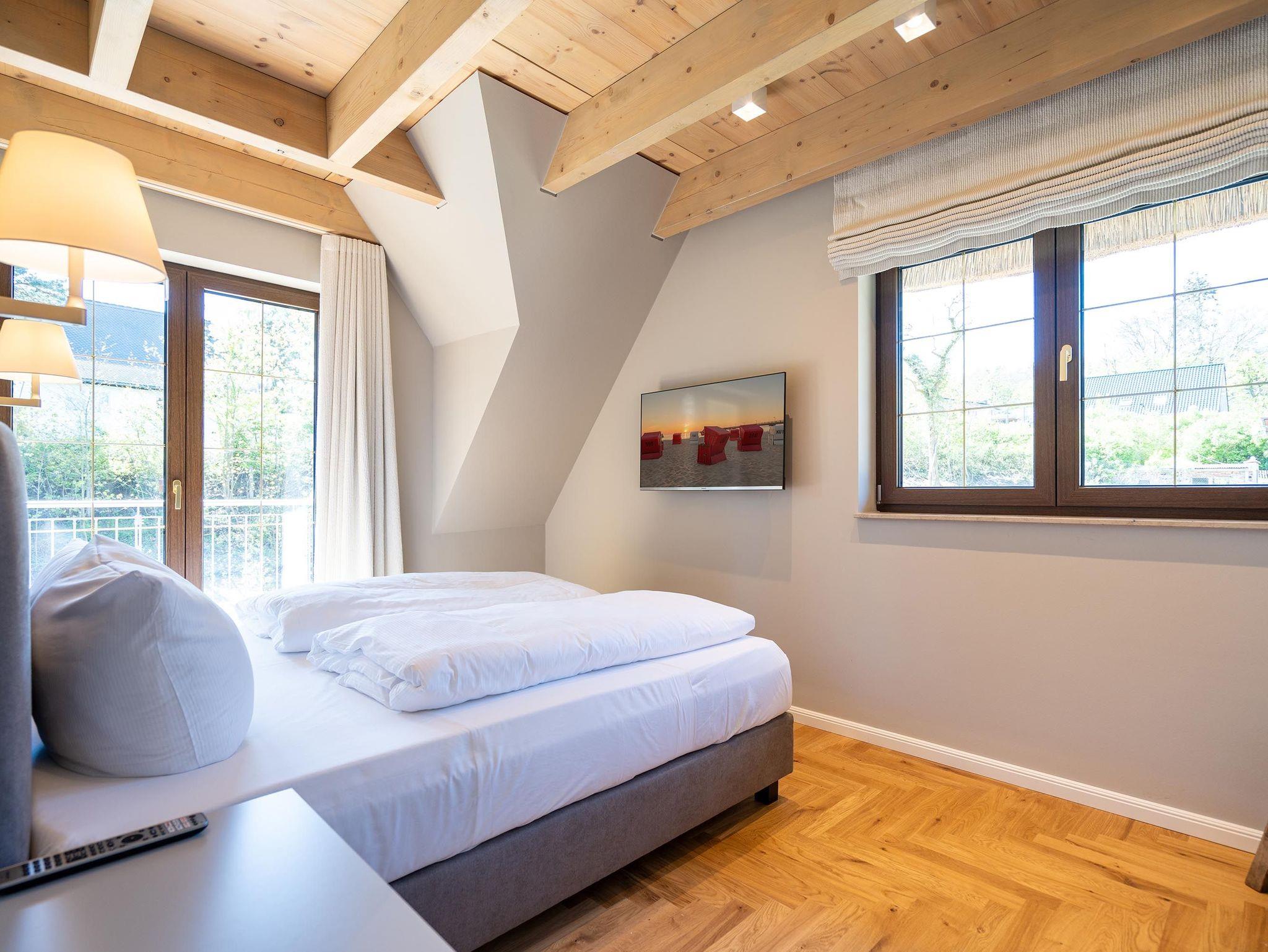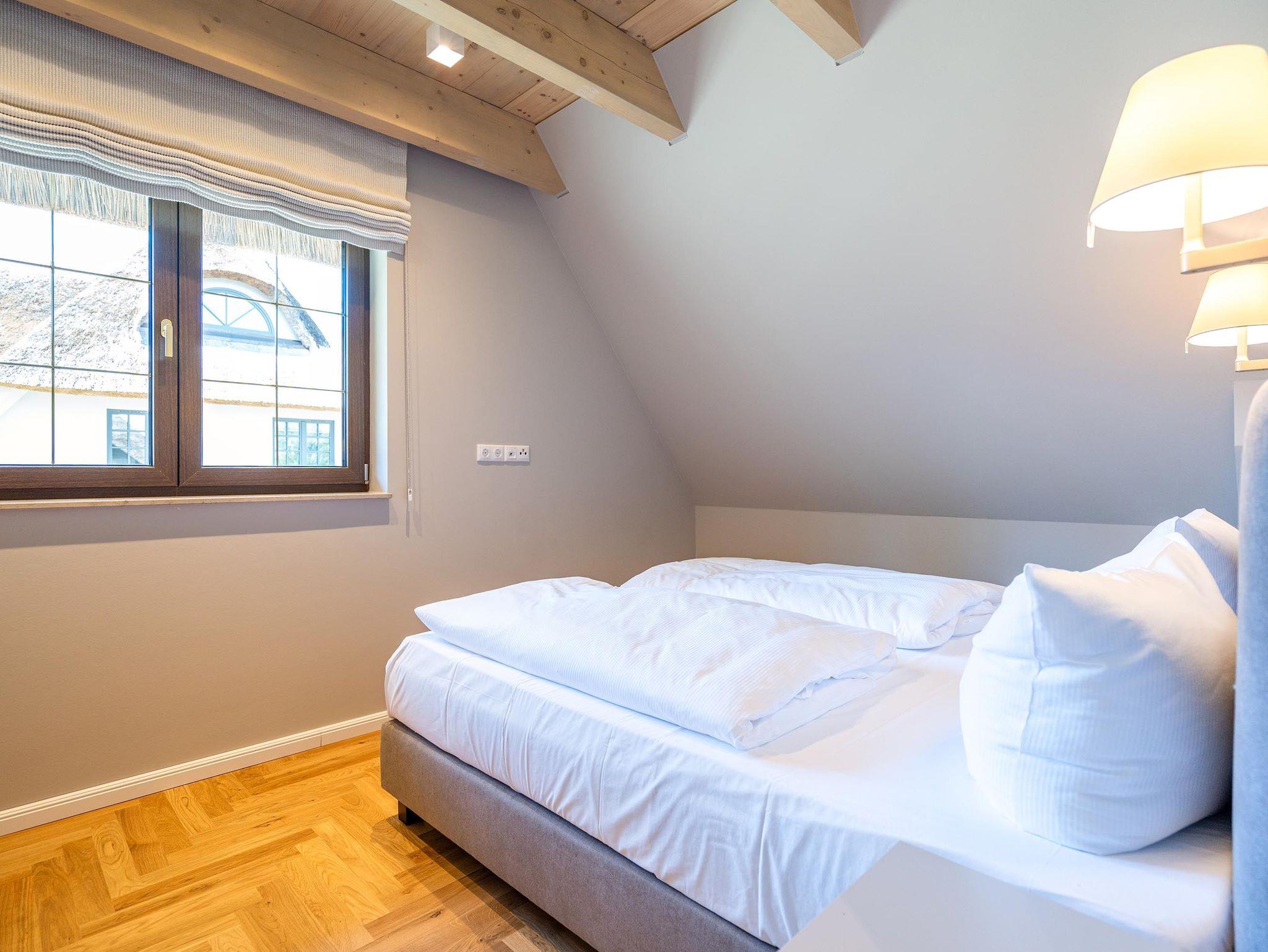 Willkommen in der charmanten Reetdach-Doppelhaushälfte N° 3, eingebettet in die malerische Landschaft des Seebads Bansin. Dieses großzügige Domizil erstreckt sich über drei Etagen und bietet Platz für bis zu 8 Erwachsene. Ideal für einen entspannten Aufenthalt an der Ostseeküste. Im Erdgeschoss erwartet Sie ein offener Wohn- und Essbereich, der viel Raum für gemeinsame Zeit mit Familie und Freunden bietet. Die voll ausgestattete Küche (u.a. Backofen mit Mikrowellenfunktion, Induktionskochfeld, Kühlschrank mit Gefrierfach [&] Spülmaschine) lässt keine Wünsche offen und verfügt unter anderem über einen Essplatz für bis zu 8 Personen. Der gemütliche Wohnbereich ist mit einer komfortablen Sitzgruppe, einem Flachbild-TV, einem Kaminofen sowie einer hochwertigen Sonoro Streaming Audio Anlage inklusive CD-Player und Radio ausgestattet. Von hier aus gelangen Sie auf die sonnige Süd-West-Terrasse mit einer Fläche von ca. 12 qm, auf der Sie Garten und frische Ostseeluft genießen können. Ebenfalls im Erdgeschoss befindet sich ein modernes Badezimmer mit finnischer Sauna, Dusche, Waschtisch und WC. Ein Waschtrockner im Flurschrank sorgt für zusätzlichen Komfort während Ihres Aufenthalts. Im ersten Obergeschoss stehen Ihnen drei komfortable Schlafzimmer zur Verfügung. Alle Schlafzimmer sind mit hochwertigen Boxspringdoppelbetten (1,80 m x 2,00 m), Einbaukleiderschränken und jeweils einem Flachbild-TV ausgestattet. Zwei der Schlafzimmer bieten zudem Zugang zum Süd-West-Balkon mit schönem Blick ins Grüne. Ein weiteres Badezimmer mit Dusche, Waschtisch und WC ergänzt diese Etage. Die zweite Etage beherbergt das vierte Schlafzimmer mit einem Boxspringdoppelbett (1,60 m x 2,00 m), einer Kommode sowie einem Flachbild-TV. Zusätzlich steht Ihnen hier ein innenliegendes Gäste-WC zur Verfügung. Im Außenbereich befindet sich ein abschließbarer Abstellraum für Fahrräder. Zwei Stellplätze unter dem Carport bieten geschützte Parkmöglichkeiten für Ihre PKW. Diese hochwertige Ferienhaushälfte verbindet Komfort, Funktionalität und eine attraktive Lage und bietet Ihnen einen idealen Rückzugsort für erholsame Urlaubstage an der Ostseeküste.