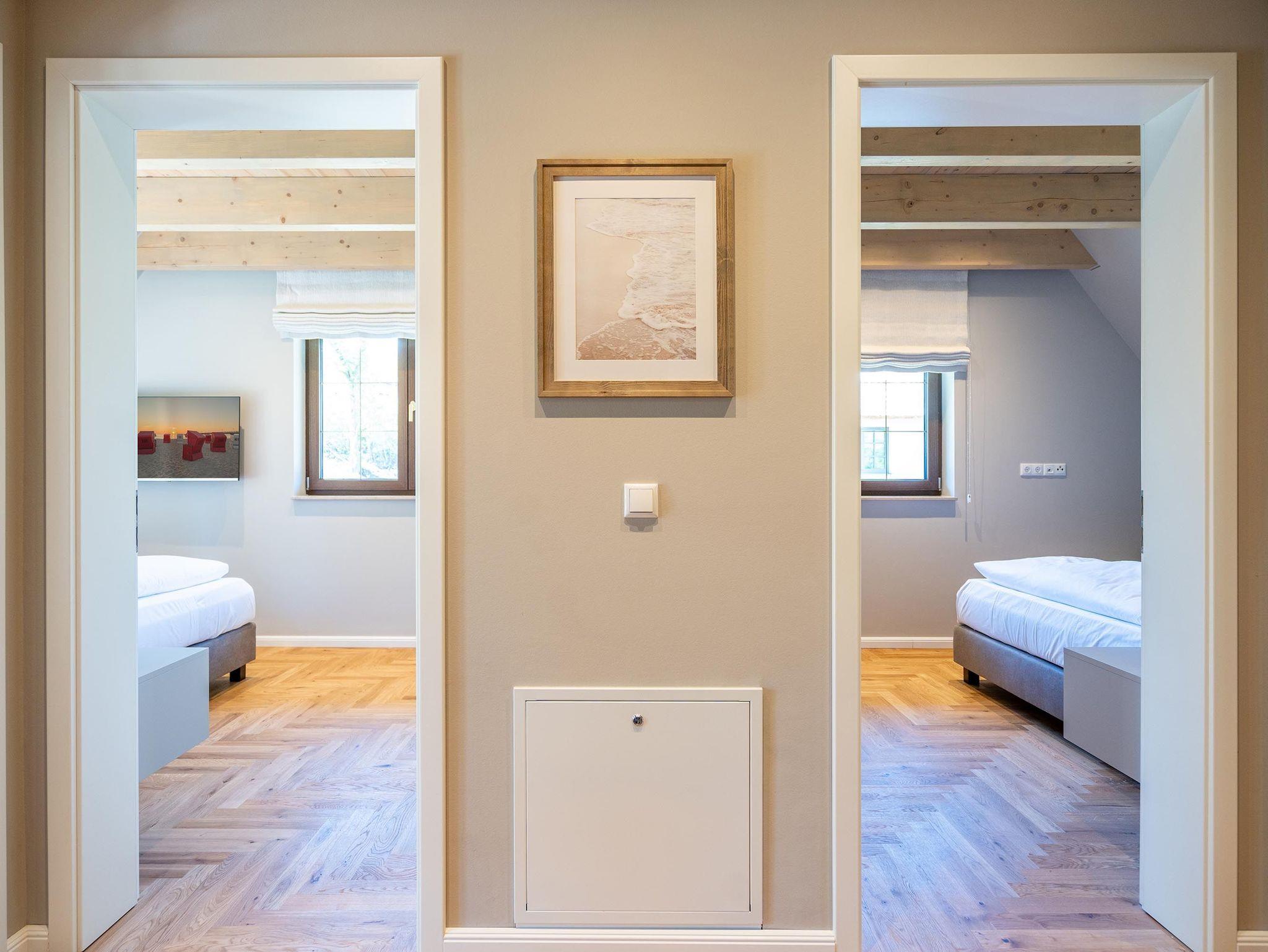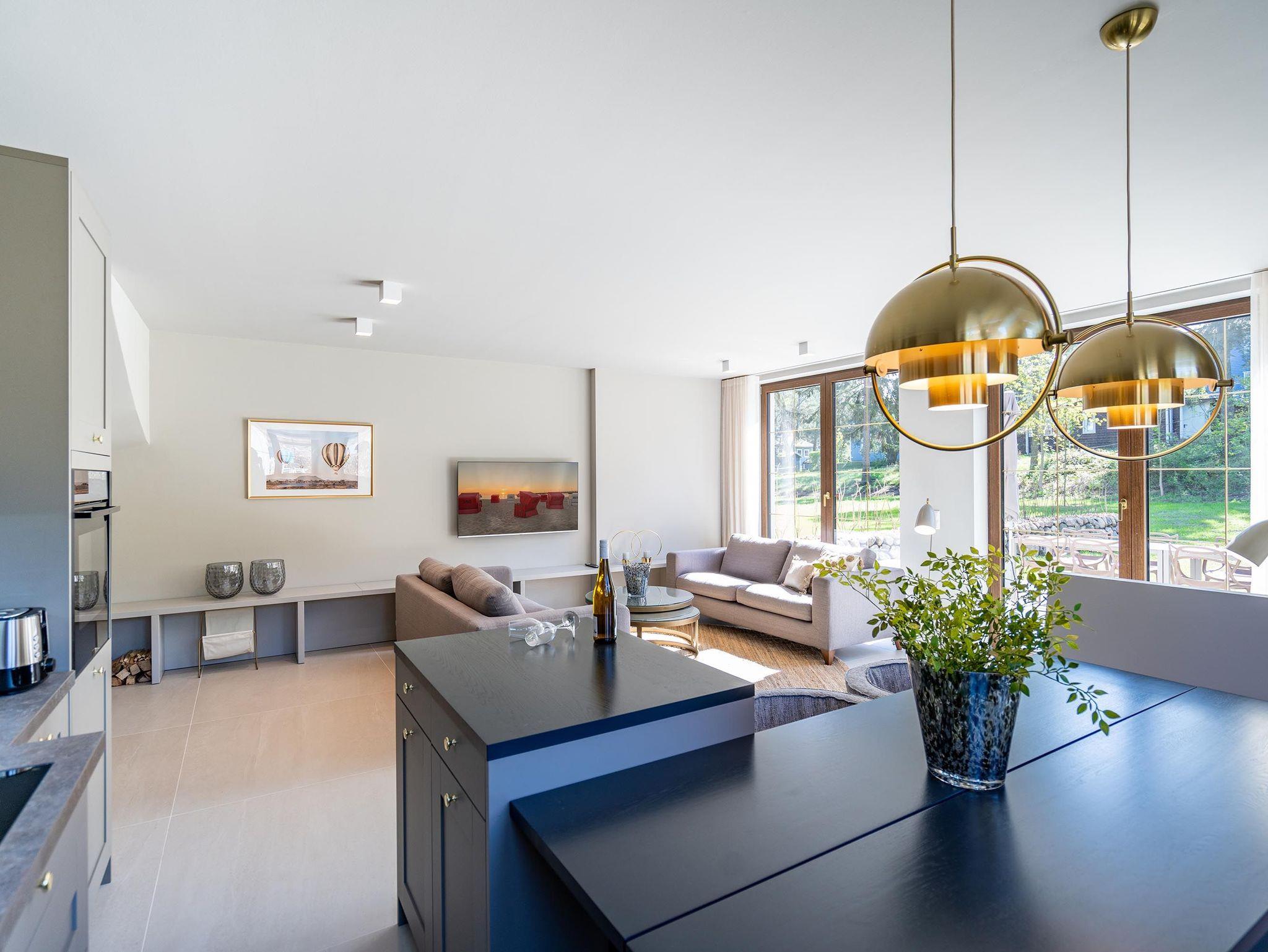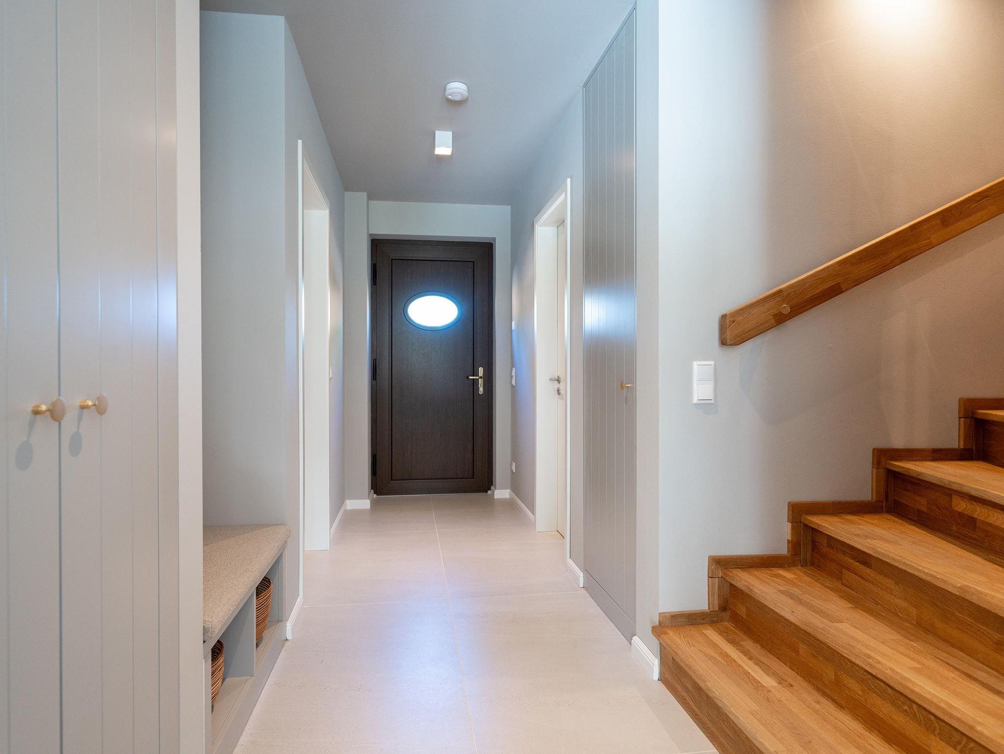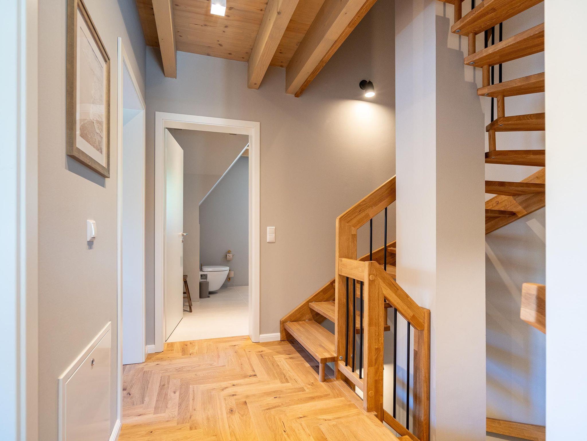 Willkommen in der charmanten Reetdach-Doppelhaushälfte N° 3, eingebettet in die malerische Landschaft des Seebads Bansin. Dieses großzügige Domizil erstreckt sich über drei Etagen und bietet Platz für bis zu 8 Erwachsene. Ideal für einen entspannten Aufenthalt an der Ostseeküste. Im Erdgeschoss erwartet Sie ein offener Wohn- und Essbereich, der viel Raum für gemeinsame Zeit mit Familie und Freunden bietet. Die voll ausgestattete Küche (u.a. Backofen mit Mikrowellenfunktion, Induktionskochfeld, Kühlschrank mit Gefrierfach [&] Spülmaschine) lässt keine Wünsche offen und verfügt unter anderem über einen Essplatz für bis zu 8 Personen. Der gemütliche Wohnbereich ist mit einer komfortablen Sitzgruppe, einem Flachbild-TV, einem Kaminofen sowie einer hochwertigen Sonoro Streaming Audio Anlage inklusive CD-Player und Radio ausgestattet. Von hier aus gelangen Sie auf die sonnige Süd-West-Terrasse mit einer Fläche von ca. 12 qm, auf der Sie Garten und frische Ostseeluft genießen können. Ebenfalls im Erdgeschoss befindet sich ein modernes Badezimmer mit finnischer Sauna, Dusche, Waschtisch und WC. Ein Waschtrockner im Flurschrank sorgt für zusätzlichen Komfort während Ihres Aufenthalts. Im ersten Obergeschoss stehen Ihnen drei komfortable Schlafzimmer zur Verfügung. Alle Schlafzimmer sind mit hochwertigen Boxspringdoppelbetten (1,80 m x 2,00 m), Einbaukleiderschränken und jeweils einem Flachbild-TV ausgestattet. Zwei der Schlafzimmer bieten zudem Zugang zum Süd-West-Balkon mit schönem Blick ins Grüne. Ein weiteres Badezimmer mit Dusche, Waschtisch und WC ergänzt diese Etage. Die zweite Etage beherbergt das vierte Schlafzimmer mit einem Boxspringdoppelbett (1,60 m x 2,00 m), einer Kommode sowie einem Flachbild-TV. Zusätzlich steht Ihnen hier ein innenliegendes Gäste-WC zur Verfügung. Im Außenbereich befindet sich ein abschließbarer Abstellraum für Fahrräder. Zwei Stellplätze unter dem Carport bieten geschützte Parkmöglichkeiten für Ihre PKW. Diese hochwertige Ferienhaushälfte verbindet Komfort, Funktionalität und eine attraktive Lage und bietet Ihnen einen idealen Rückzugsort für erholsame Urlaubstage an der Ostseeküste.