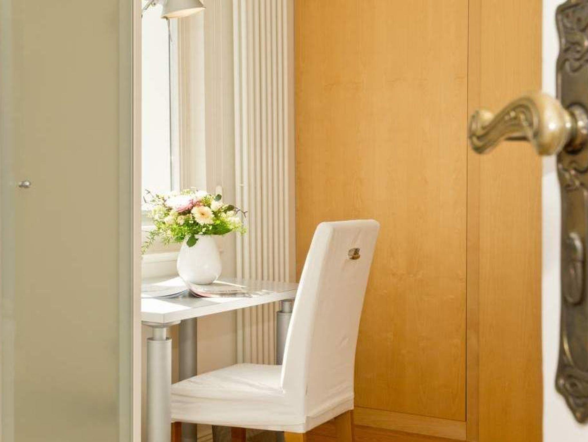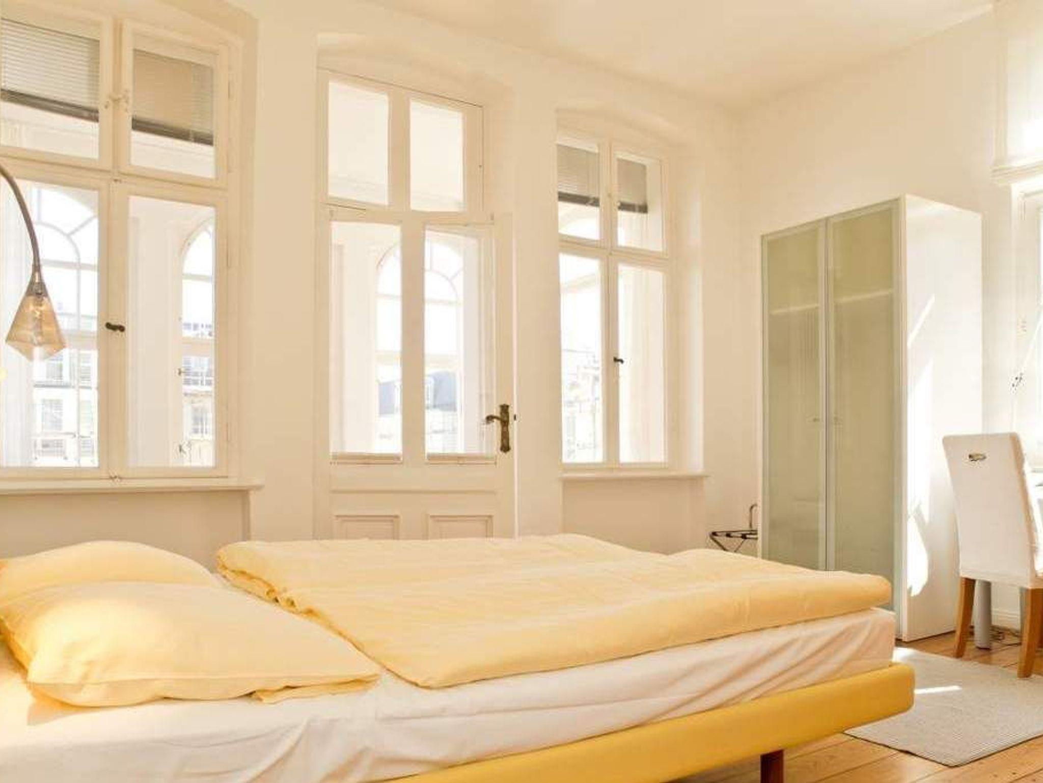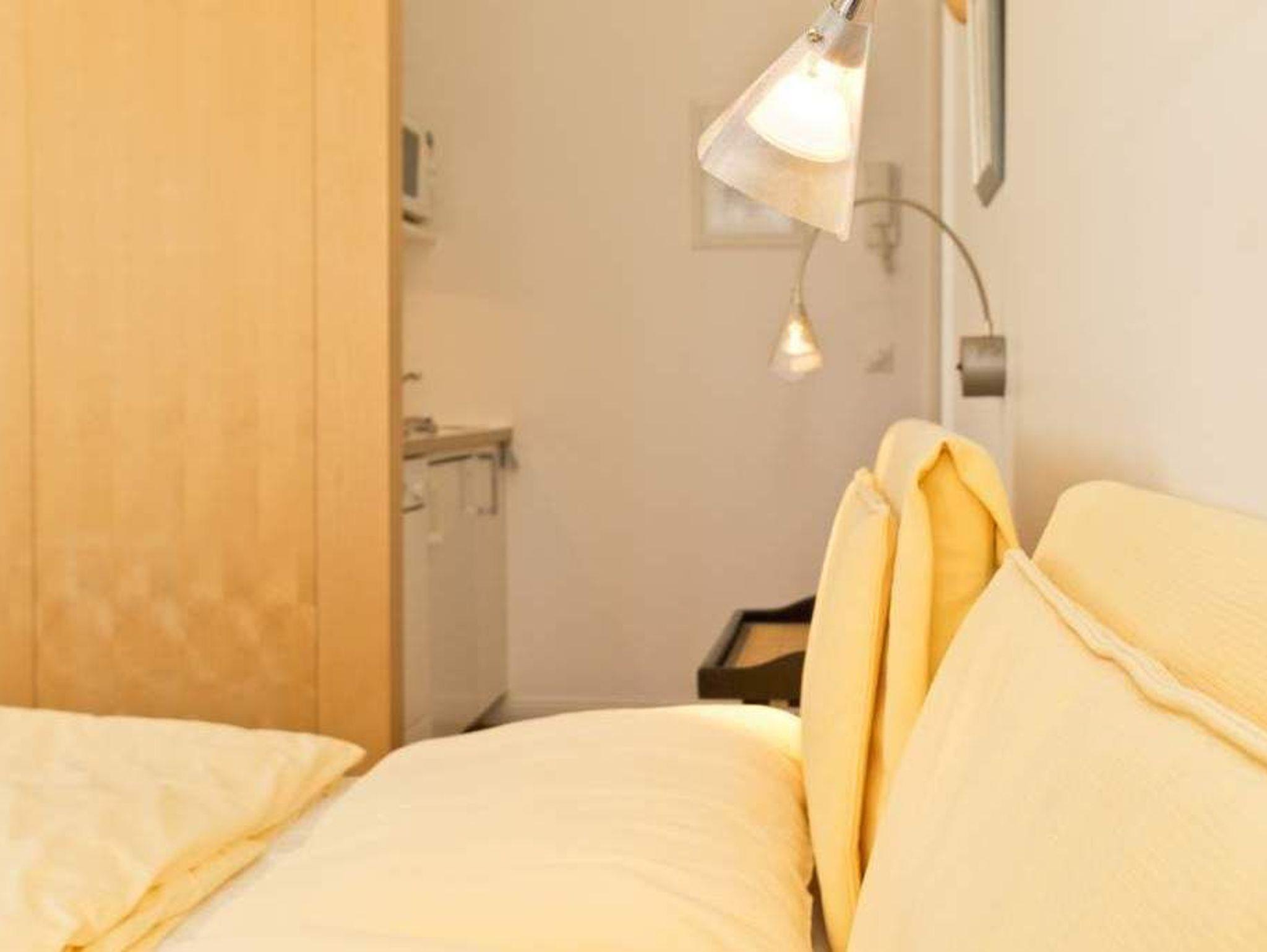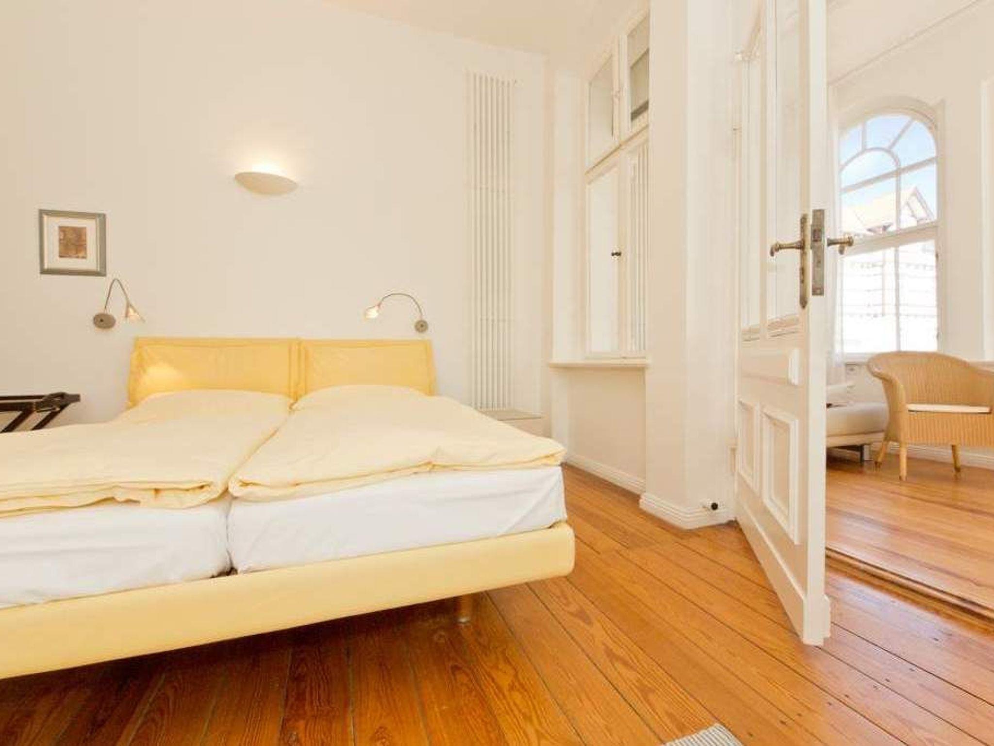 Durch fünf Fenster erhellt das klare Licht des Nordens diese Räume. Die Ostsee ist von fast jedem Platz in der Wohnung zu sehen, am schönsten jedoch ohne Frage von der Veranda aus, denn hier kann man es sich so richtig gemütlich machen. Vom Teetisch oder auch vom Sofa lässt es sich hier herrlich versonnen auf das Meer blicken. Im Schlaf- und Wohnzimmer gibt es einen Schreibtisch mit Arbeitslampe und ein geräumiges Doppelbett. Die kleine Küchenzeile komplettiert das Appartement. Die Wohnungen Köln, Düsseldorf [&] Lüneburg verfügen zusätzlich über einen Safe. Ein DVD-Player kann Ihnen auf Anfrage zur Verfügung gestellt werden.