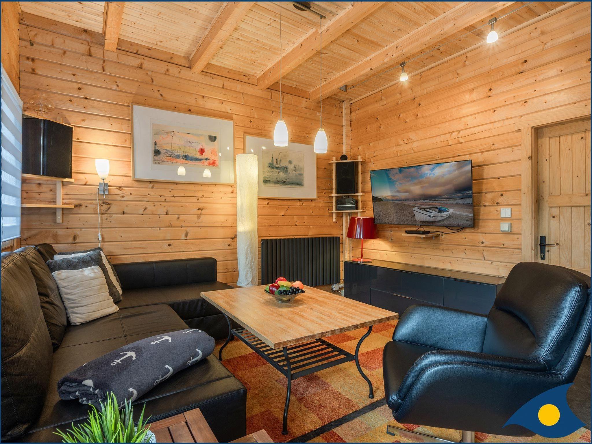 Das helle und modern ausgestattete Holzferienhaus erwartet Sie mit einer gemütlichen Sofalandschaft im Wohnbereich zum Entspannen und für gemeinsame Spiele oder Fernsehabende. Von hier gelangt man auch direkt auf die Terrasse mit großzügigem Platz zum Entspannen. Die gut ausgestattete Küchenzeile mit Cerankochfeld, Spülmaschine, Kühlschrank mit Tiefkühlfach, Mikrowelle mit Grill- und Backofenfunktion lädt zum gemeinsamen Kochen ein. Im Erdgeschoss befindet sich auch das Badezimmer mit Dusche / WC und ein kleiner HWR sowie ein Essplatz in der Diele.