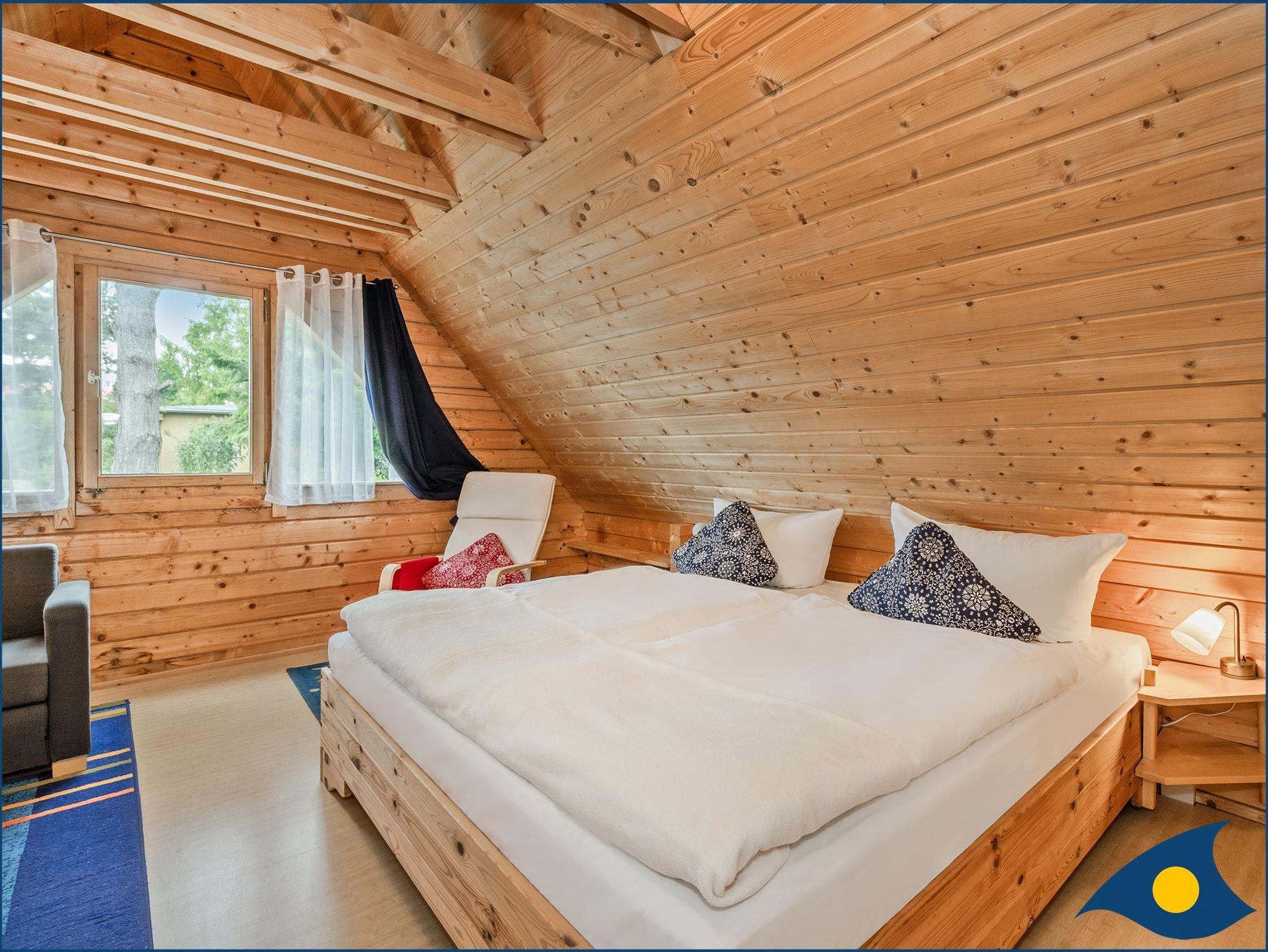 Beide Schlafzimmer liegen im Obergeschoss, eins mit einem bequemen Doppelbett und eins mit zwei Einzelbetten und einer Liege. Das große Schlafzimmer verfügt zusätzlich über eine Sitzecke, die eine Rückzugsmöglichkeit, aber auch einen weiteren Fernsehplatz bietet.