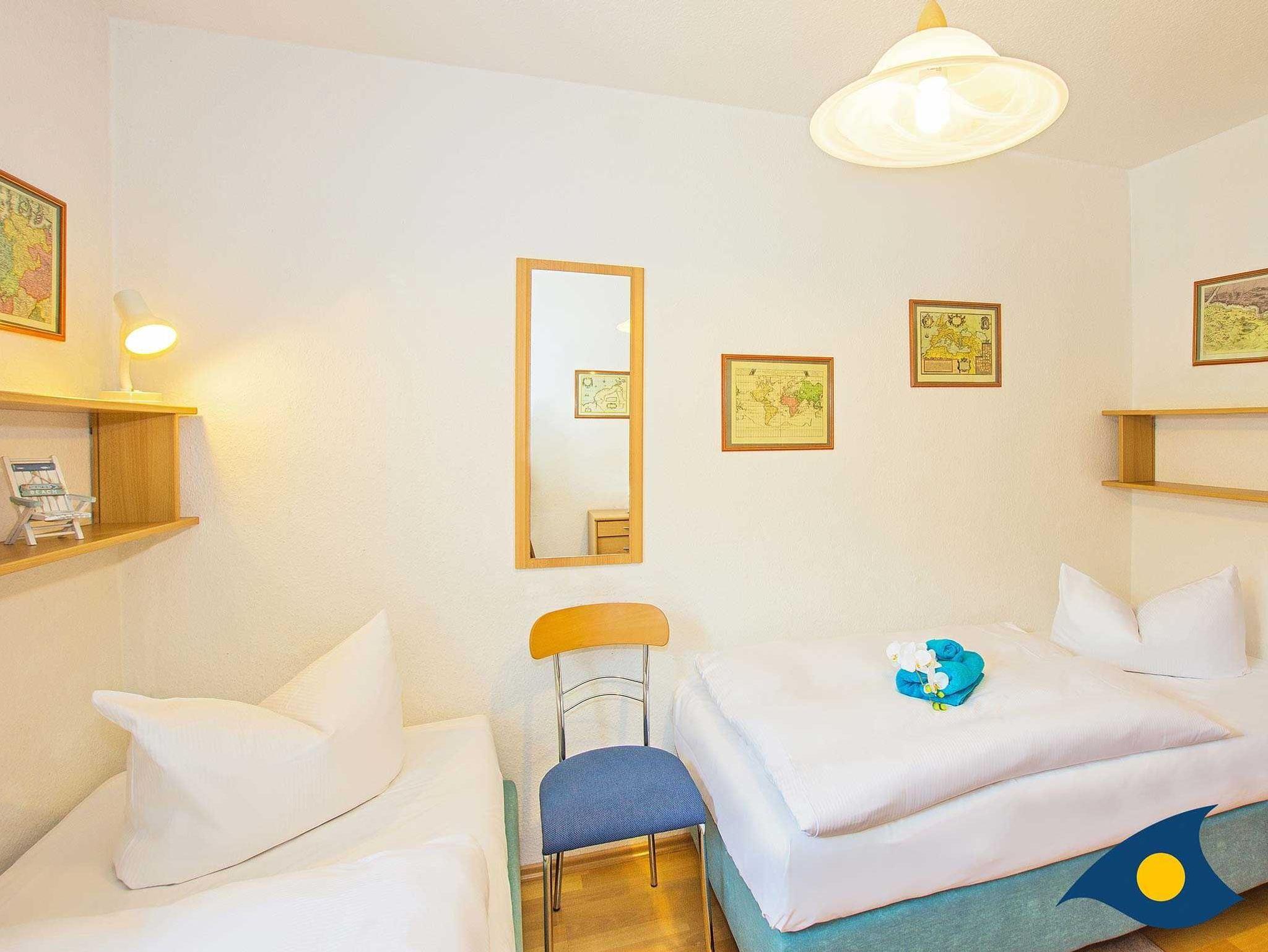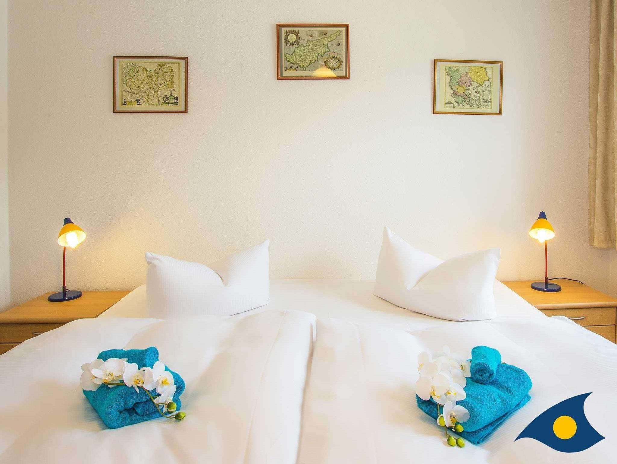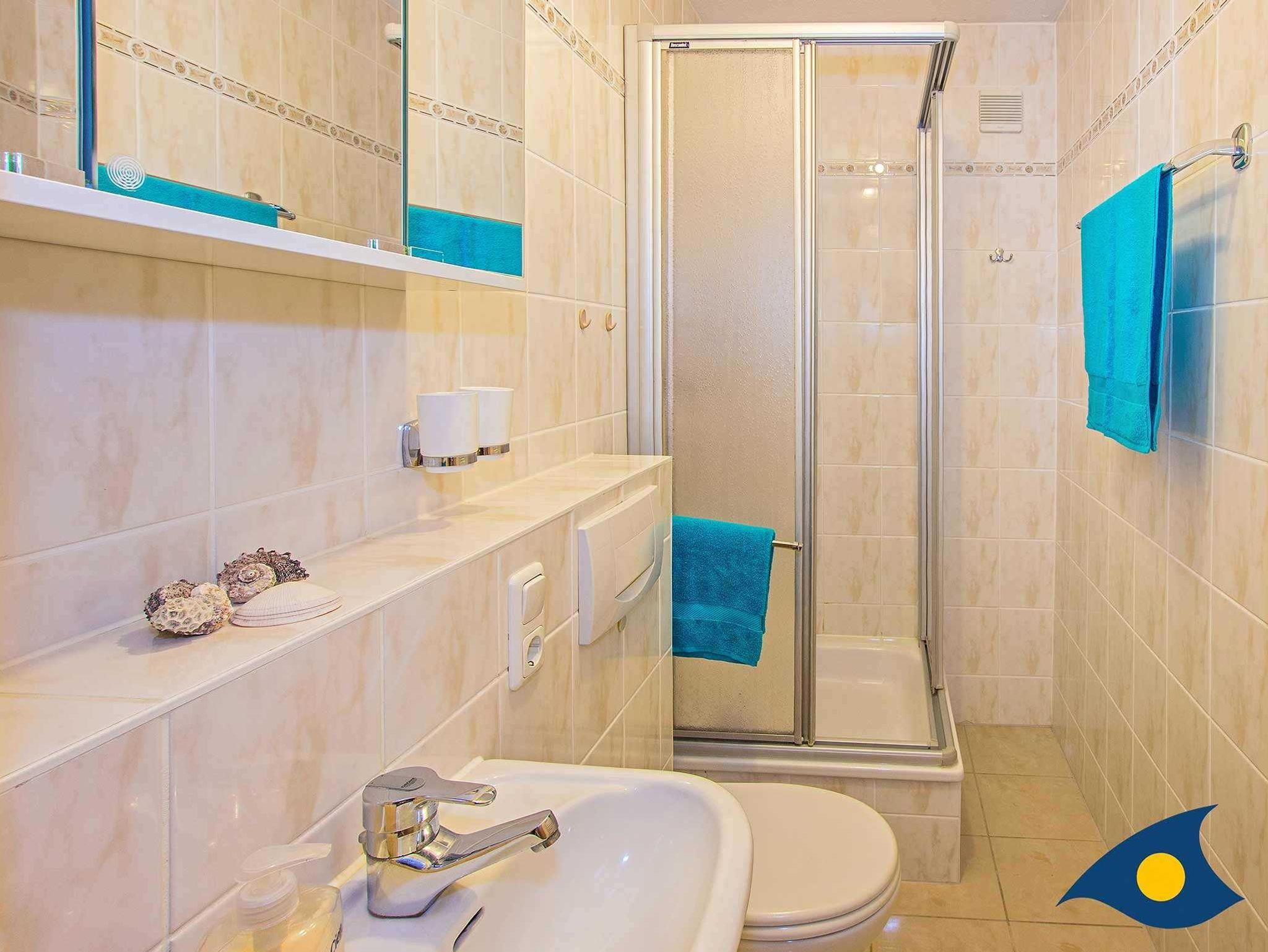 Das geräumige, modern, hochwertig und liebevoll eingerichtete Appartement verfügt über einen Balkon mit Meerblick. Zwei Schlafzimmer (eins davon mit getrennten Betten) und zwei Badezimmer, jeweils mit Dusche und WC bieten beste Voraussetzungen für den Urlaub mit der Familie. Zur Ausstattung gehört ein zweites Fernsehgerät. In der komfortabel ausgestatteten Küche finden Sie unter anderem einen großen Kühlschrank und einen Herd mit Backofen. Genießen Sie die reizvolle Rundumsicht auf dem Balkon und die ruhige Lage dieser Wohnung.