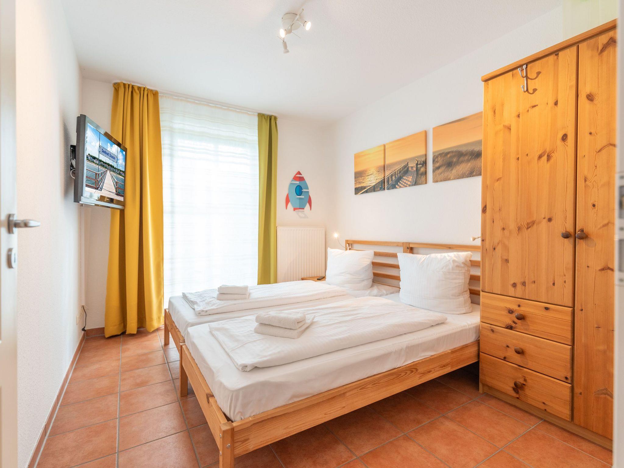 Für erholsame Nächte bietet das Schlafzimmer ein komfortables Doppelbett. Das Kinderzimmer ist mit zwei Einzelbetten und einem eigenen TV ausgestattet der perfekte Rückzugsort für die Kleinen. Das Tageslichtbad lädt mit einer Dusche und Badewanne zum Entspannen ein.