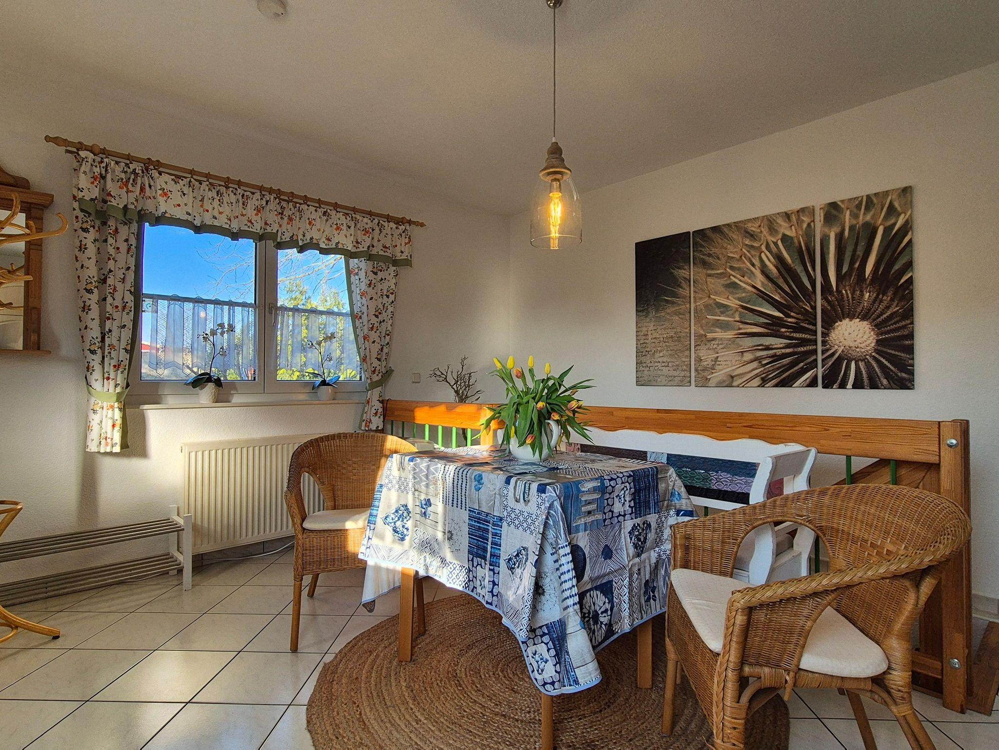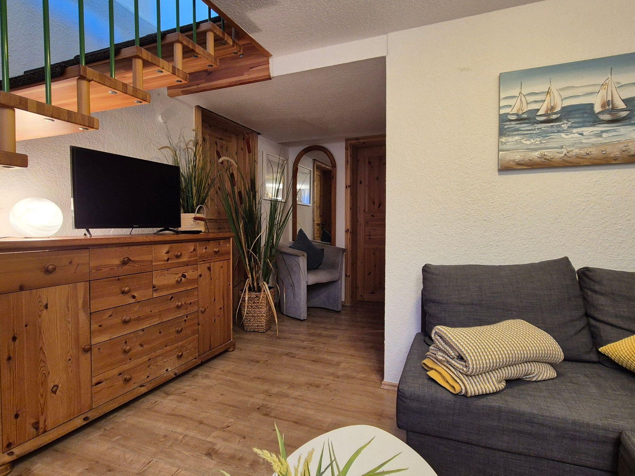 Die 2-Zimmer Ferienwohnung befindet sich im Erdgeschoß und im Souterrain und verfügt über eine helle Küche, ein Wohnzimmer, ein Schlafzimmer, ein Bad, einen Flur und einer Terrasse.