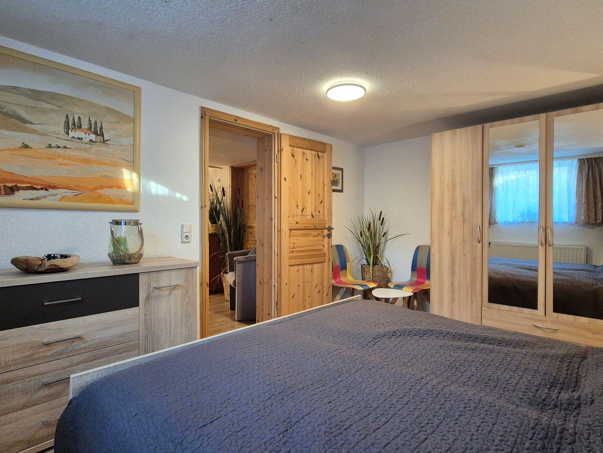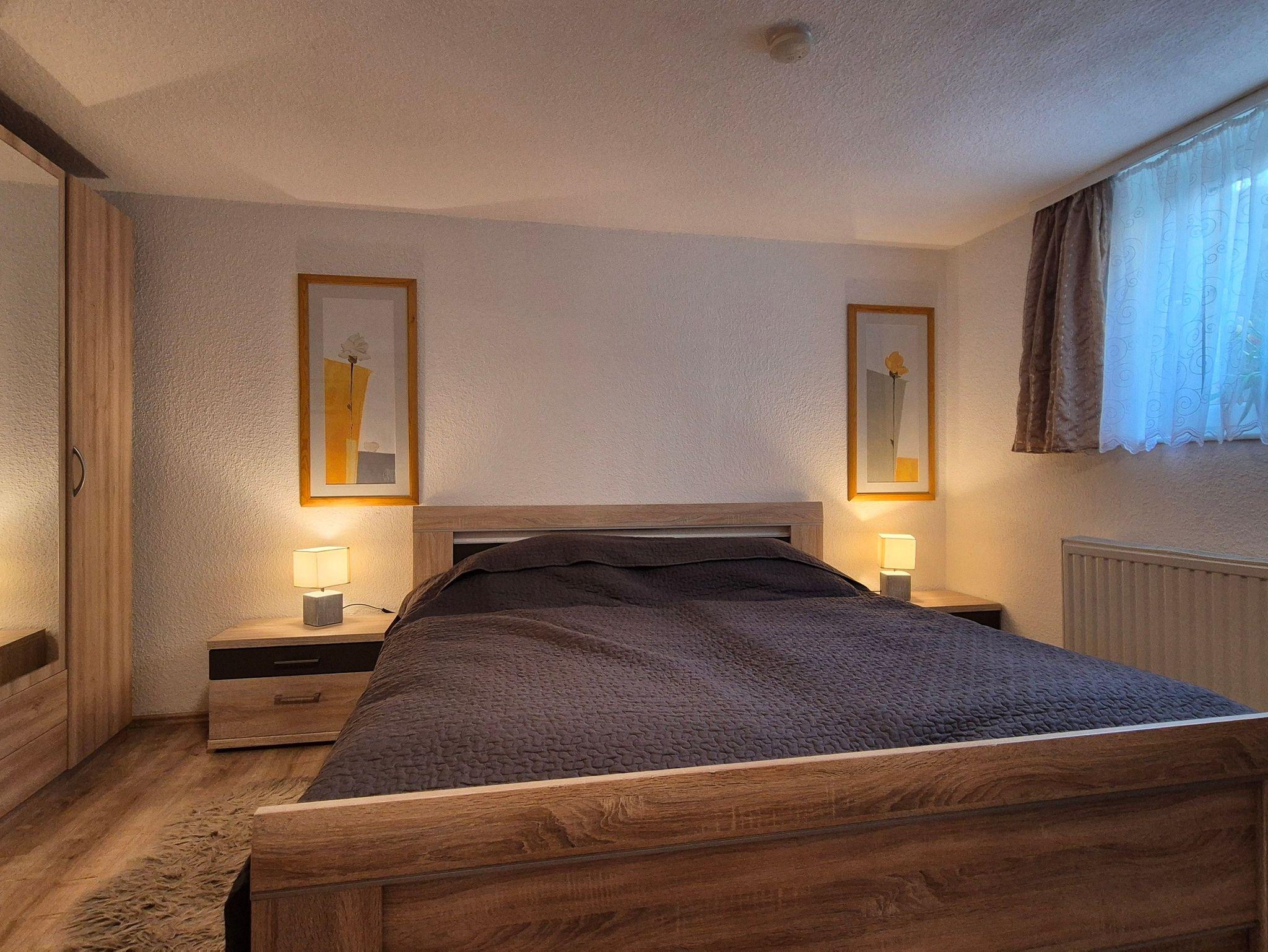 • Das Schlafzimmer ist mit einem Doppelbett (1,80 x 2,00), zwei Nachtschränken, einen Kleiderschrank sowie einer Kommode ausgestattet.